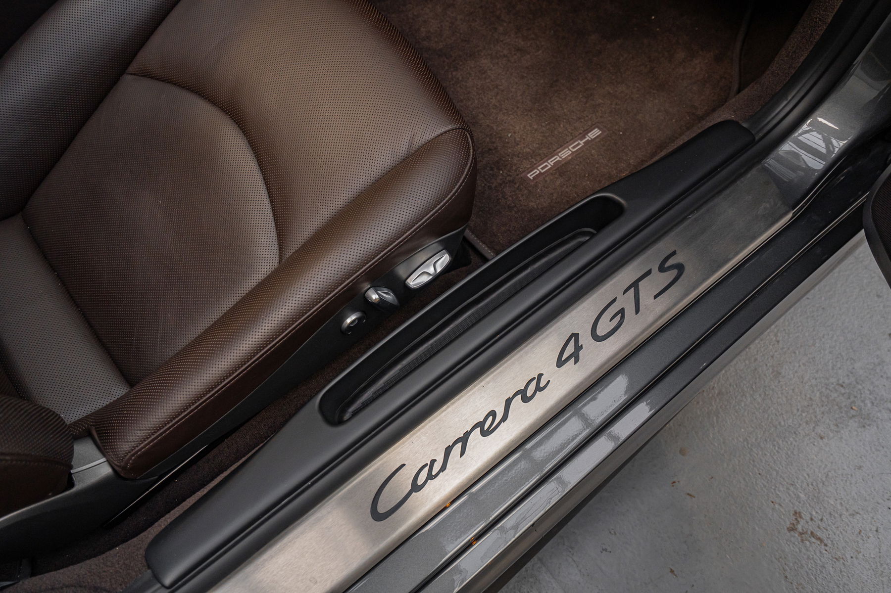 The Porsche 997 Carrera 4 GTS we are offering is a German-delivered example, originally supplied on May 16th, 2012 by Porsche Centre Stuttgart. It features a rare and elegant specification: Meteor Grey with a full Cocoa leather interior. The car retains its original paintwork throughout, with the exception of the front hood, which was repainted due to stone chips. This example is equipped with numerous sought-after options, including the full Porsche Exclusive leather package, notably leather door handles, leather PDK surround, and a leather central console. It also comes with extended leather, a sunroof, Sport Chrono Package, sports exhaust system, PDLS, heated and ventilated seats, BOSE sound system, and the Alcantara-molded headliner. This 997 shows 91,500 km and has had only three owners, including one in France who imported the car in July 2019. Its condition is exceptional for its age. Its maintenance history is exemplary, with all services performed exclusively at Porsche Centres during its time in Germany, then by reputable specialists in France. A service will also be completed before the sale. The car comes with its complete service book, a set of invoices, and both keys.