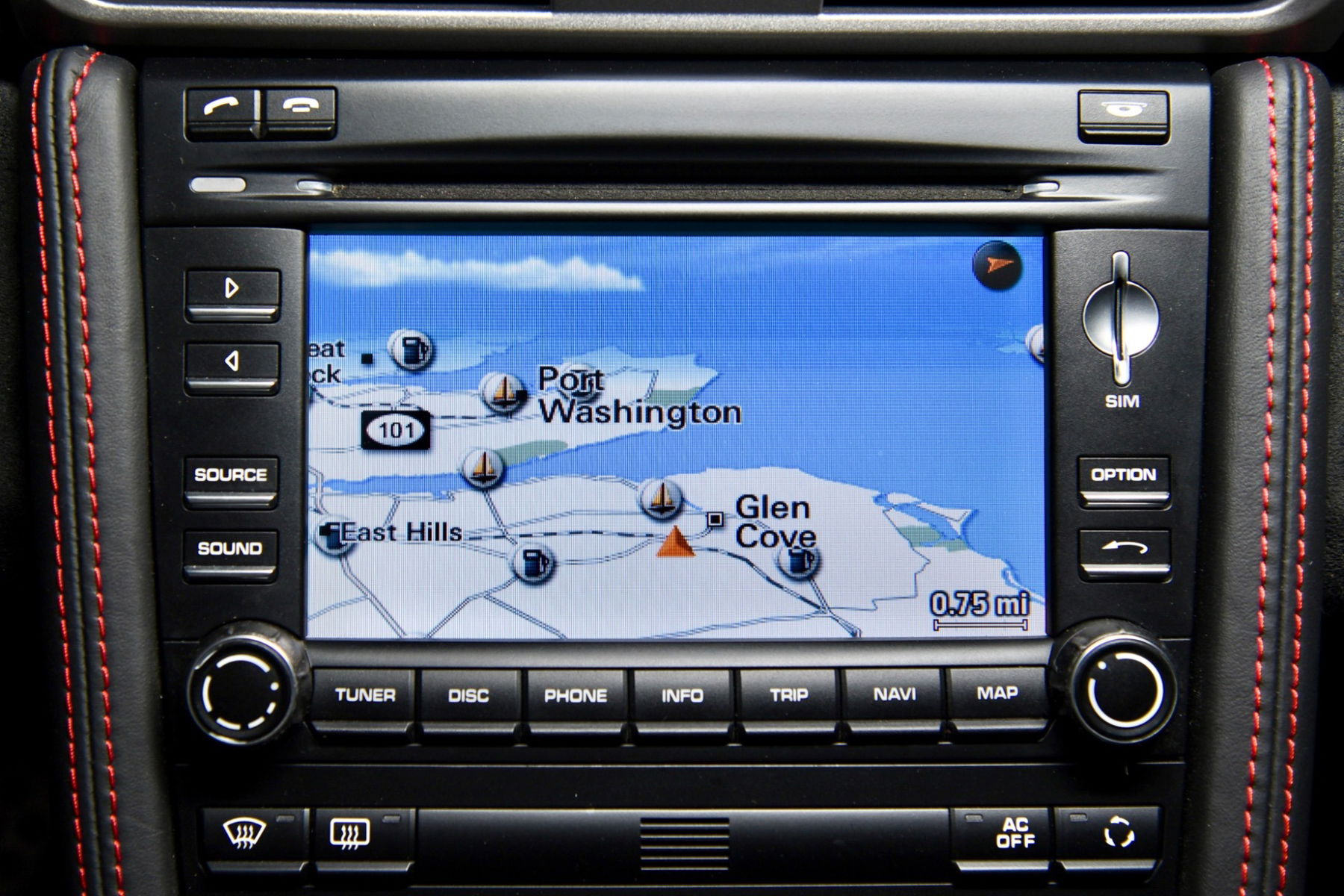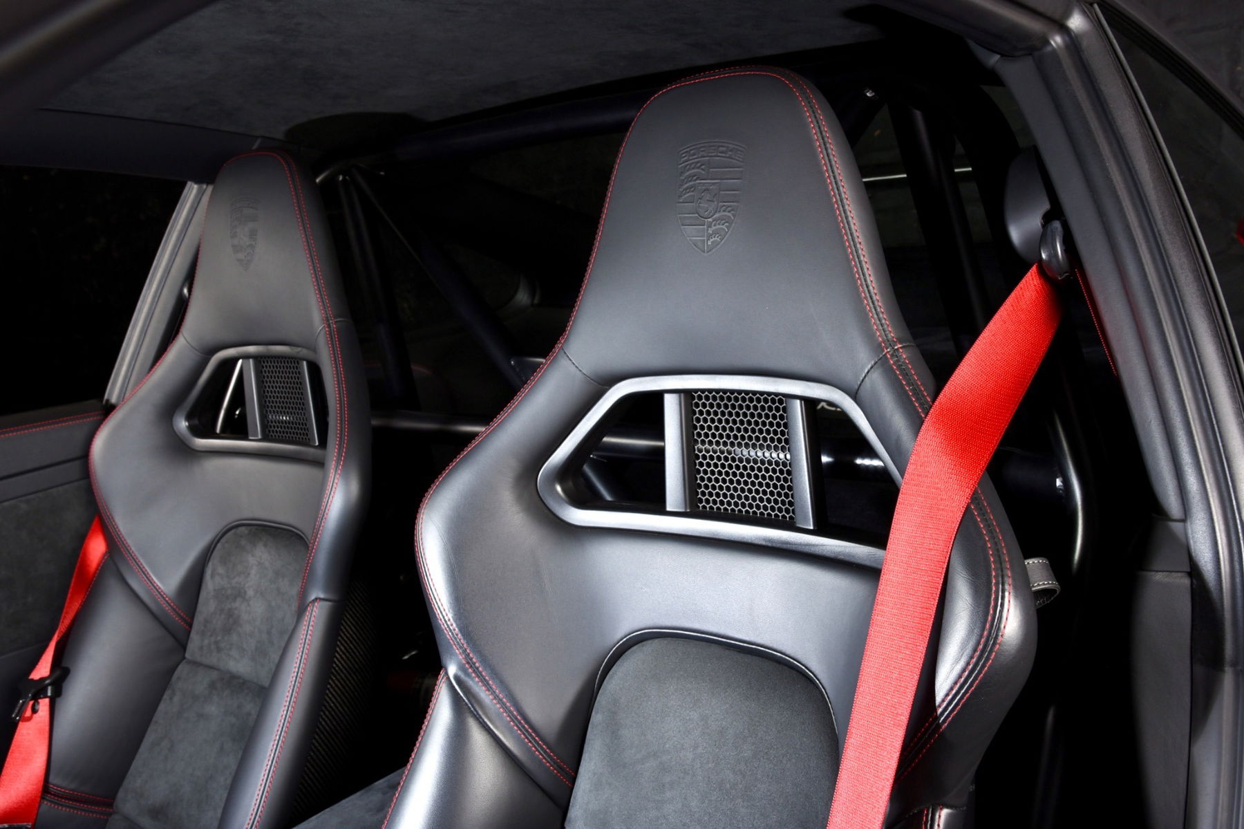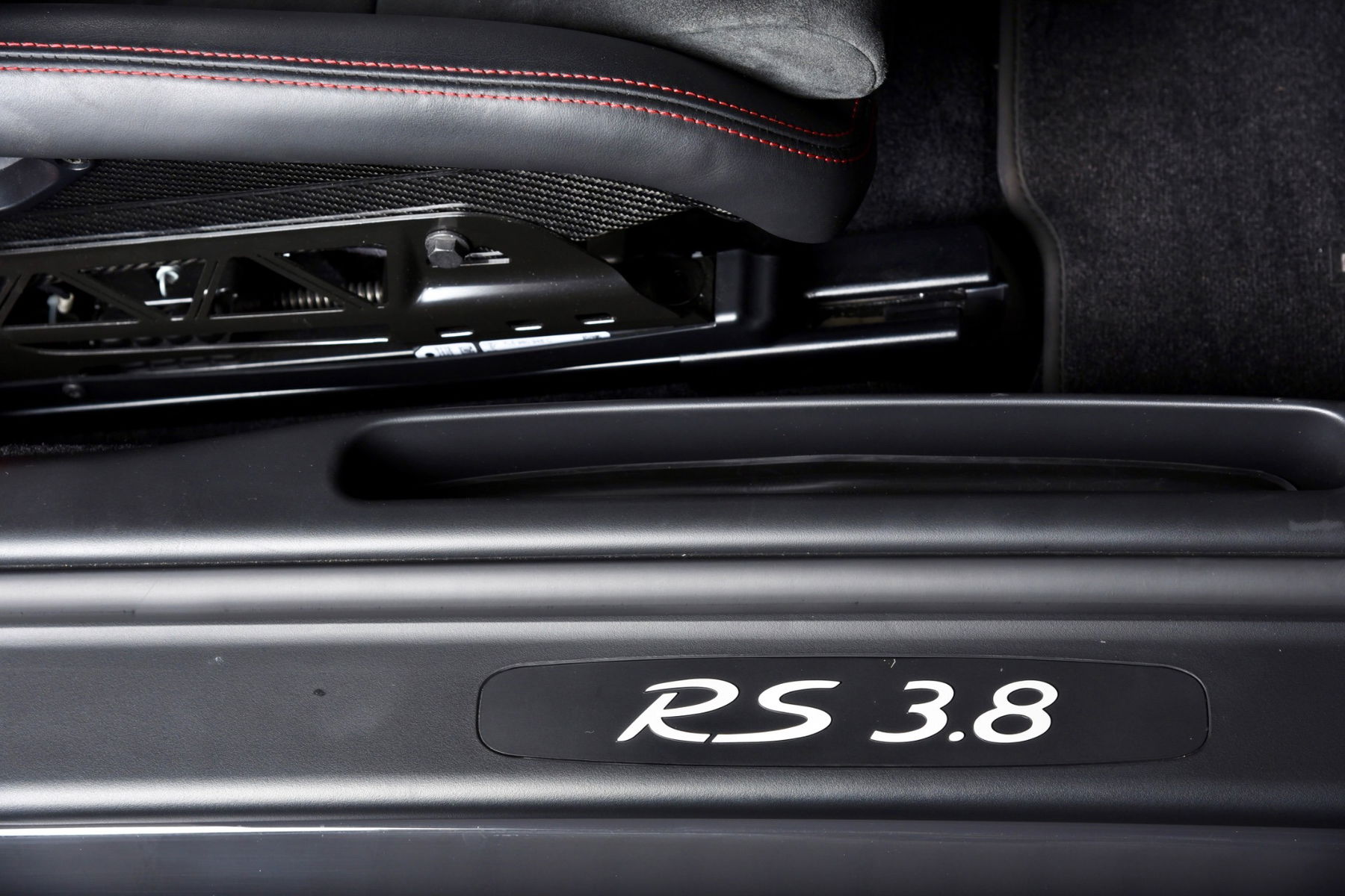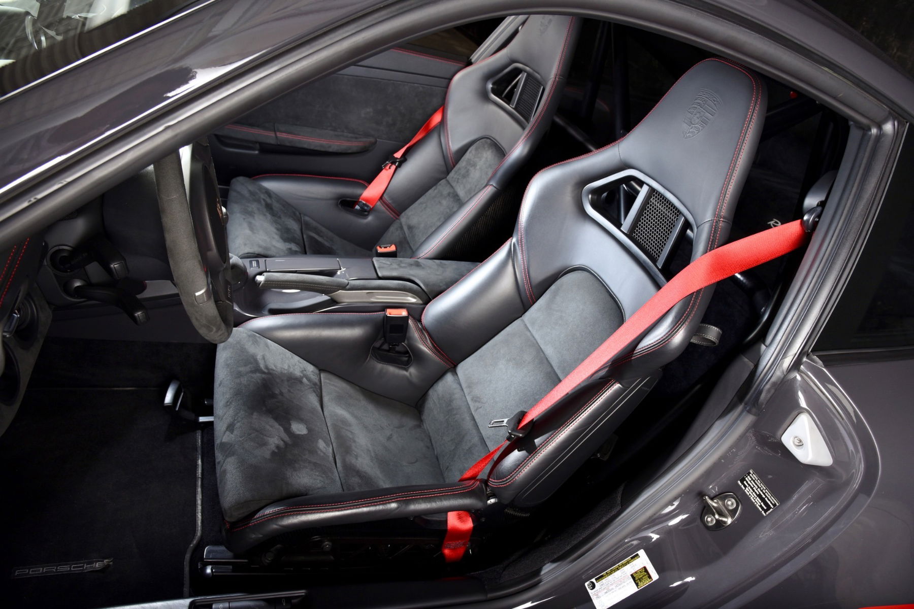 this gt3 rs exhibits a clean carfax report, displays an odometer reading of just 8,xxx miles, and features the following options (original msrp of $139,120): black leather interior; front axle lift system; porsche ceramic composite brakes (pccb); dynamic cornering lights; body-color headlight washer covers; sound package plus; pcm 3.0 with extended dvd navigation; xm radio; porsche crests embossed in headrests; front seat stitching in deviating color; interior-colored front floor mats; side center console stitching in deviating color; rear side panel stitching in deviating color; gear lever trim in exterior color; rear center console in exterior color; dashboard stitching in deviating color; door pull handle and extension stitching in deviating color; door stitching in deviating color; dual cupholders; grey black paint; universal audio interface; bluetooth hands-free phone interface; sport chrono package plus.