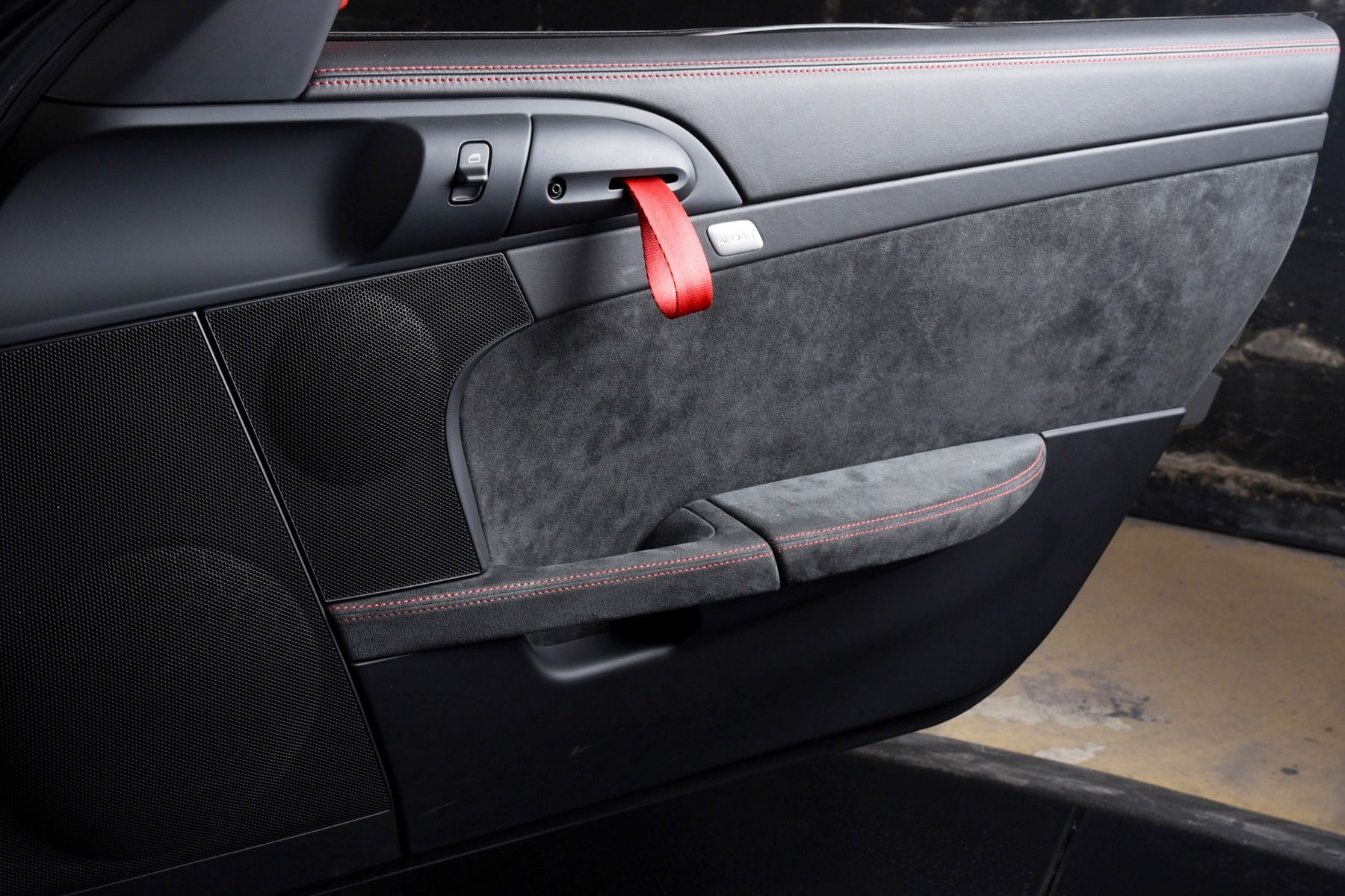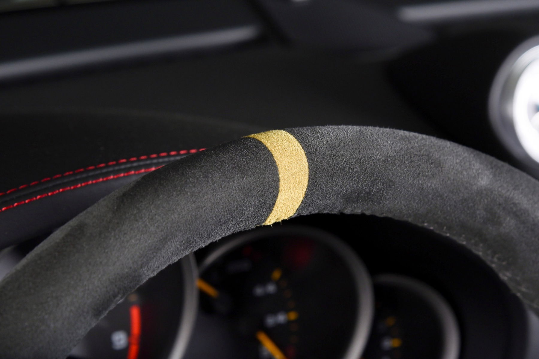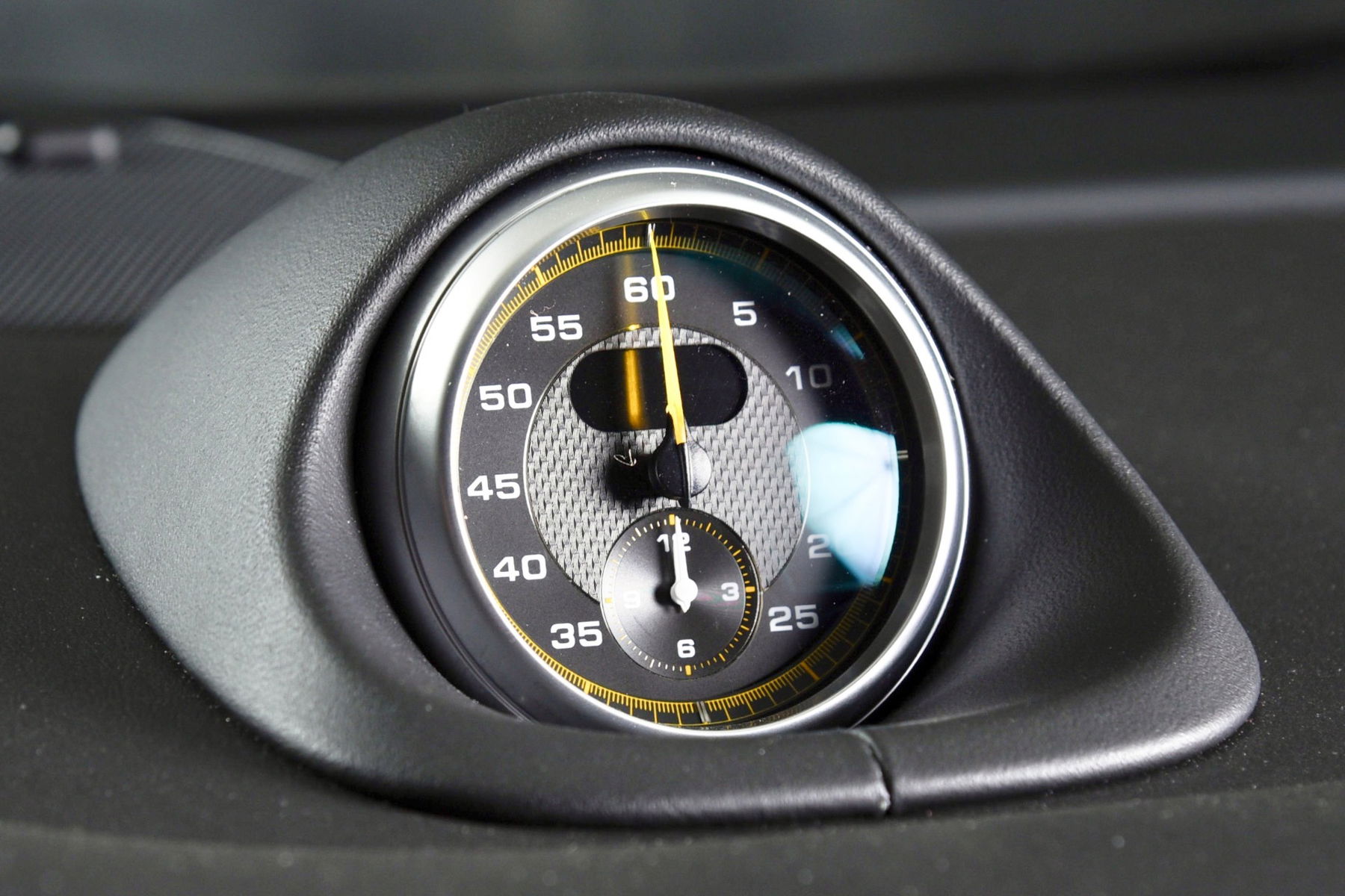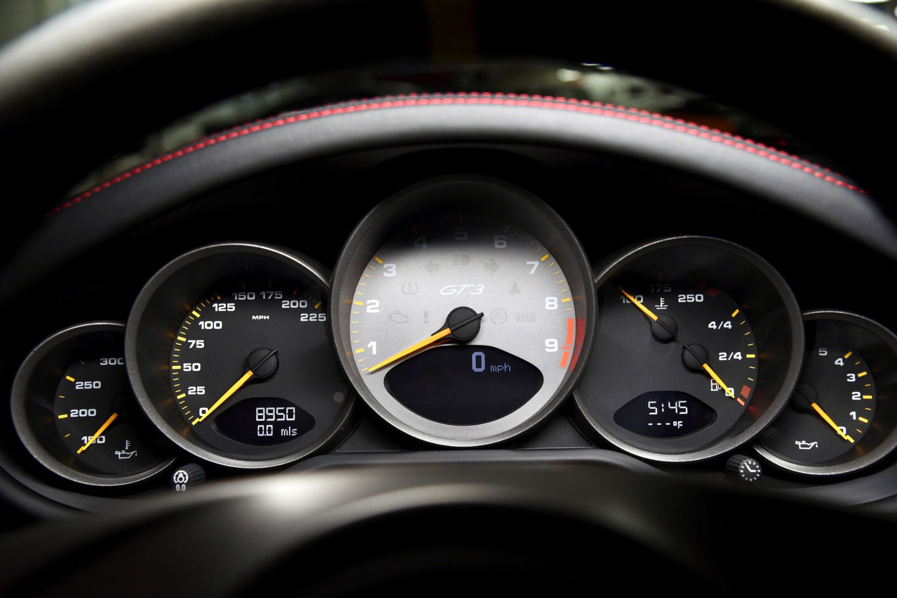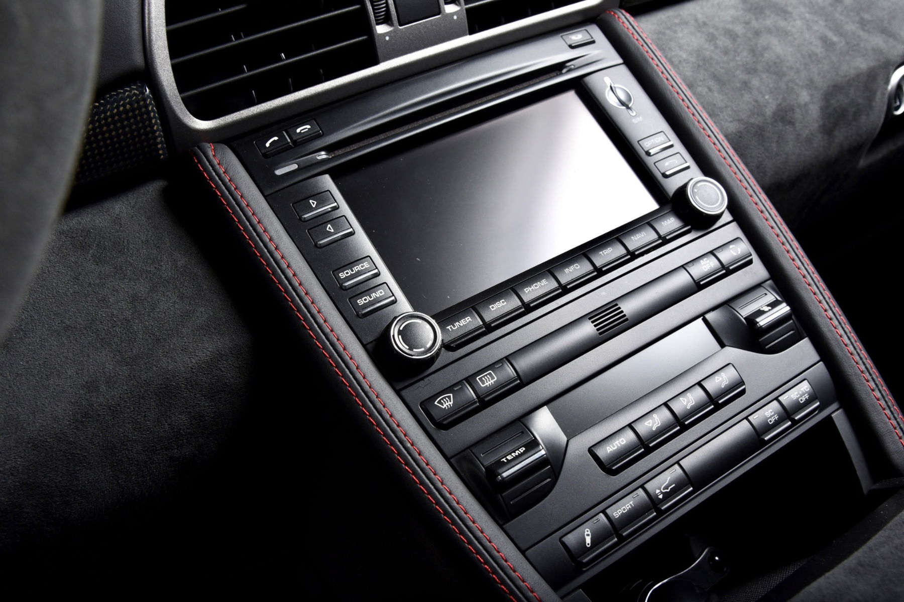 this gt3 rs exhibits a clean carfax report, displays an odometer reading of just 8,xxx miles, and features the following options (original msrp of $139,120): black leather interior; front axle lift system; porsche ceramic composite brakes (pccb); dynamic cornering lights; body-color headlight washer covers; sound package plus; pcm 3.0 with extended dvd navigation; xm radio; porsche crests embossed in headrests; front seat stitching in deviating color; interior-colored front floor mats; side center console stitching in deviating color; rear side panel stitching in deviating color; gear lever trim in exterior color; rear center console in exterior color; dashboard stitching in deviating color; door pull handle and extension stitching in deviating color; door stitching in deviating color; dual cupholders; grey black paint; universal audio interface; bluetooth hands-free phone interface; sport chrono package plus.