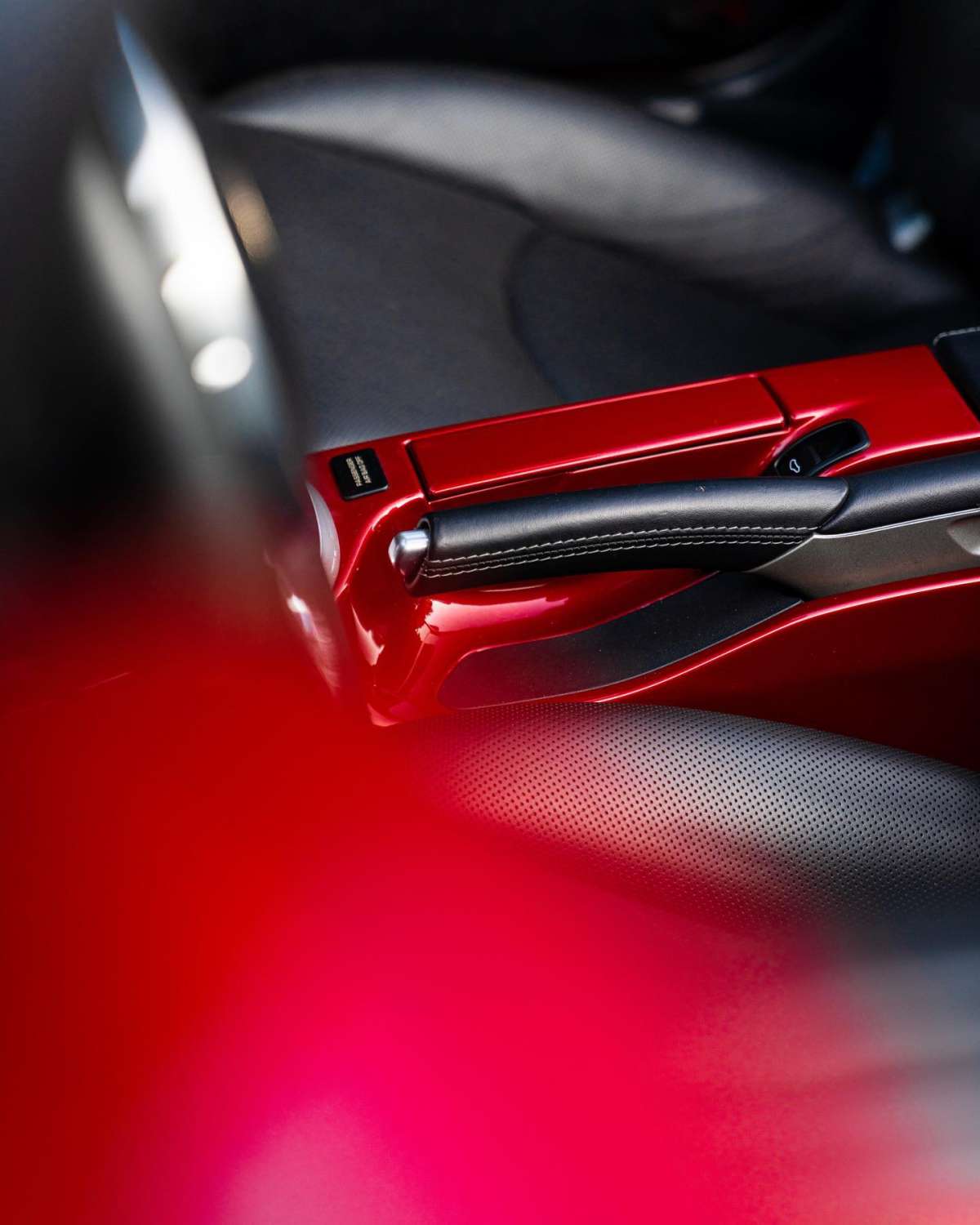 Showcased on the coveted RS Spyder Evo race car design-adjacent center lock wheels completed in a bright-silver finish while boasting a painted center crest and are situated before the ultra-desirable carbon ceramic braking system’s yellow-finished calipers with a body draped in the delectably extravagant red hue of Ruby Red Metallic over a cabin featuring Black Full Leather and visually elevated by a Ruby Red painted center tunnel and instrument surround while the option of allowing the atmosphere to be fully allowed in by way of retracting the black finished soft top with an audio experience provided by the standard Bose Surround Sound System featuring 12-speakers, this sensational specimen displays an odometer reading of a low 9,XXX miles, exhibits a Clean CARFAX Report, and featured an original MSRP of $173,785 with a build sheet listing the following equipment: Porsche Doppelkupplung (PDK); Heated Front Seats; 19-inch RS Spyder Whl w/Centr Lock; Ceramic Composite Brakes-PCCB; Delete Model Designation; Seat Ventilation; Dynamic Cornering Lights; Bluetooth Phone Interface; Parking Assist System; Sport Chrono Package Turbo; PAG Code – Launch code; Floor Mats in Interior Color; Sport Wheel with Shift Paddles; Universal Audio Interface; Ruby Red Metallic; Black Full Leather; Key Pouch Interior Color Leath; Painted Model Desig Rear Lid; Cabriolet roof in Black; Side Skirts in Exterior Color; Instrument Surround Ext Color; Prep for Illum Door Sill Guard; Rear Ctr Cons Painted Extr Clr; Porsche Crest-Storage Bin Lid; Porsche Crest in Headrest; Outer Door-sill Guards SS.