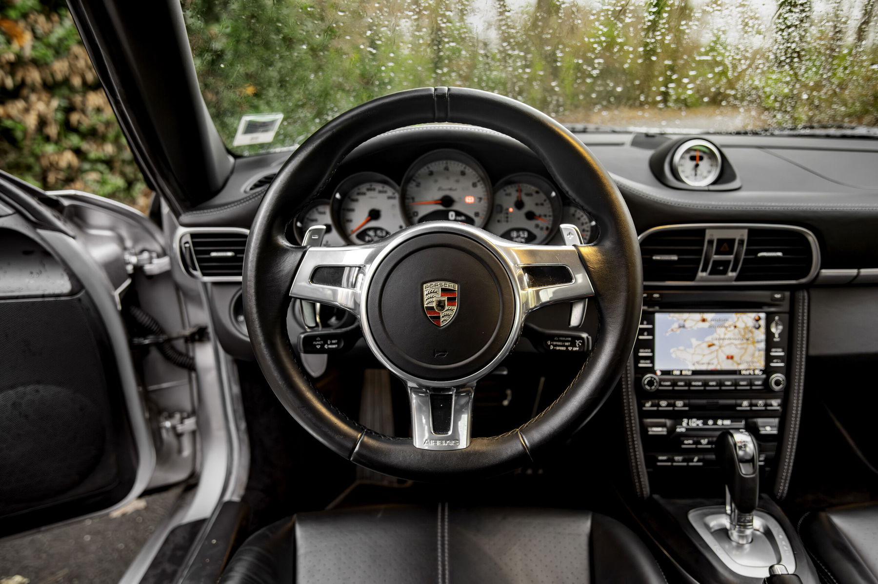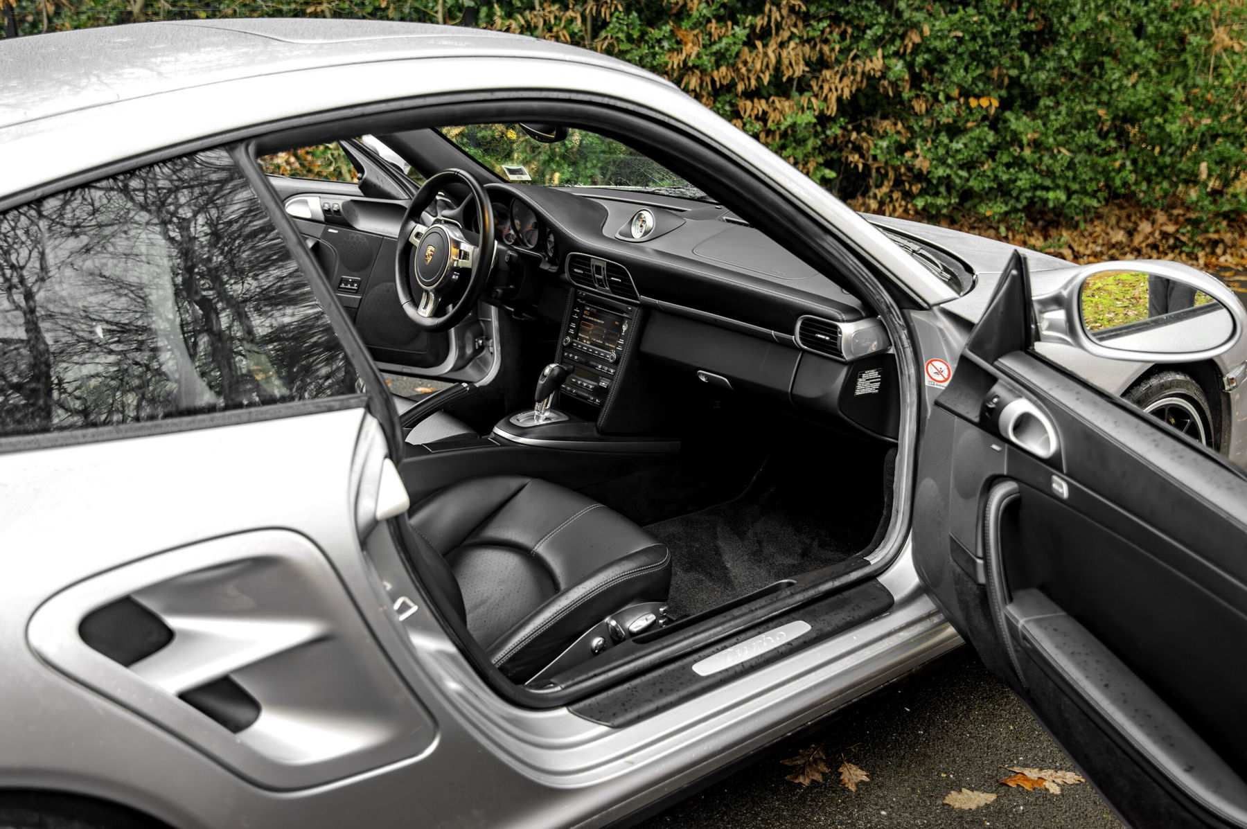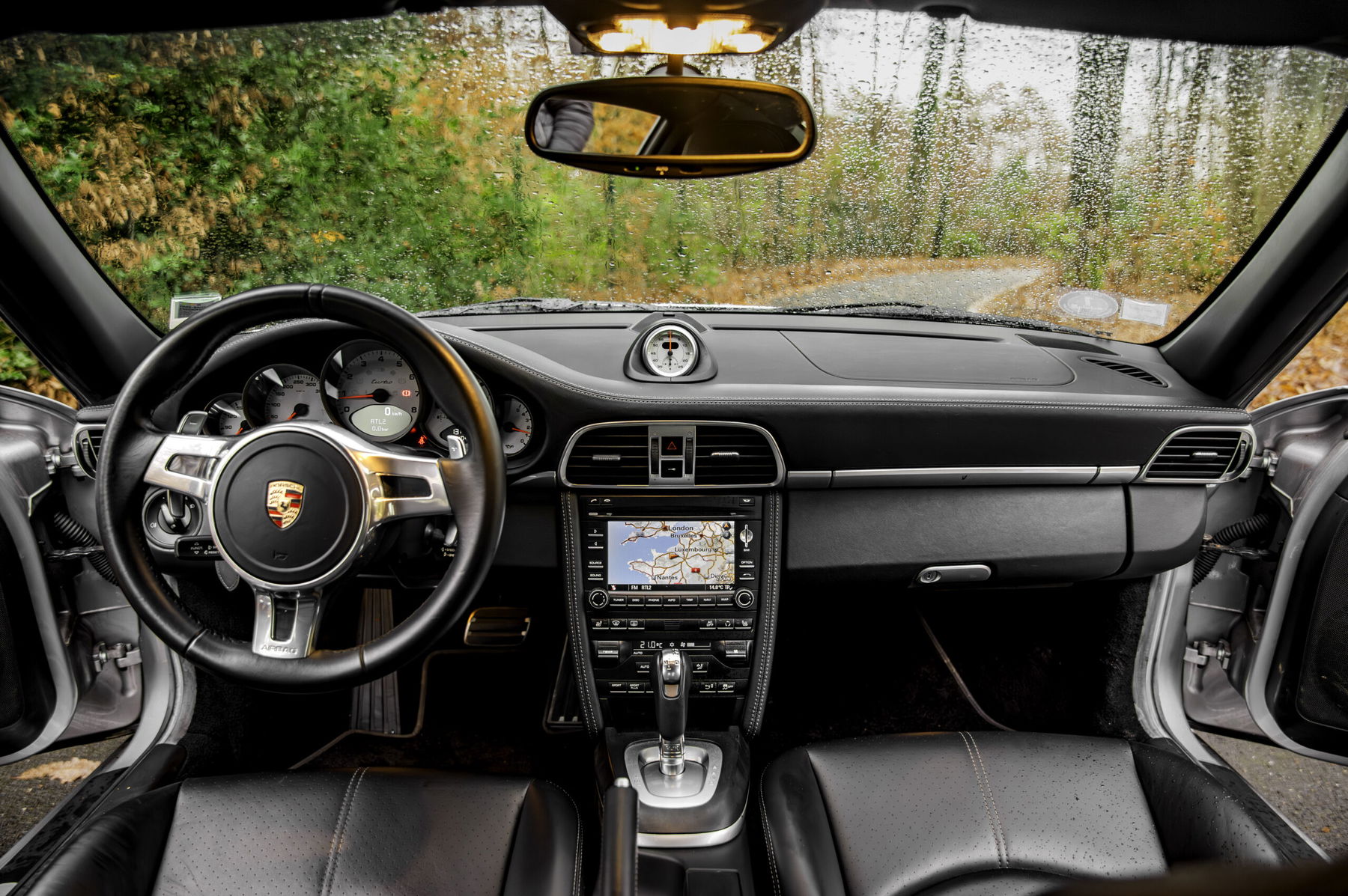 The bodywork is in very good overall condition. The “Gris GT” paintwork has a beautiful shine and enhances the curves of this Turbo. We note only a small paint defect on the rear bumper. The 19-inch center-lock wheels, rare on Turbo versions, are in good condition. We note a few slight scuff marks. The black leather interior has been well maintained. It is equipped with many nice options such as a sunroof, Bose audio system, heated and power sports seats with body-colored shells, the Sport Chrono package, etc.