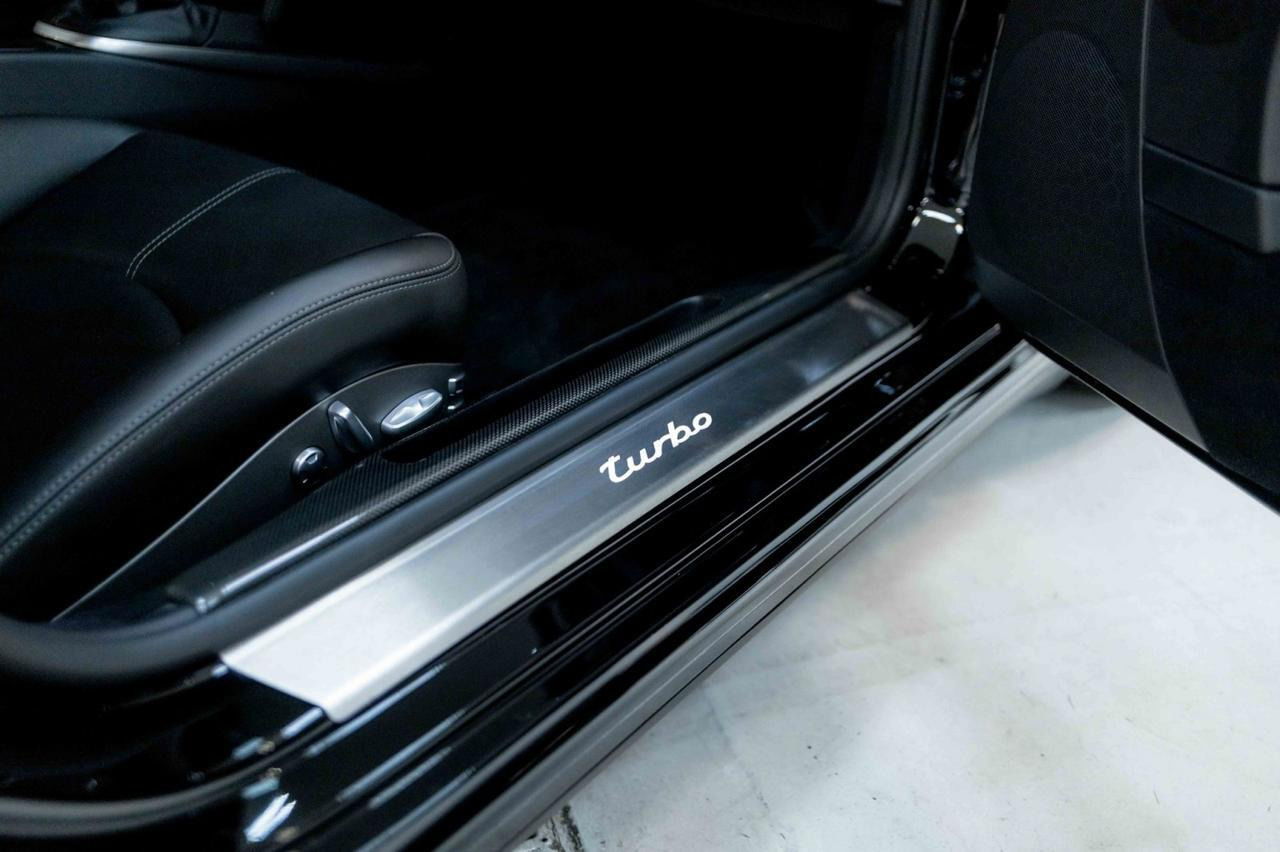 sport chrono package turbo including dynamic engine mounts, interior package in carbon, three-spoke multi-function steering wheel in carbon, black full leather interior, adaptive sport seats in leather with driver memory, illuminated door sill guards, exterior mirror lower trim, aluminum look, clear tail lights, fuel tank cap in aluminum and more!