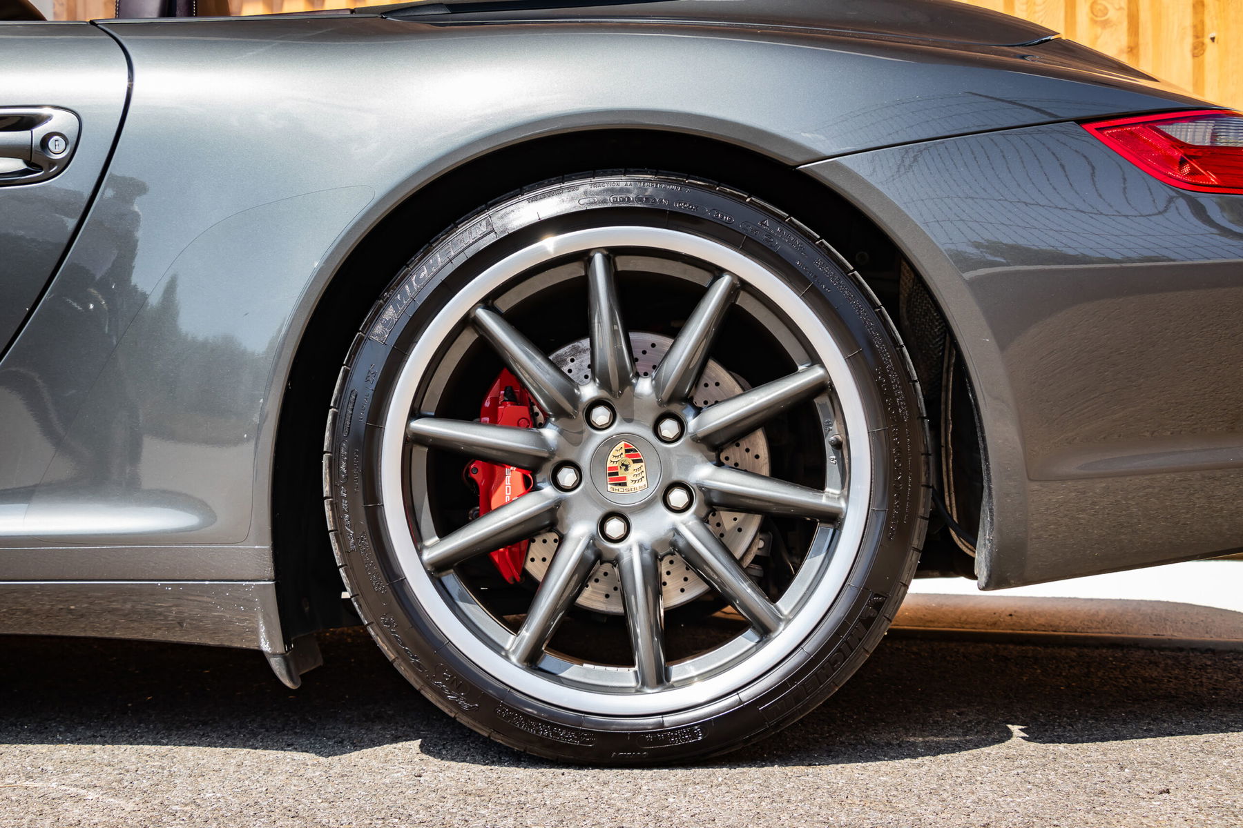 The example we are presenting today is a Porsche 997.1 Carrera 4S Cabriolet delivered new to the Porsche Center in Nuremberg (Germany) in March 2006. Maintained exclusively in the Porsche network and with just over 39.000 km, the car has a PTS “Schiefer Metallic” paint, also called Slate Gray, combined with a “Cocoa” leather interior and has many options such as the sports exhaust, short shifter, chrono pack, body-colored painted wheels as well as many leather elements inside such as the center console, the steering column and the sun visors. The complete list is of course visible below.