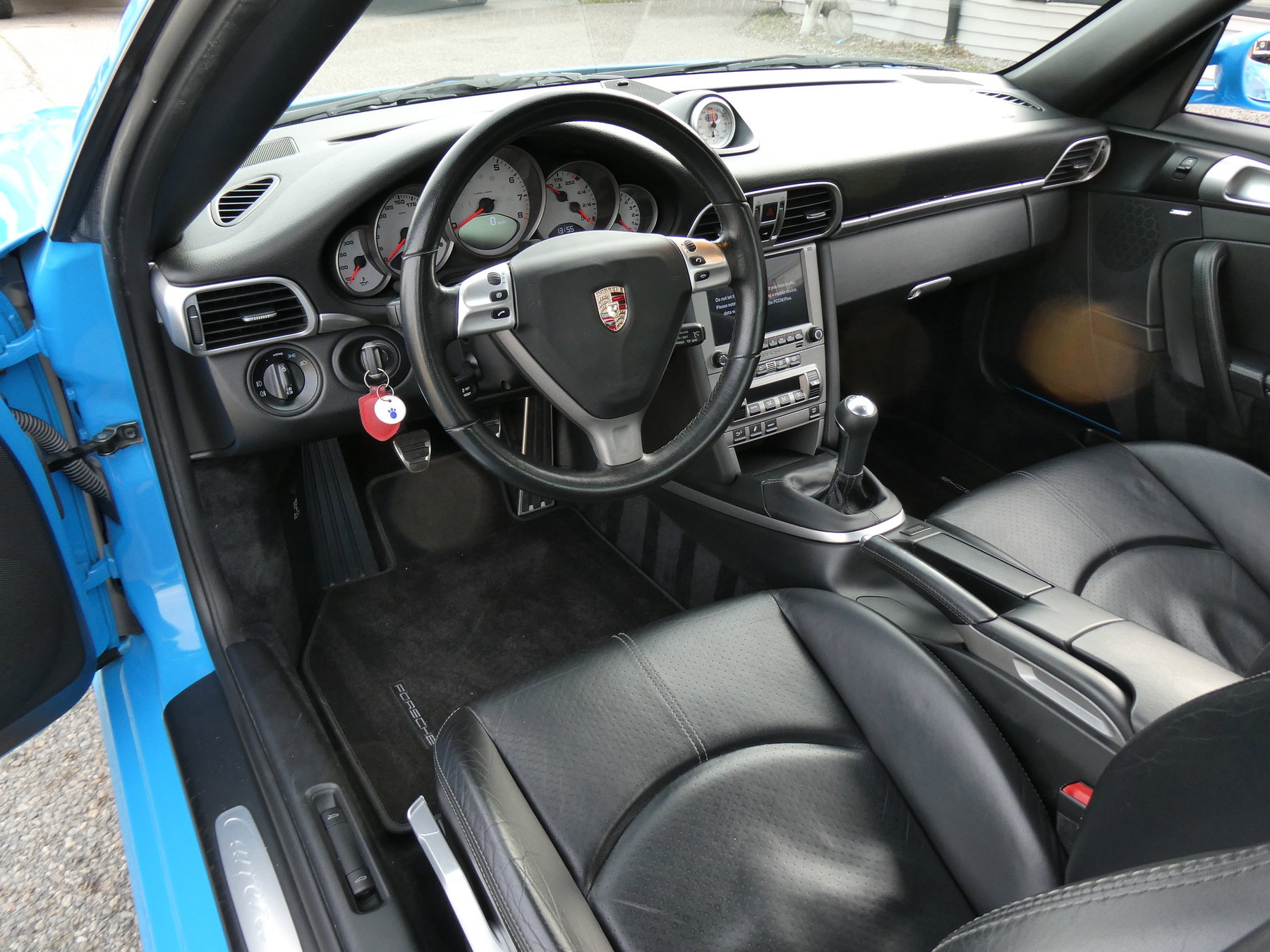 2006 Porsche 911 (997.1) Carrera 4S wide body coupe, S/N WP0AB29936S743132, Paint to Sample Mexico Blue with black leather sport seats, 355hp 3.8 litre normally aspirated flat 6 cylinder engine with 295 lb-ft of torque, 6 speed manual transmission, permanent all-wheel-drive, PASM/ Porsche Active Suspension Management, 2+2 seating, Sport Chrono Package Plus, 19 inch Carrera Sport wheels, wheel caps with Porsche crest in color, 3 spoke multi-function steering wheel, silver instrument dials, PCM/ Porsche Command Management with factory navigation system, Bose high end sound system, sport exhaust system, factory sliding sunroof, rear wiper, original owner’s manuals and leather wallet, original maintenance booklet, spare keys, delivered new April 24, 2006 via Porsche of San Diego, impeccable condition throughout and looking simply spectacular in its Paint to Sample color code 336 Mexicoblau.
