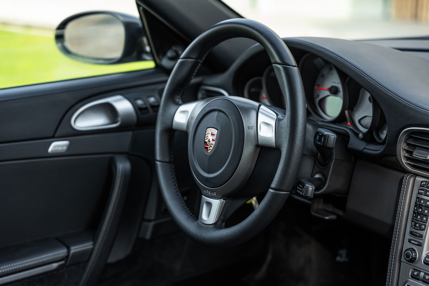 A truly exceptional 997.1 Carrera 4S in collector-grade condition, offered with an almost impossible specification and an ownership history that speaks for itself. This car stands out immediately thanks to its first paint, beautifully preserved and presented in the timeless Slate Grey Metallic—a colour that perfectly suits the wide-body 4S silhouette. Even more importantly: it has been maintained by Porsche every two years, with every invoice on file, creating an impeccable and fully documented service history. For the purist driver, the highlight is the rare combination of a manual gearbox with Sport Shifter, paired with the highly desirable X51 Powerkit—an option that elevates the driving experience and collectability to another level. Add to that PCCB (Porsche Ceramic Composite Brakes), and you have a specification that is seldom seen, especially in this condition and mileage. Inside, the car features the sought-after optional black soft leather interior, complemented by a full carbon package, giving the cabin a purposeful yet luxurious feel.