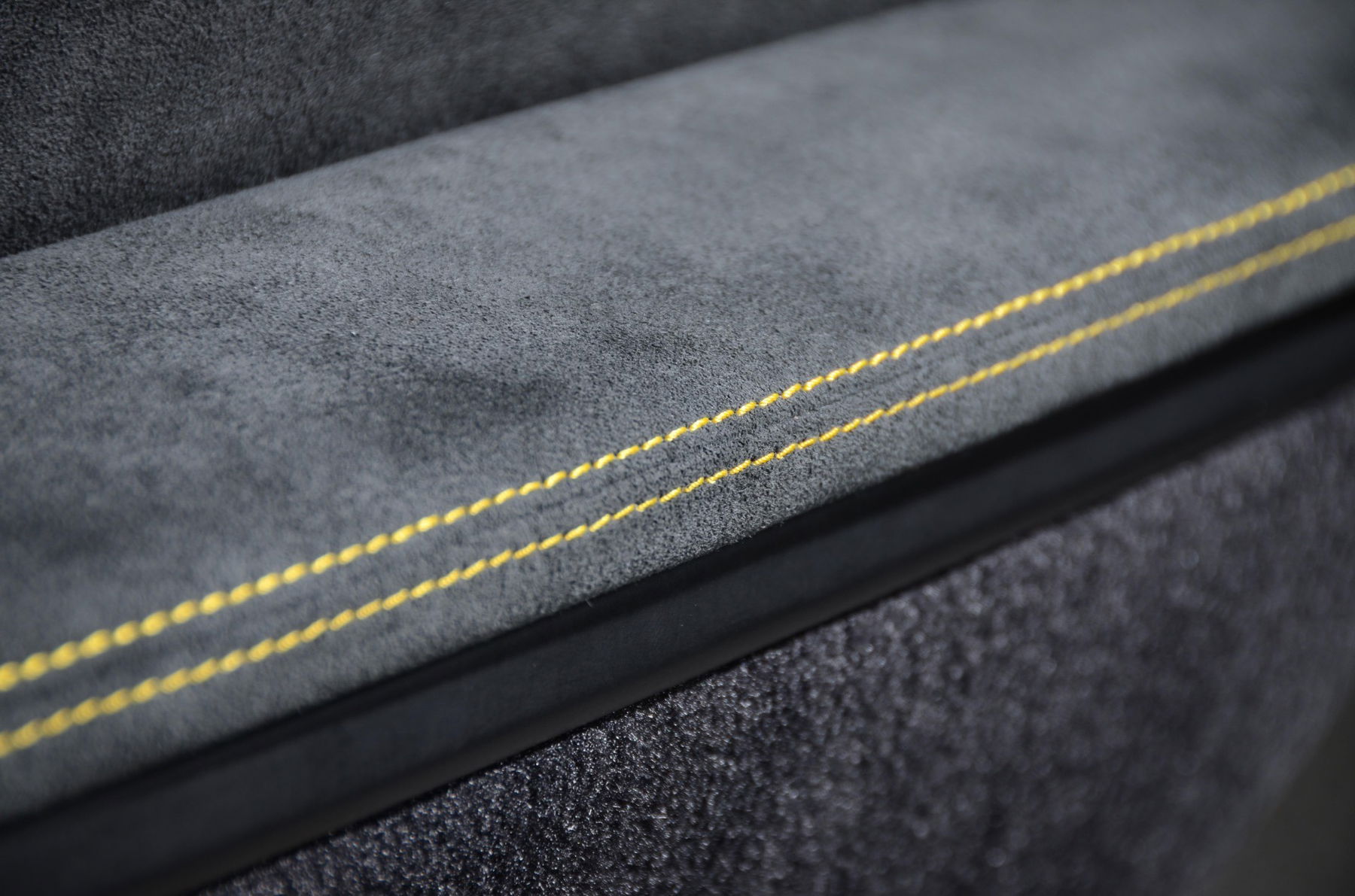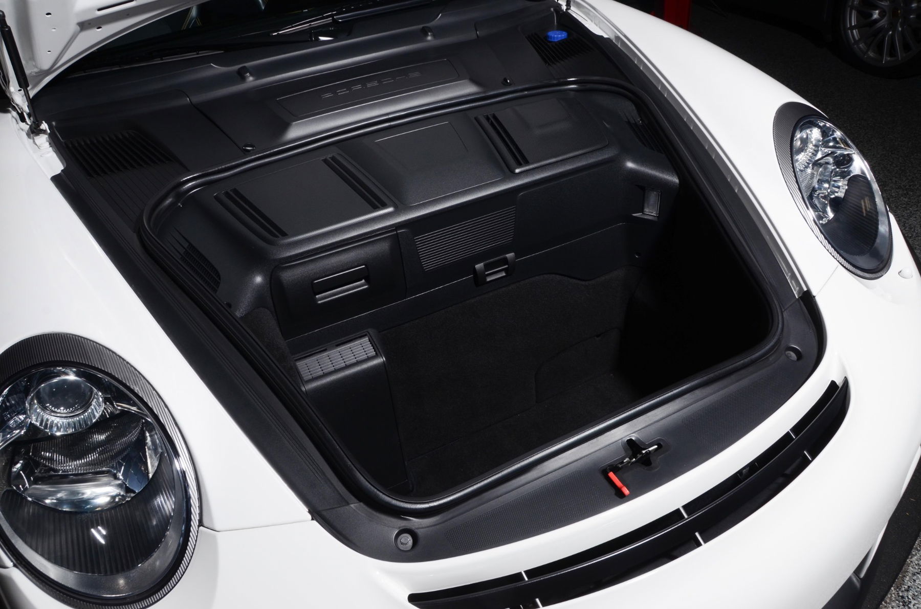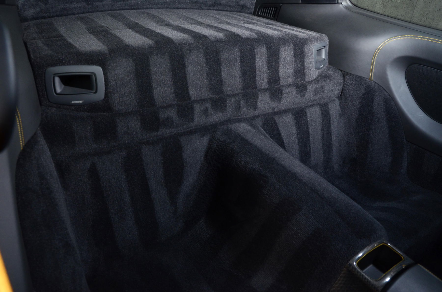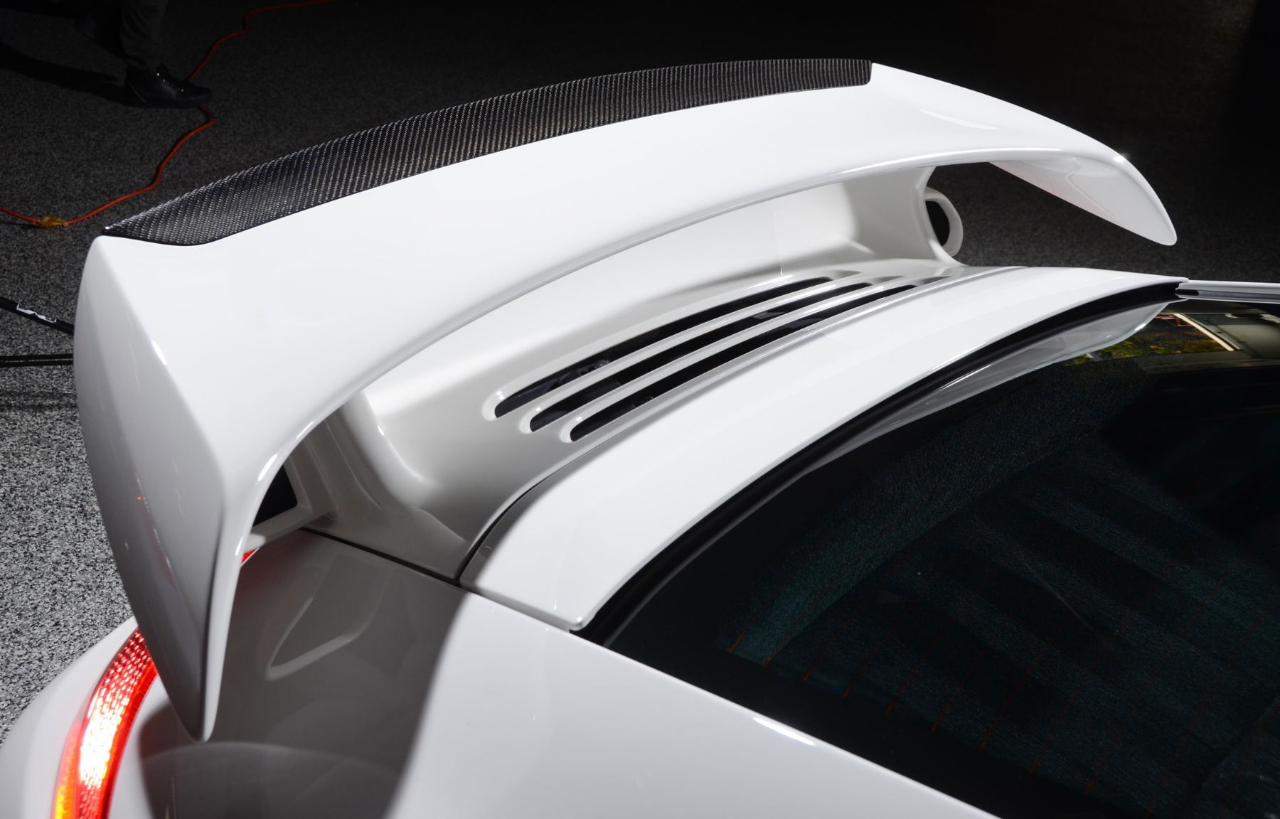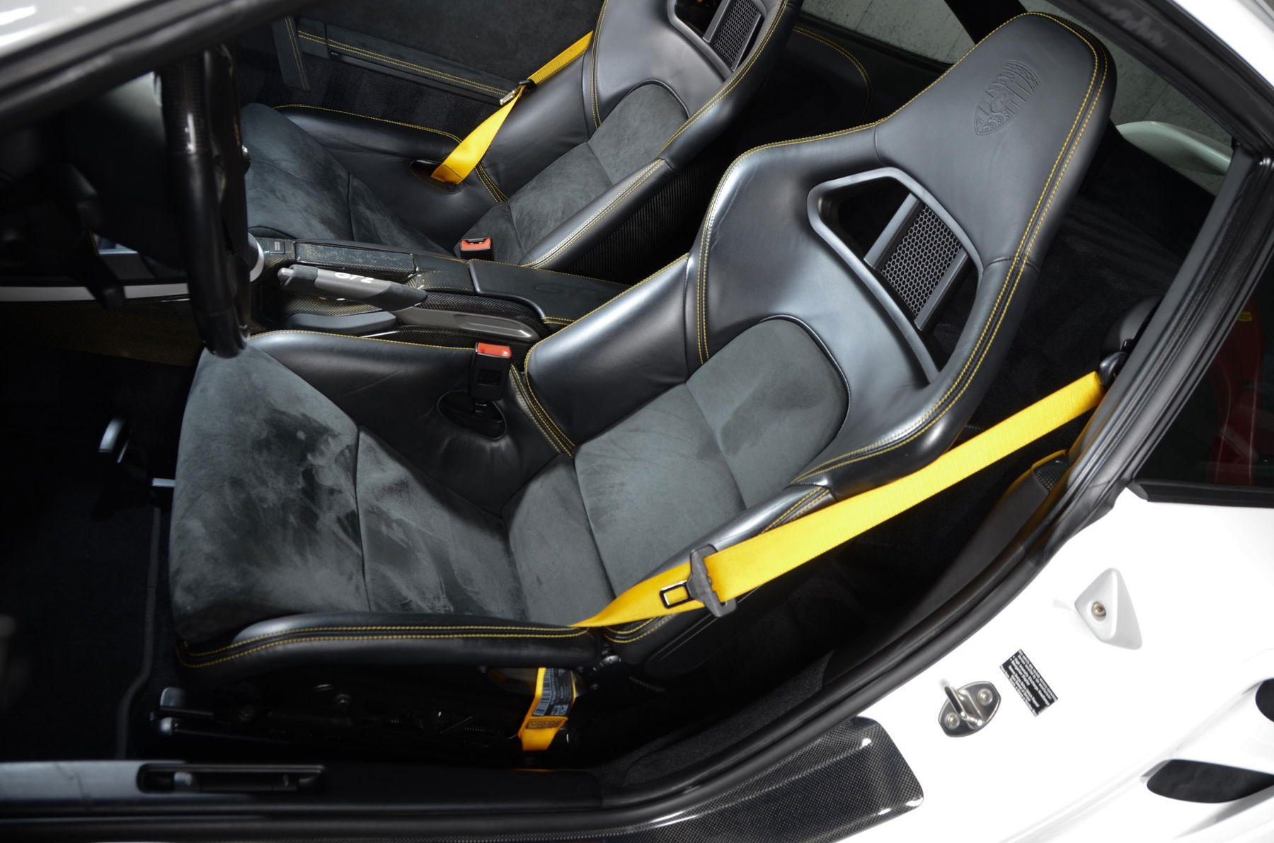 showcased on the 997 gt2 generation’s signature 19-inch multi-spoke wheels in black and displayed against yellow brake calipers of the renowned pccb setup, with a body finished in carrara white, mirror housings featuring carbon fiber surrounds, a rear end characterized by red tail lights, while the black full leather-lined cabin is visually elevated by speed yellow seat belts, a carrara white finished instrumentation surround, shift-boot surround, and dashboard trim strip, yellow stitch-work, and carbon fiber trim and alcantara upholstery on select areas.