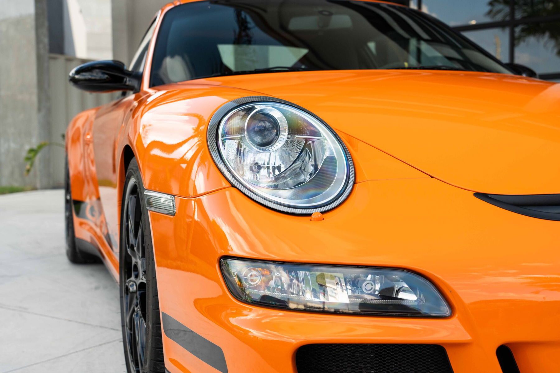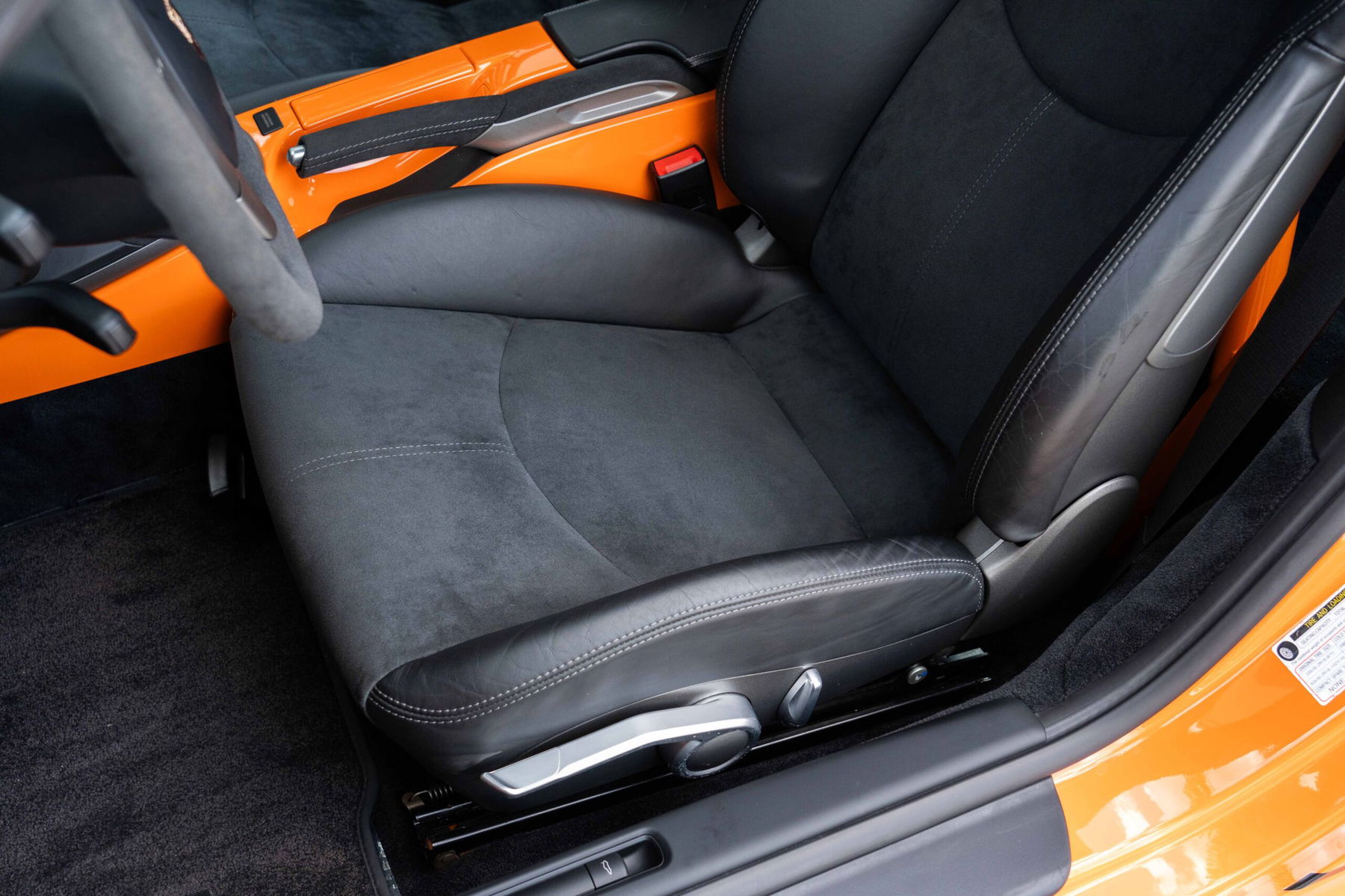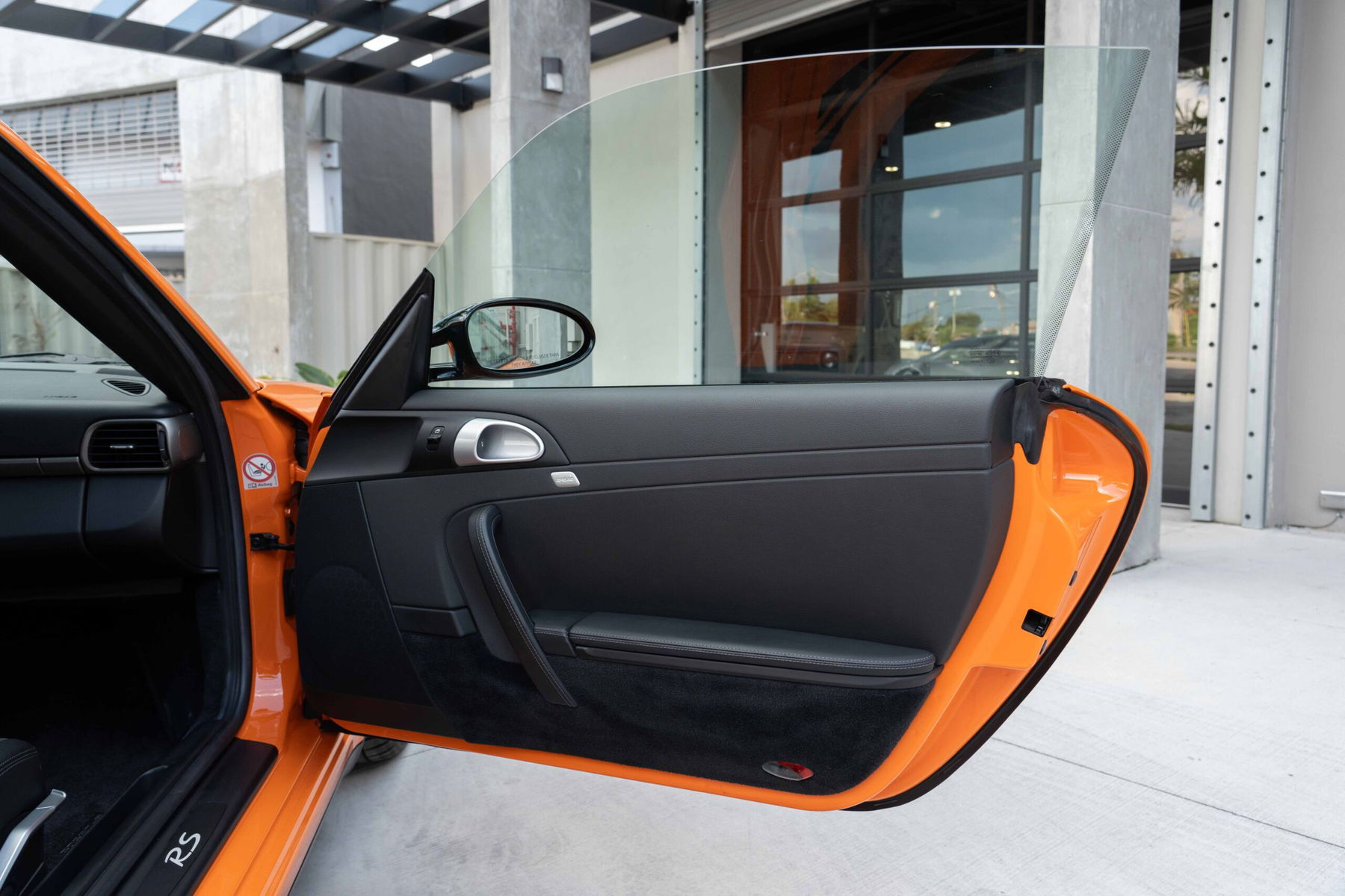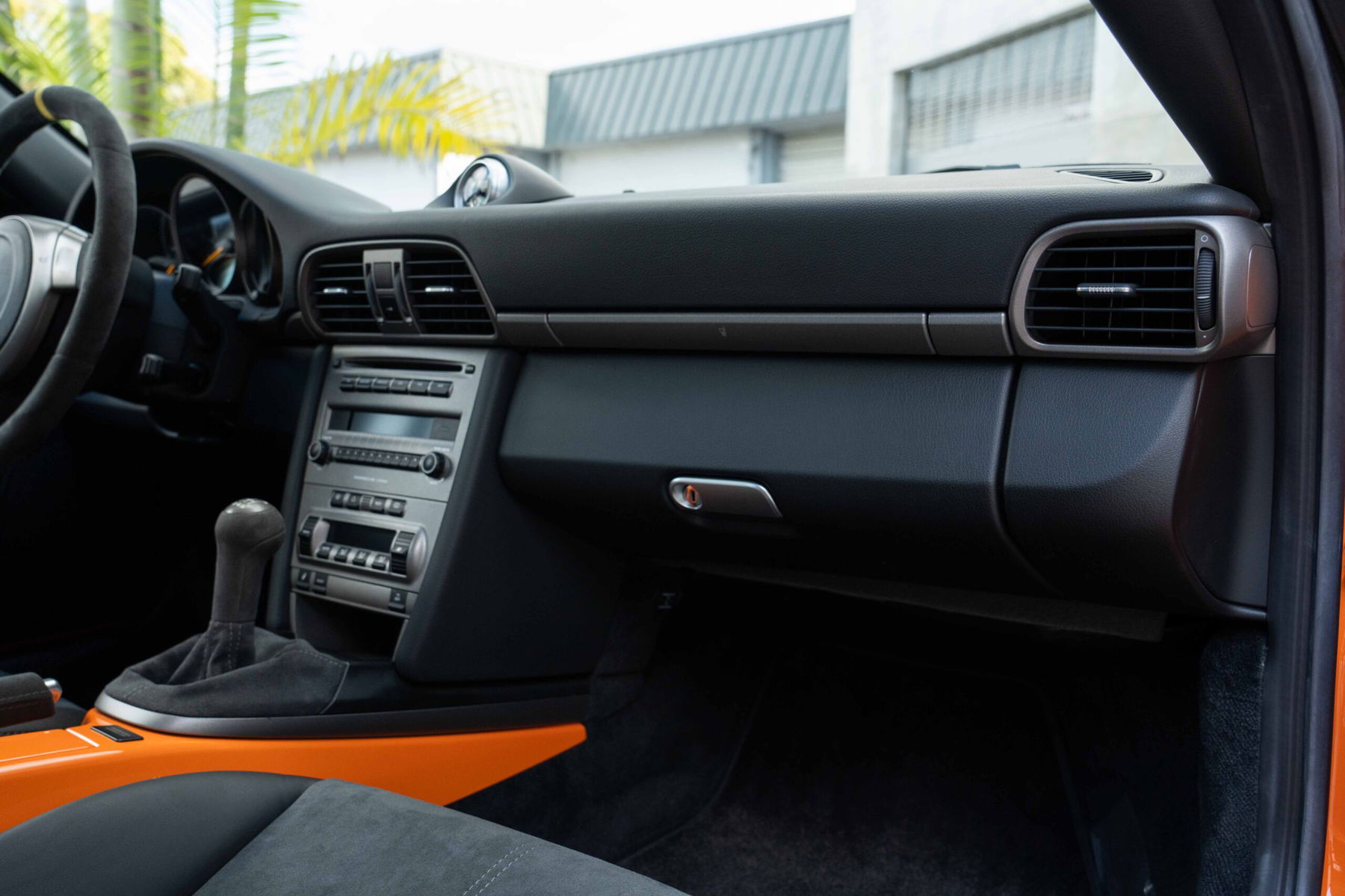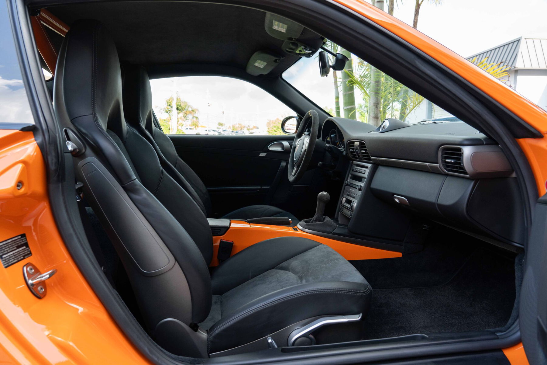 Finished in iconic Orange with black graphics over Black leather, this 997.1 GT3 RS shows just 9k miles and is equipped with sought-after options including Porsche Ceramic Composite Brakes (PCCB), Chrono Package, Bi-Xenon headlamps, and painted rear center console. Additonally, this RS has a paint-matched Orange roll bar.