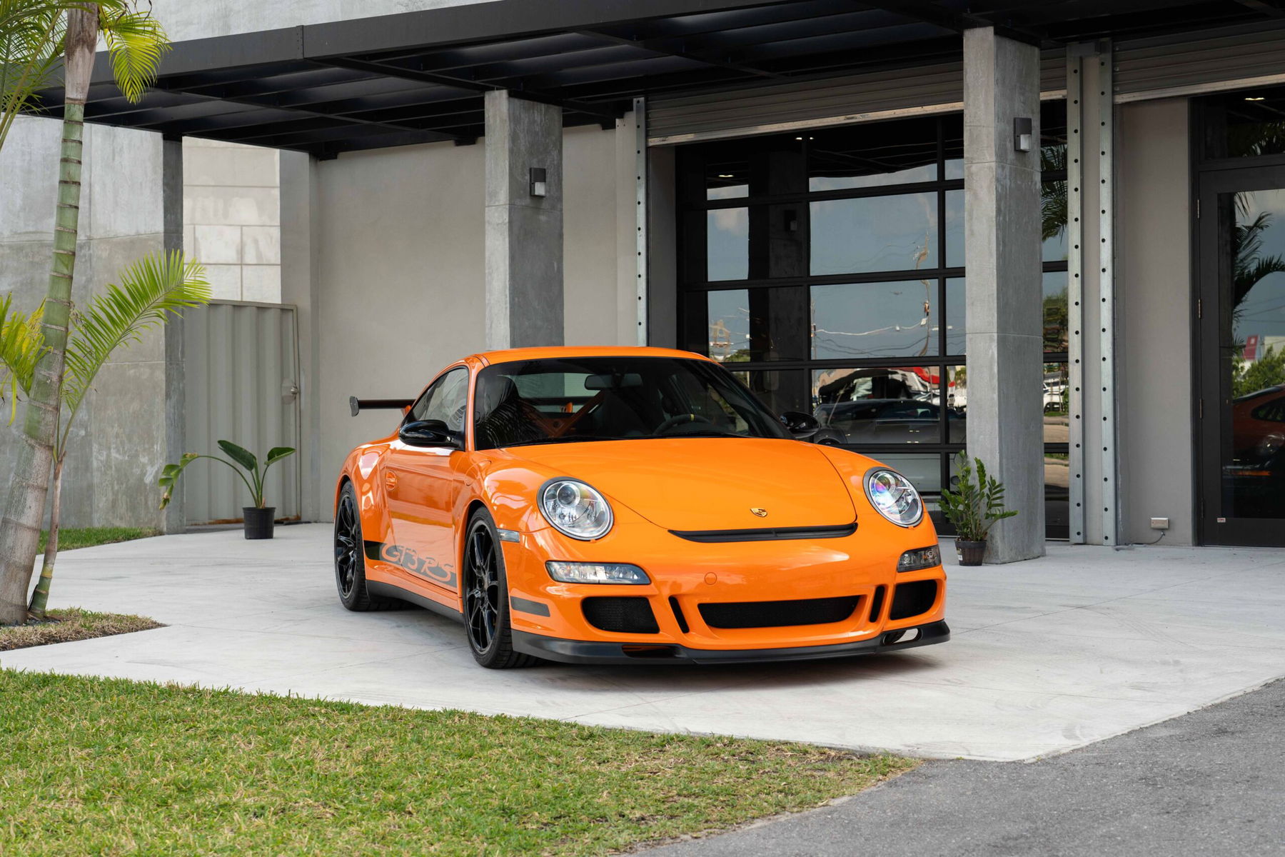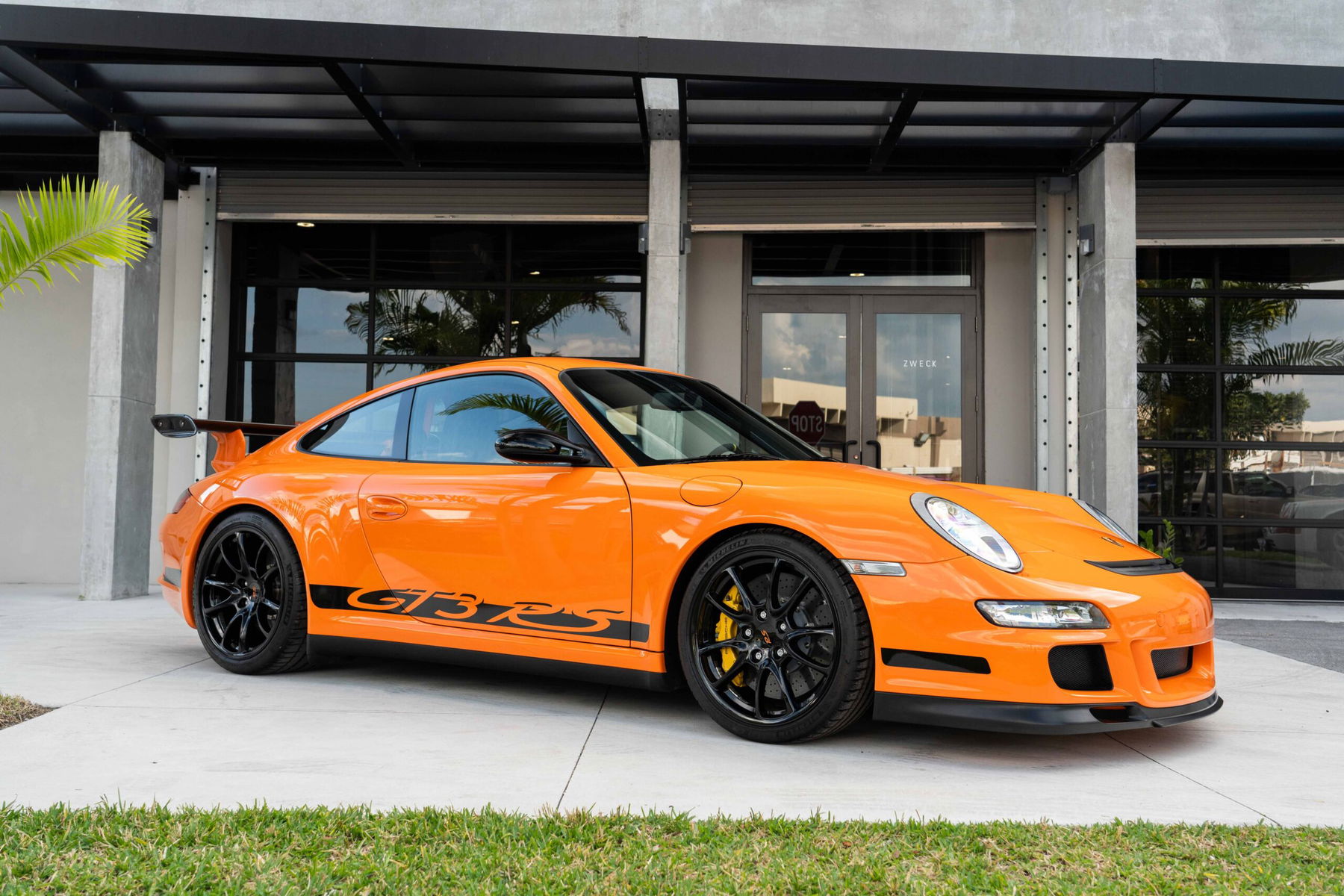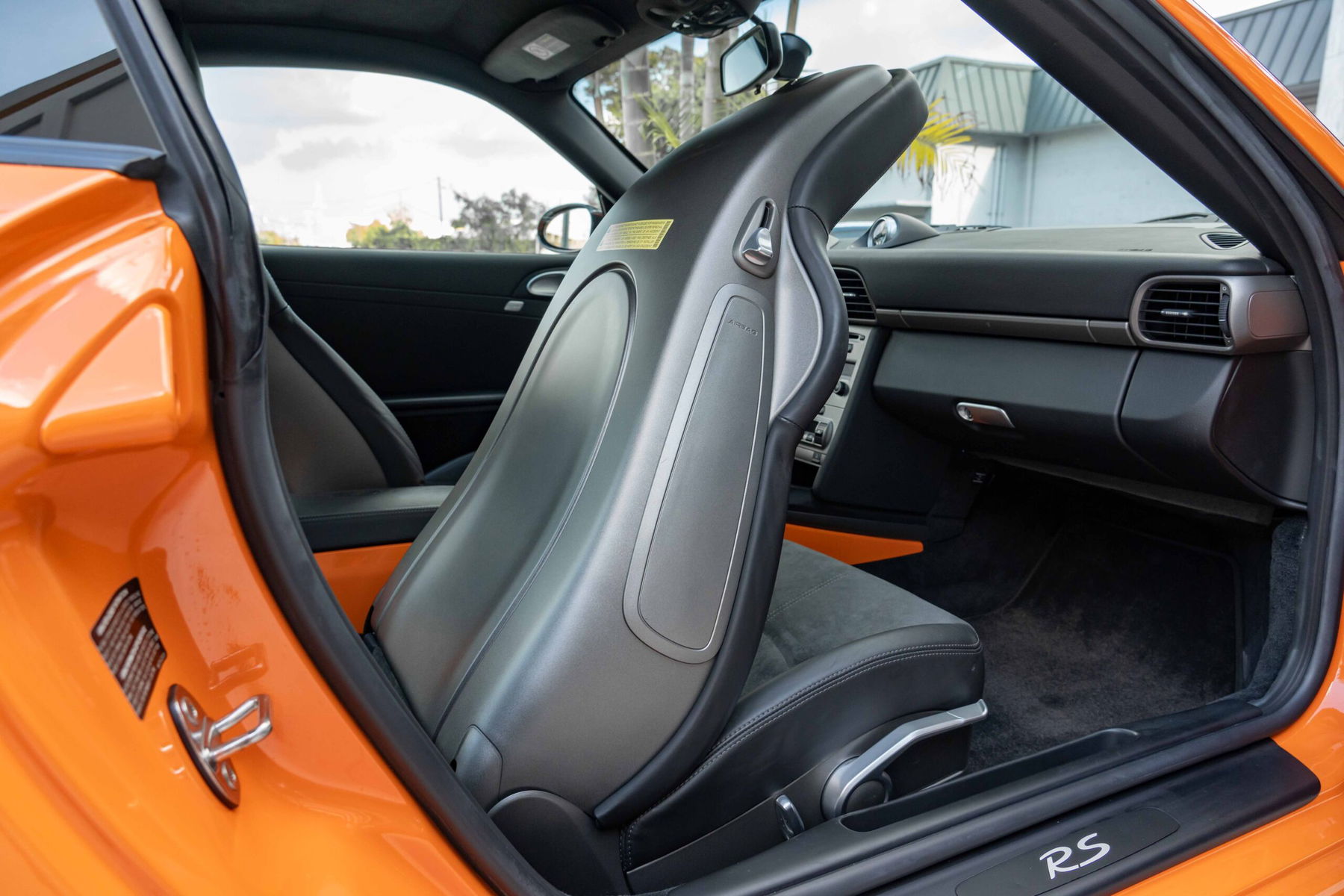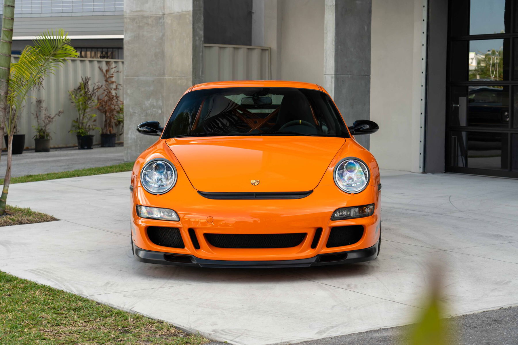 Finished in iconic Orange with black graphics over Black leather, this 997.1 GT3 RS shows just 9k miles and is equipped with sought-after options including Porsche Ceramic Composite Brakes (PCCB), Chrono Package, Bi-Xenon headlamps, and painted rear center console. Additonally, this RS has a paint-matched Orange roll bar.