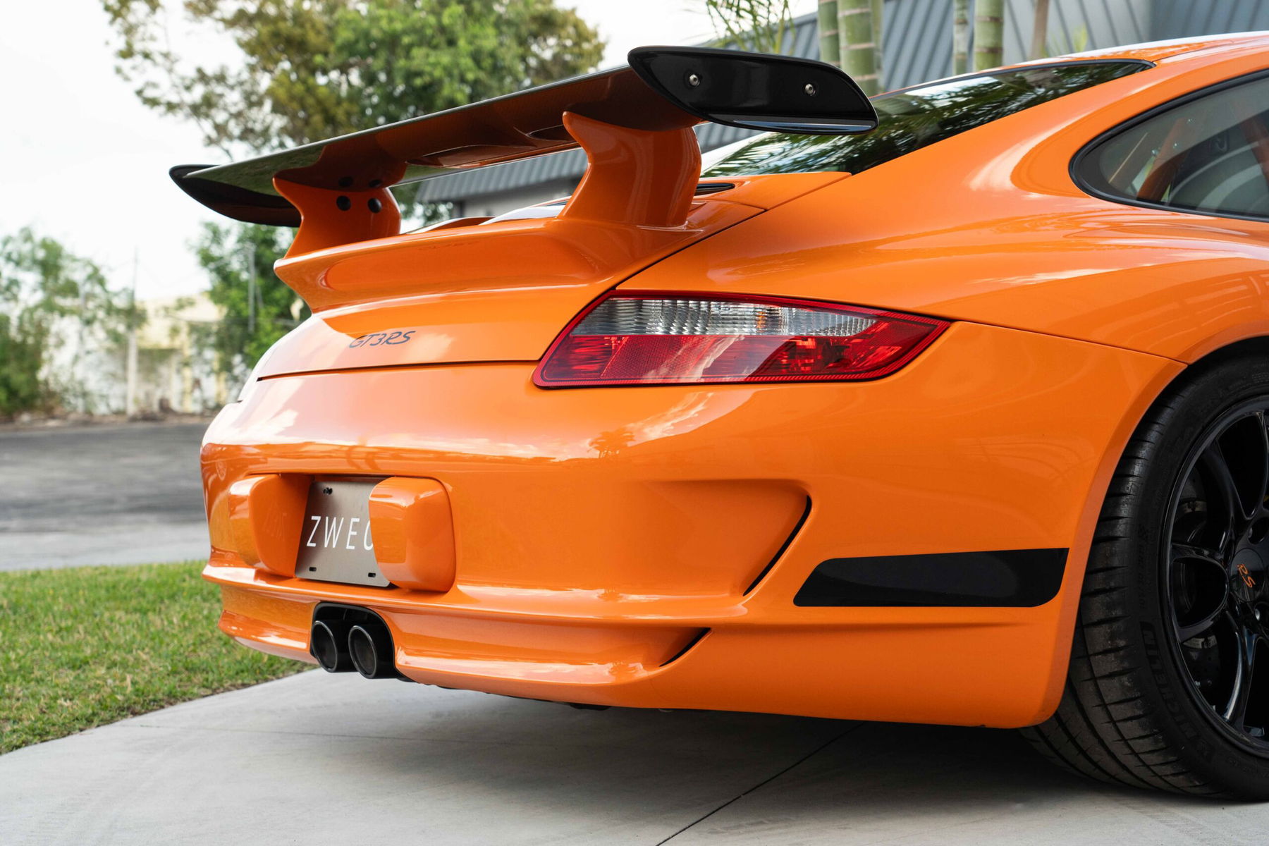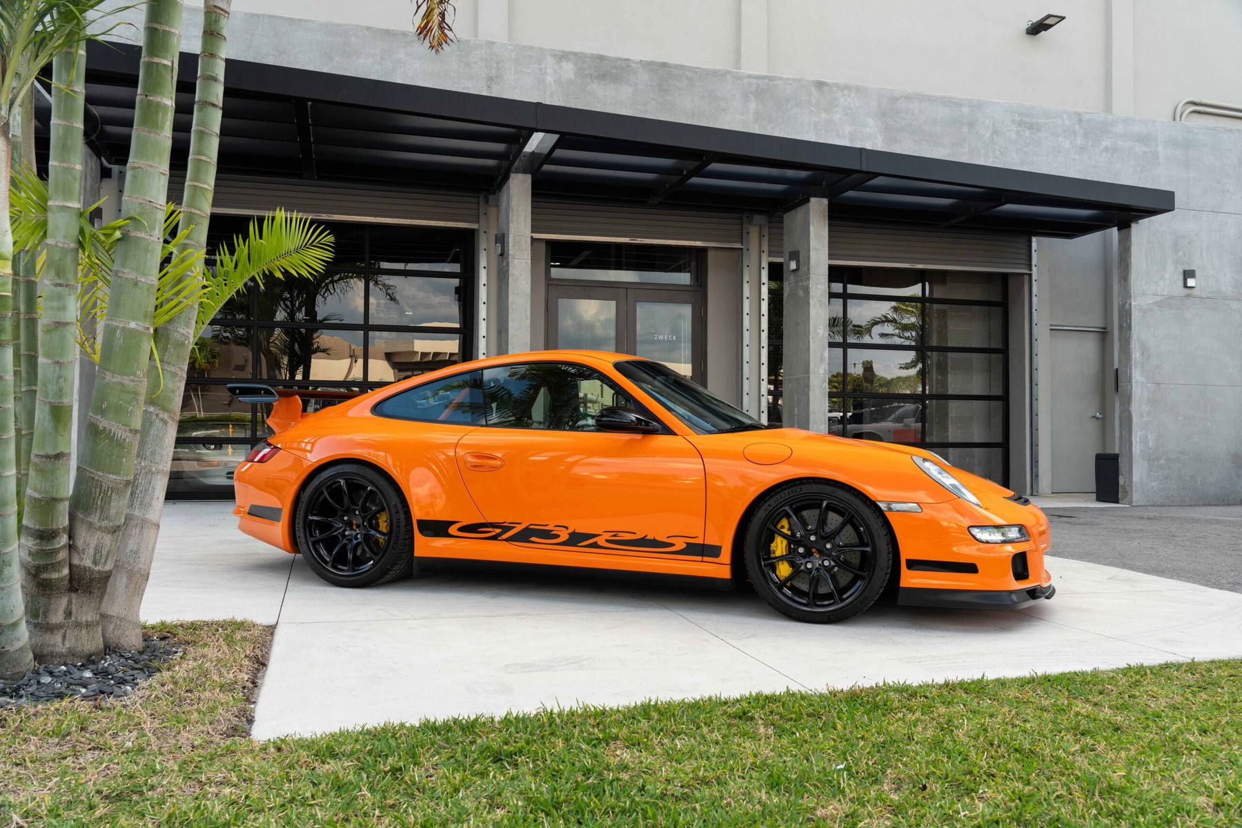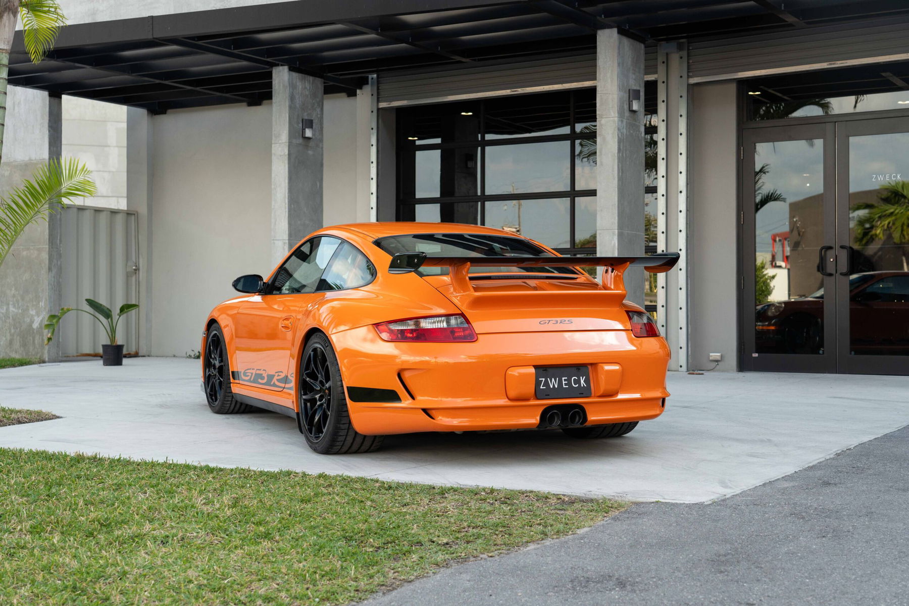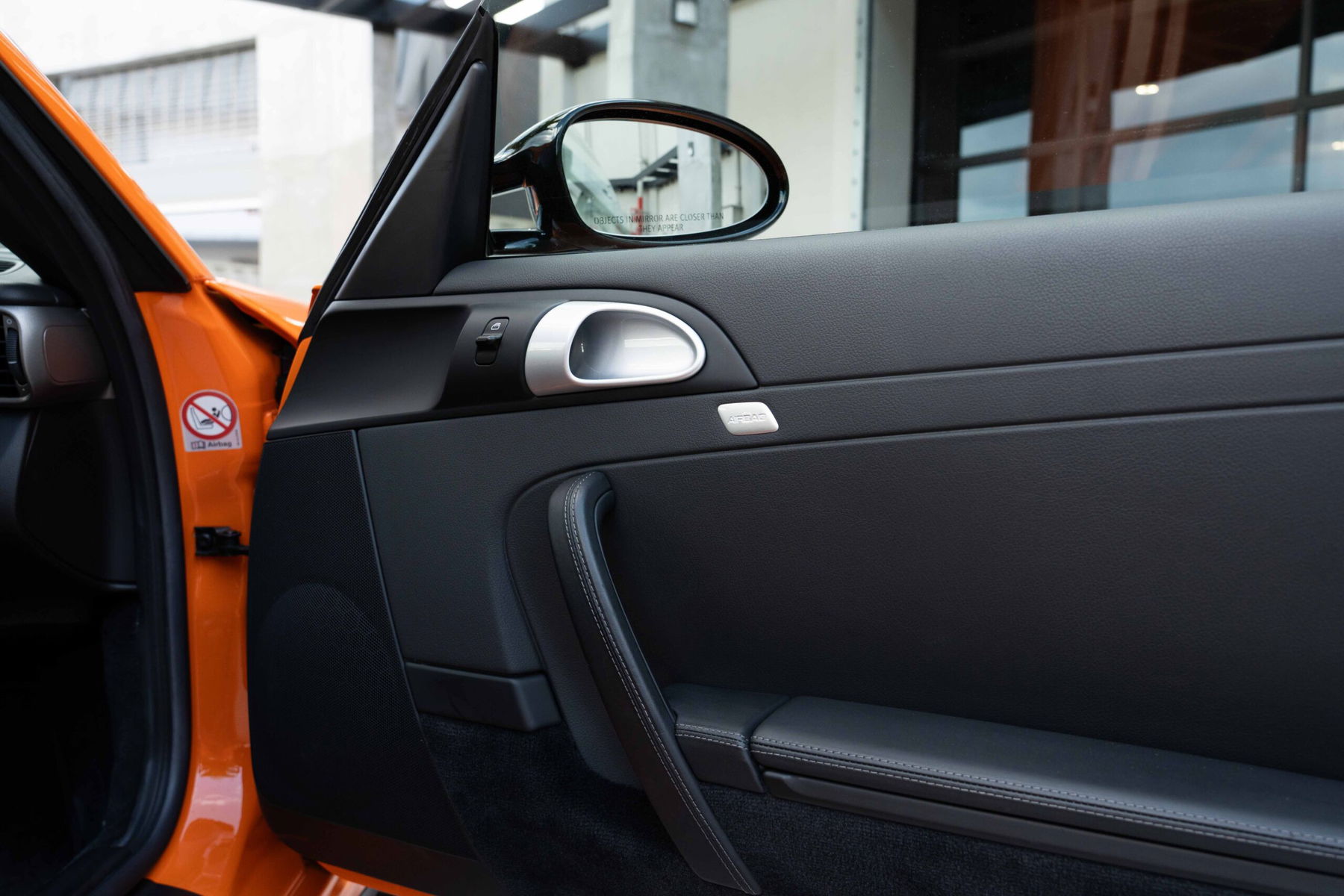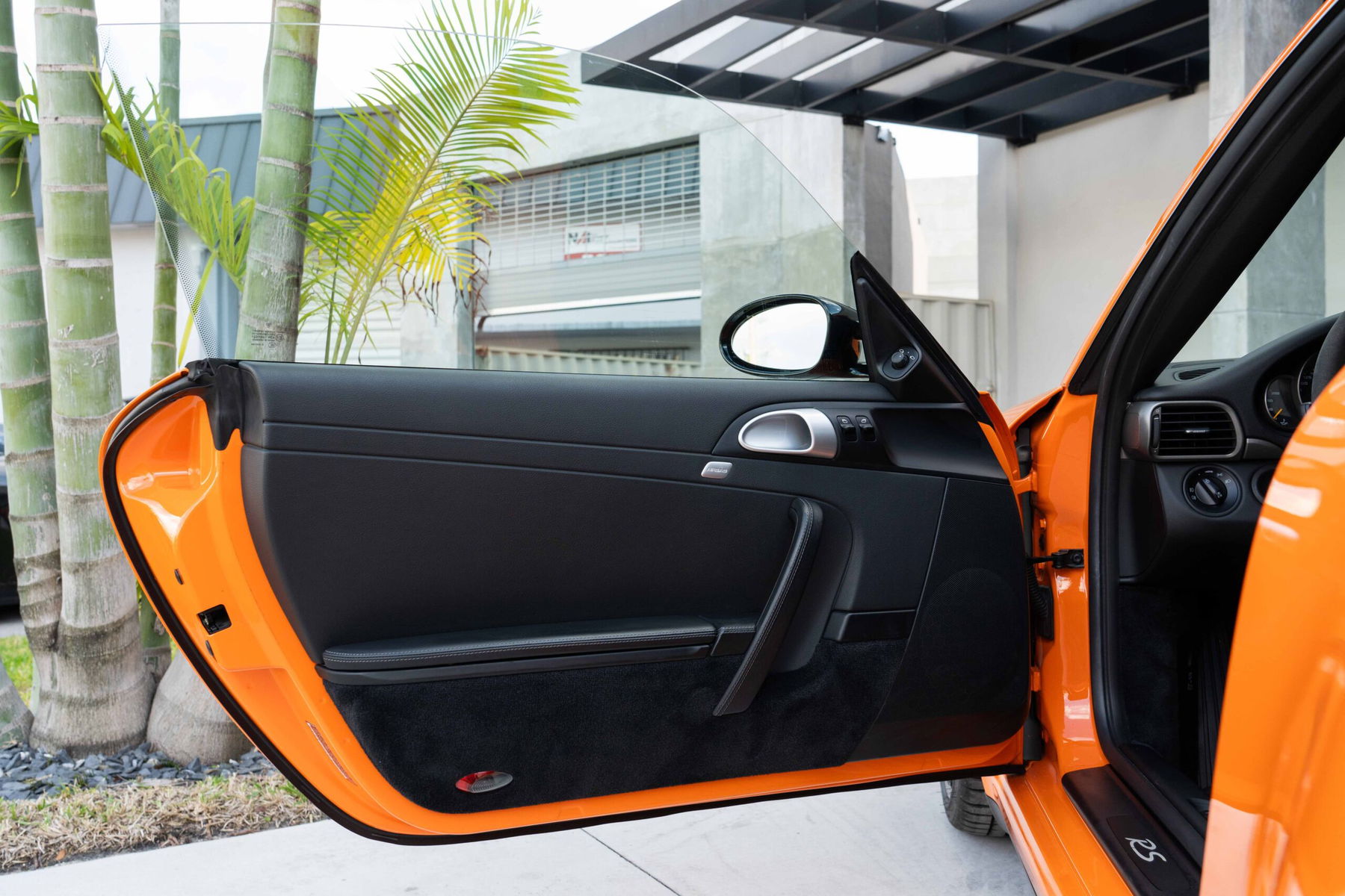 Finished in iconic Orange with black graphics over Black leather, this 997.1 GT3 RS shows just 9k miles and is equipped with sought-after options including Porsche Ceramic Composite Brakes (PCCB), Chrono Package, Bi-Xenon headlamps, and painted rear center console. Additonally, this RS has a paint-matched Orange roll bar.