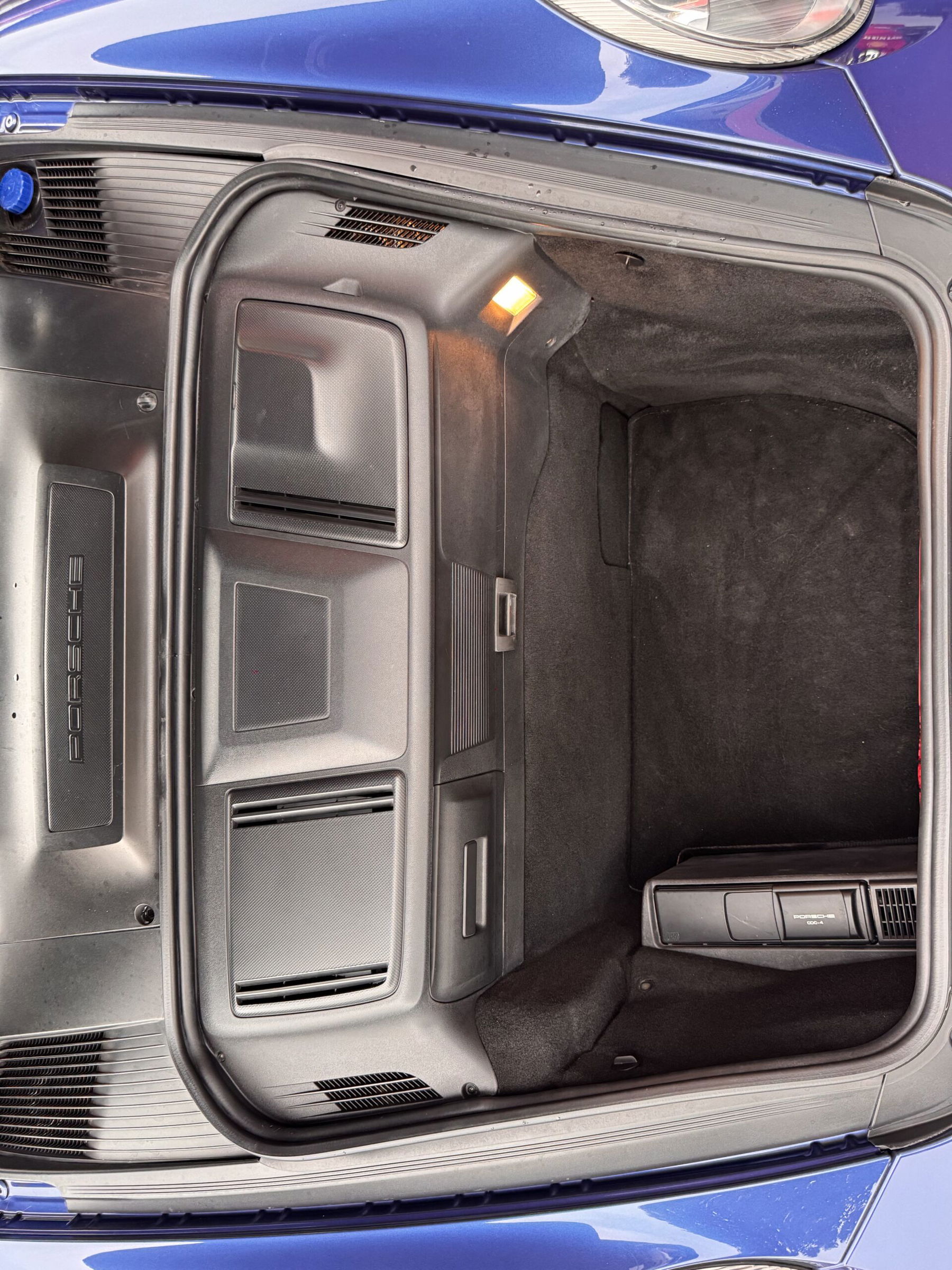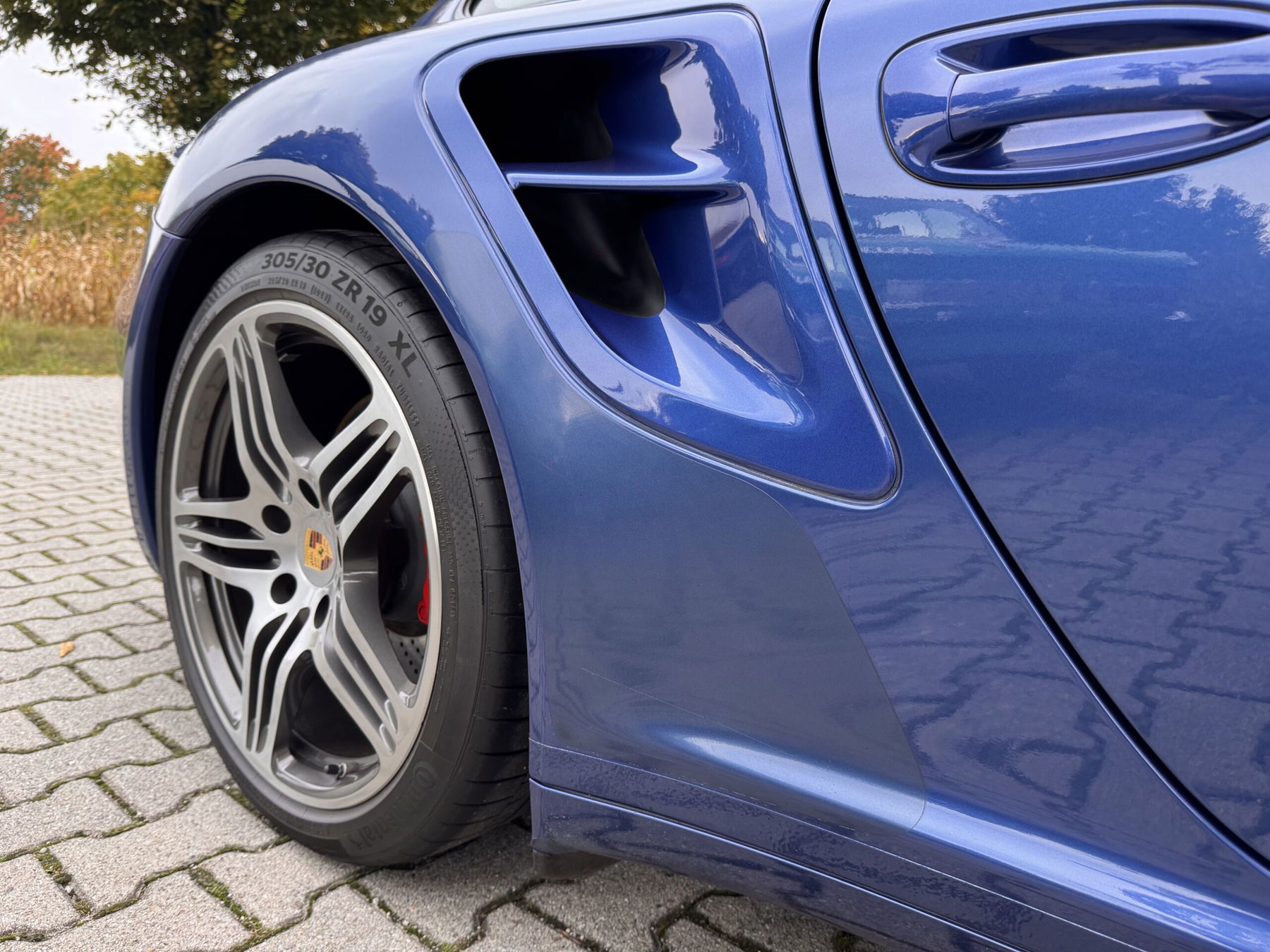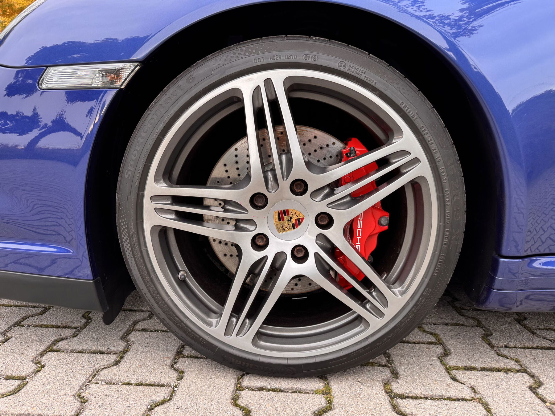 3. Brake light, driver/passenger airbag, exterior/interior mirrors with automatic dimming and rain sensor, bi-xenon headlights, on-board computer, reinforced brake system, heated rear window, interior features: Leather, standard leather color, interior filter: activated carbon filter (odor filter), Isofix mountings for child seat on front passenger seat, body: 2-door, automatic climate control, electric trunk and engine cover release, Porsche Side Impact Protection System (POSIP) head airbag system, adjustable steering column (steering wheel), Alloy wheels, metallic paint, 3.6 L engine – 353 kW turbo catalytic converter, rear fog light, Porsche Active Suspension Management (PASM), tire repair kit, tire pressure monitoring system, front side airbags, BOSE sound system, turbo, tinted windows