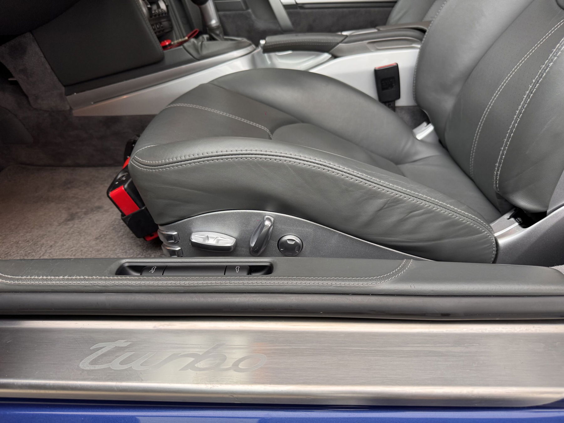 Leather interior light cover, adaptive sports seats, CD changer, leather headliner, door sill guards (stainless steel), driver assistance system: parking assistant, fire extinguisher, rear window wiper, interior package: Aluminum-look door panels, front headrests with Porsche crest, multifunction steering wheel (aluminum-look, 3-spoke), leather steering column trim, aluminum-look rear center console, passive receiver for telephone module (PCM), Porsche Communications Management (PCM) incl. DVD – Navigation module (extended), aluminum-look instrument cluster frame, shortened shift travel, sill covers/trim in vehicle color, leather interior sill trim, heated front seats, leather sun visors, Sport Chrono Package Turbo, telephone module for Porsche Communications Management (PCM)