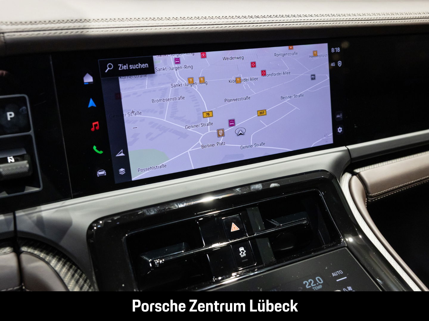 • Additional: (3FU) Panoramic roof system, (1D3) Electrically folding trailer coupling, (KQ2) PORSCHE lettering painted in black (high gloss), (0NC) Model designation painted in black (high gloss), (6FU) Exterior mirrors painted in exterior color, (0N5) Rear-axle steering, (8LU) Sport Chrono Package with Porsche Design subsecond clock, (1NX) Wheels painted in black (silk gloss), (BYE) Individual vehicle keys painted with case, (2PF) GT sports steering wheel with matt carbon steering wheel trim incl. steering wheel heating, (5KA) 4+1 seating, (4A4) Rear seat heating, (4D3) Front seat ventilation, (3J3) Porsche crest on headrests (in conjunction with comfort headrests in the rear), (7TS) Interior package in carbon matt with color accent in Neodyme, (3B9) ISOFIX attachment for child seat on front passenger seat, (ALV) Seat consoles in leather with colored decorative stitching – black, (QE1) Storage package, (ALE) Race-Tex headliner grab handles with colored stitching – black, (ATN) Door sill guards in carbon matt, illuminated (in conjunction with leather interior sill guards), (ATG) Leather interior sill guards with colored stitching – black, (JH2) Passenger display, (9VJ) Burmester® 3D high-end surround sound system, (9WU) Pre-equipment for Porsche Rear Seat Entertainment, (8JU) HD Matrix LED headlights, darkened, (VW6) Noise and heat insulation glazing including privacy glazing, (KS1) Head-up display, (9AH) 4-zone automatic climate control, (FT1) Remote ParkAssist, (2V3) Air quality system, (VC2) Garage door opener according to HomeLink® standard, (7Y8) Lane change assistant, (QK3) Porsche Dashcam pre-installation, (3Y2) Electric sunblind for rear seats, (9M9) Auxiliary heating, (P2C) Porsche InnoDrive incl. active lane guidance