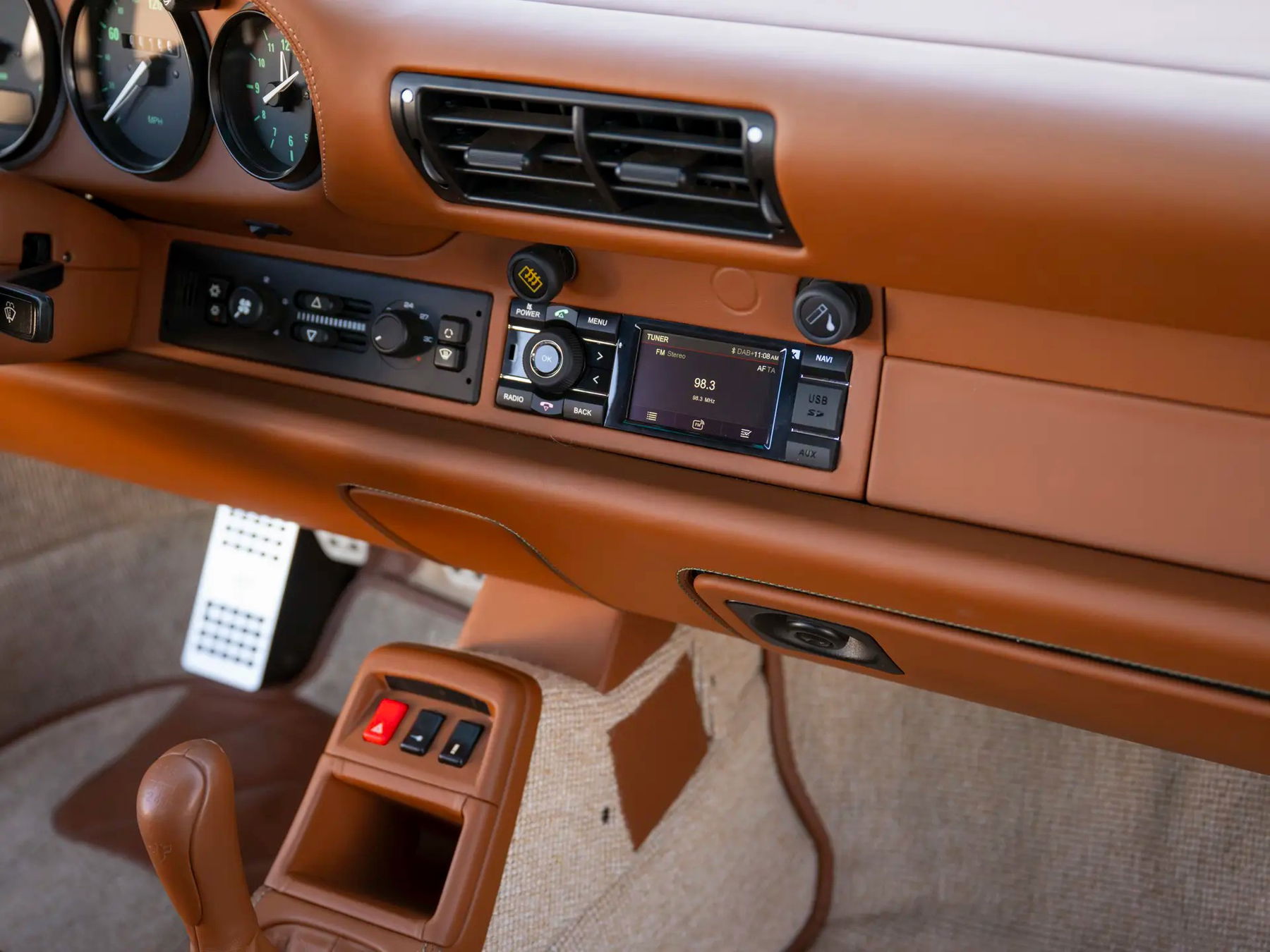 This W09-chassis 1994 RCT features even more radical enhancements developed since the original model was conceived, having been sent back to RUF in 2020 for a complete restoration and extensive upgrades, which included replacing the original steel body with full carbon-fiber widebody coachwork. The single-turbo 3.6-liter flat-six was rebuilt and upgraded to “Evo” spec, with enhanced cylinder heads featuring type 993-derived components, including VarioRam variable intake. The resulting 420 pounds-feet of torque at 4,500 rpm delivers a massive shunt of power off the line, also thanks in part to RUF’s proprietary six-speed gearbox, which, along with the 425 horsepower on tap and honed aerodynamics enable a 200-mph top speed—well beyond what the type 964 platform achieved in standard-production form.