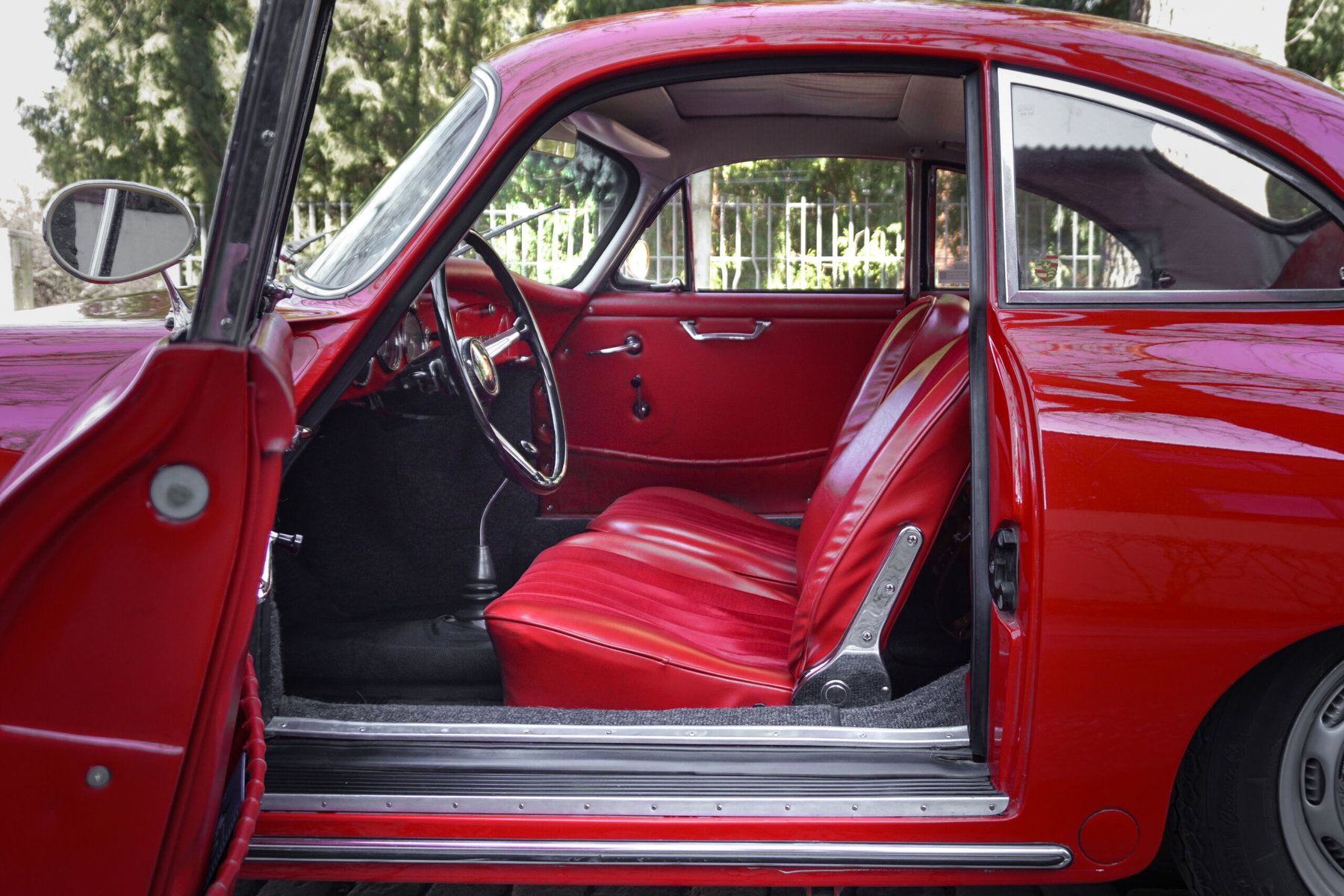 Notre voiture a vu le jour en Suède et a été importée en Finlande en 2016. Immatriculée comme voiture de collection en Finlande, elle ne nécessite un contrôle technique que tous les quatre ans. La voiture a fait l'objet d'une restauration majeure en Suède et est en excellent état. La combinaison de couleurs rouge signal/rouge bordeaux est parfaite pour les lignes arrondies de la carrosserie T5. Dotée de la carrosserie T5 (qui a fait ses débuts au Salon de Francfort de 1959), la voiture conserve toujours les vitres avant et arrière plus petites, la calandre arrière monobloc et le capot avant magnifiquement incurvé avec le bouchon de réservoir à l'intérieur du coffre avant. Des prises d'air ont été ajoutées à la carrosserie T5 sous le pare-chocs avant. La voiture est accompagnée d'une fiche de construction Reutter qui détaille les informations relatives à la fabrication de la carrosserie. Une caractéristique unique de notre voiture est le toit ouvrant, qui ajoute au plaisir de conduite. Seuls environ 250 exemplaires sont sortis d'usine avec cette option, ce qui en fait un classique rare.