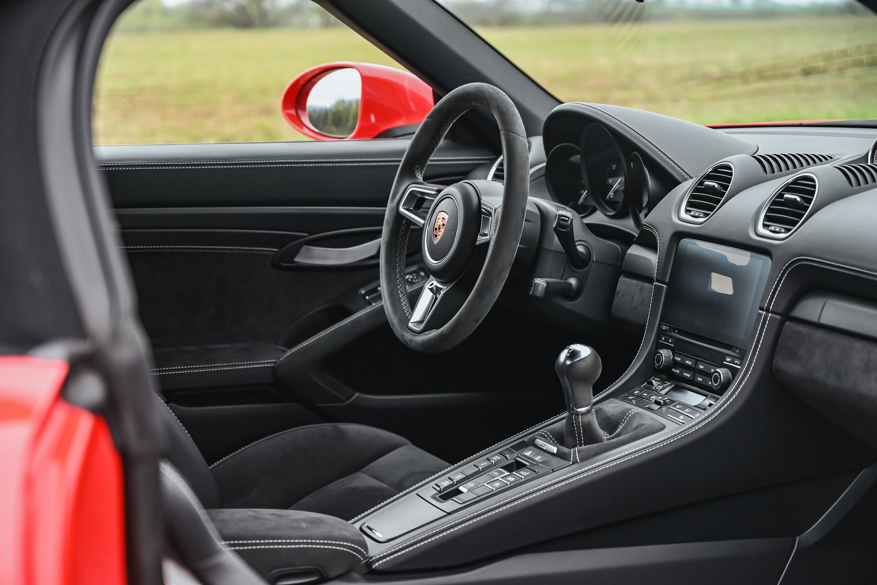 Airbags conducteur/passager, type de transmission : propulsion, instruments de bord à fond noir, rétroviseur extérieur asphérique (côté gauche), rétroviseurs extérieurs réglables électriquement et chauffants (les deux), phares bi-xénon, clignotants à LED, étriers de frein peints en rouge, dispositif antivol pour roues (antivol de jantes), compte-tours, allumage automatique des feux de route, porte-gobelets, aileron arrière, feux arrière à LED, teintés, équipement intérieur : cuir Alcantara, pack intérieur laqué, carrosserie : 2 portes, système d'airbags de tête Porsche Side Impact Protection System (POSIP), réservoir de carburant : 64 l, volant (GT Sport – Alcantara / Race-Tex), colonne de direction (volant) réglable, jantes en alliage, grille d'entrée d'air latérale peinte, console centrale, cache avant peint, moteur 4,0 l – 309 kW CAT, filtre à particules essence (OPF), frein de stationnement électrique, pédalier et repose-pieds au look sport, Porsche Car Connect, Porsche Communications Management (PCM), Porsche Torque Vectoring (PTV), kit de réparation des pneus, système de contrôle de la pression des pneus, faibles émissions selon la norme Euro 6d-TEMP, Pommeau de levier de vitesses en Alcantara / Race-Tex, inscription Porsche + désignation du modèle peinte, revêtement / rembourrage des sièges : cuir / Alcantara, système d'échappement sport, pack Sport Chrono, châssis sport (PASM) à commande électronique, sièges sport – dossiers peints, sièges sport Plus (réglables électriquement, 2 directions), système Start/Stop, peinture unie, commande de capote manuelle, vitres teintées, déflecteur, sièges avant chauffants