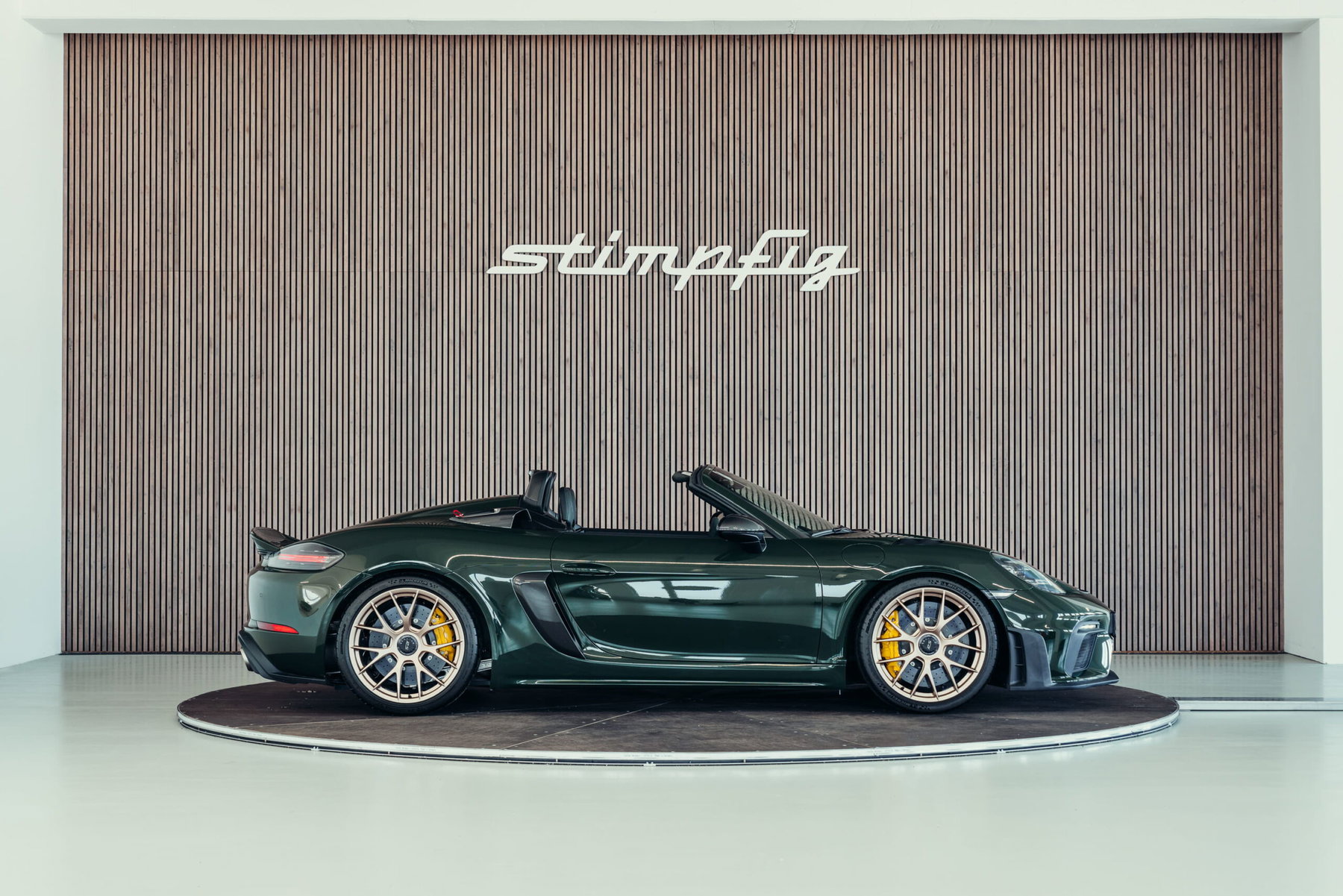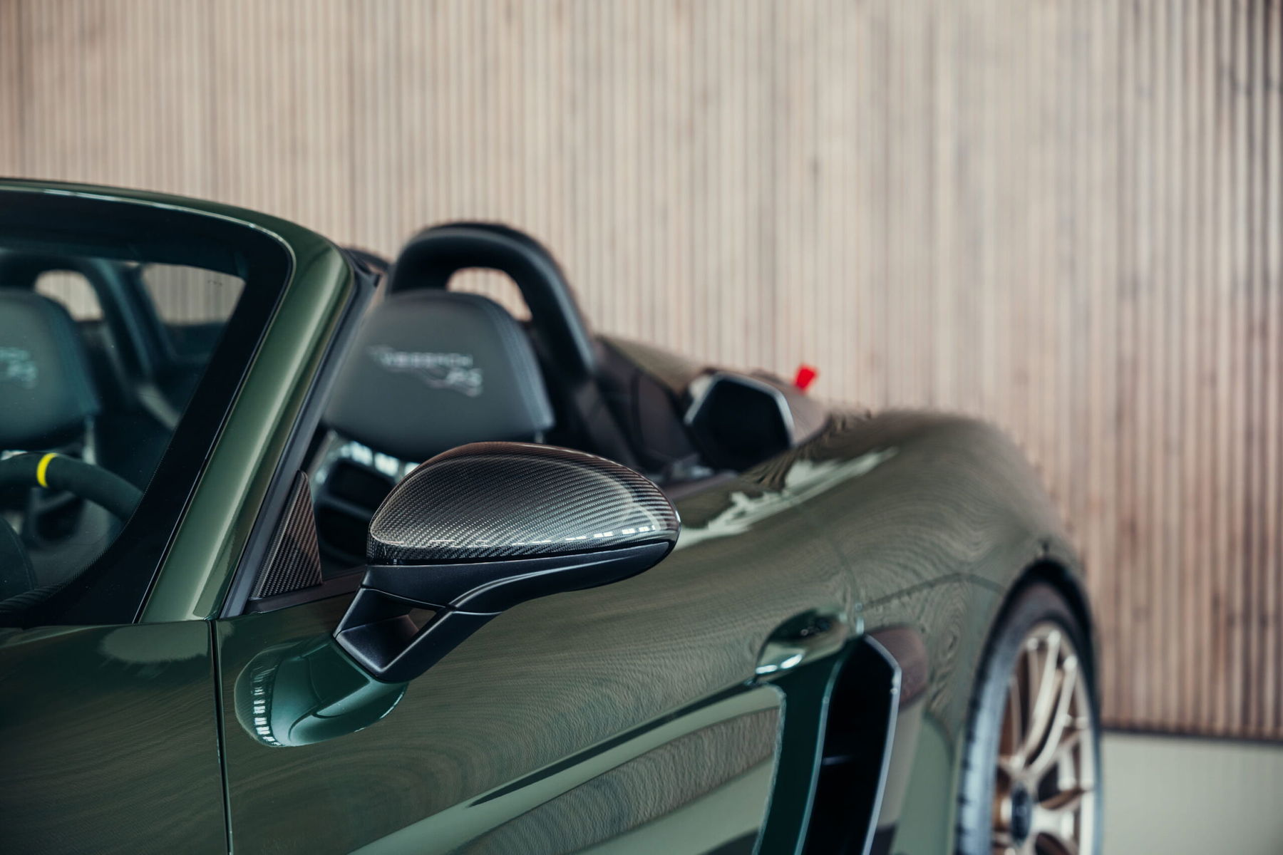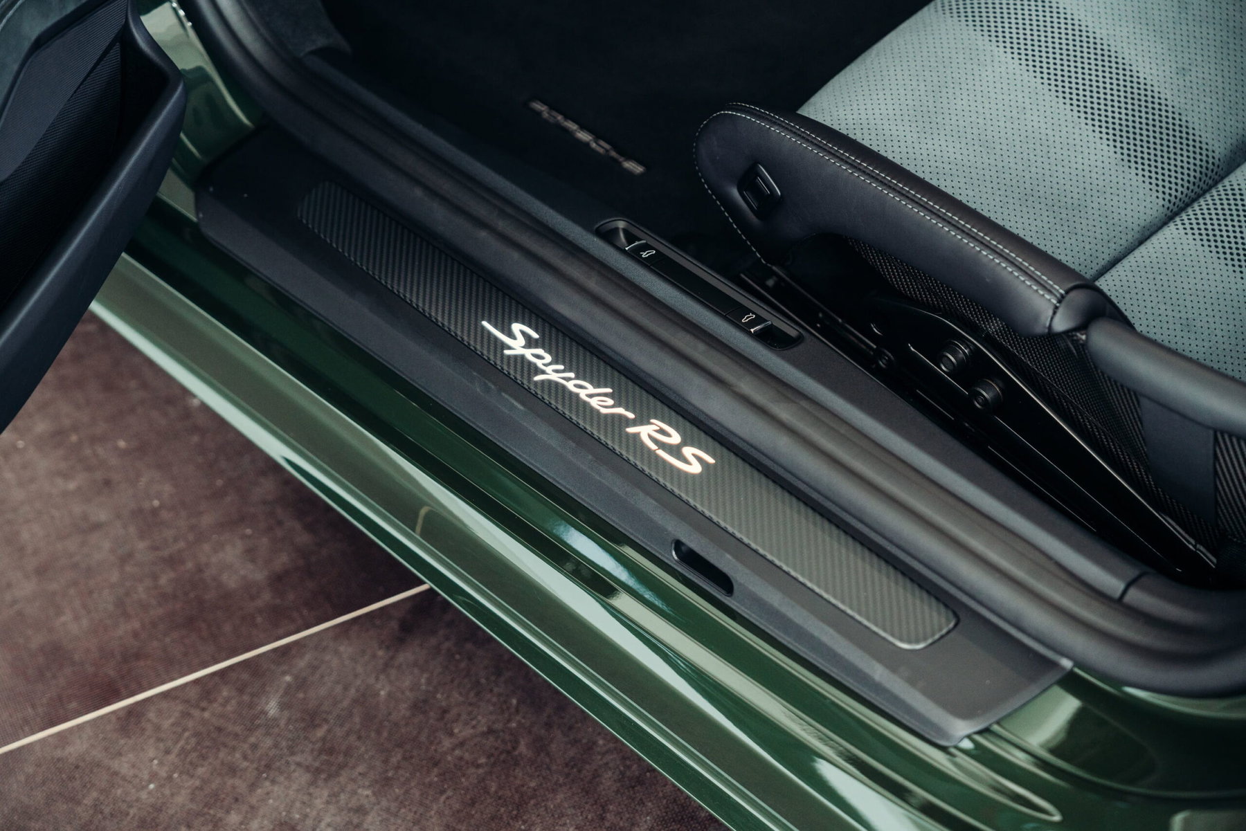 À vendre : une Porsche 718 Boxster Spyder RS très bien entretenue, dans la magnifique couleur spéciale PTS « vert Underberg » avec le pack Weissach. Le véhicule dispose d'un équipement très complet et de grande qualité, est immatriculé et ne fait pas l'objet d'une TVA détectable.
