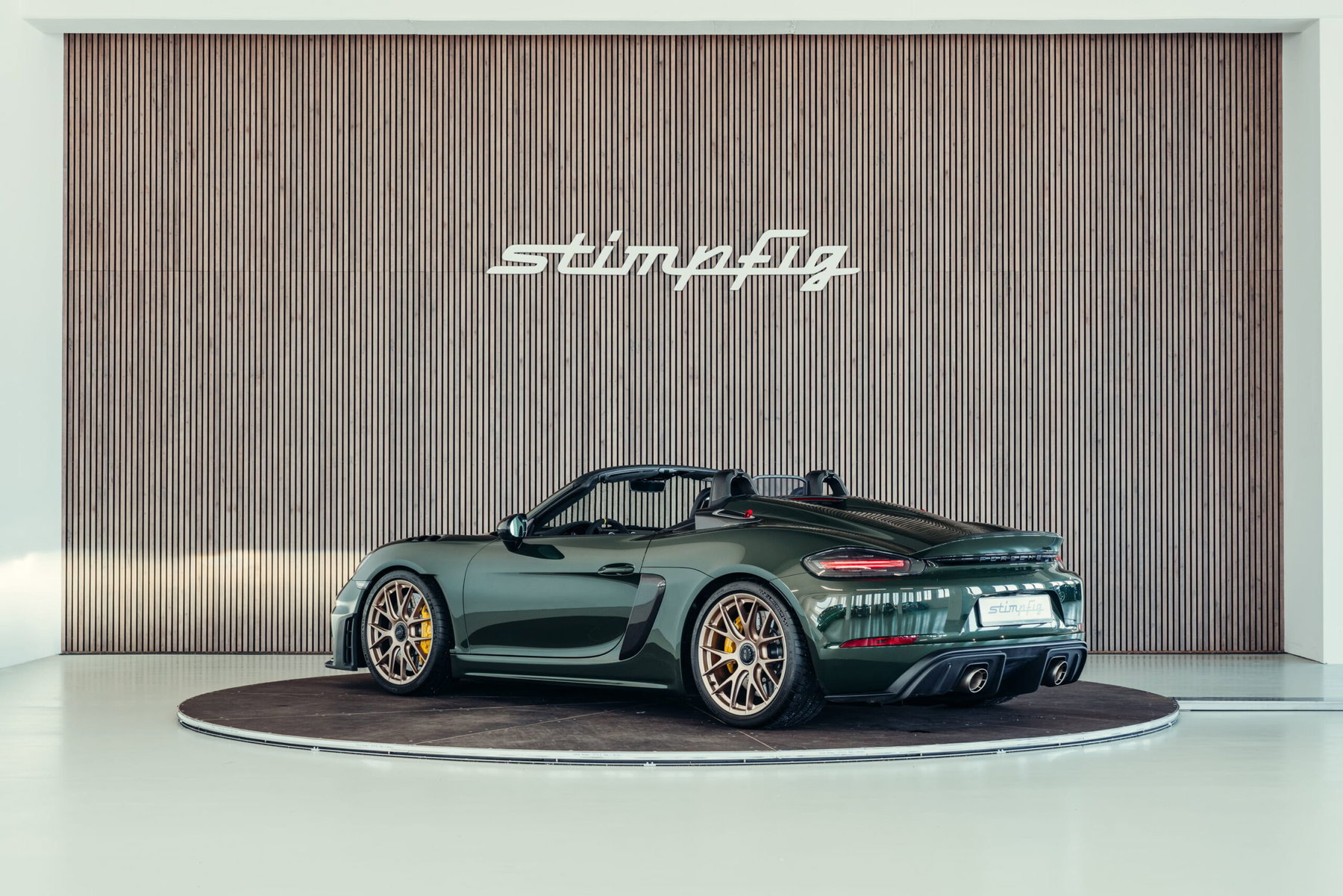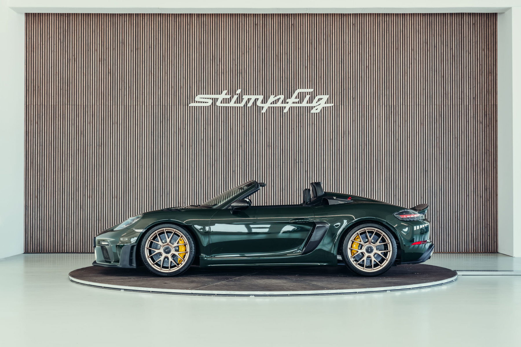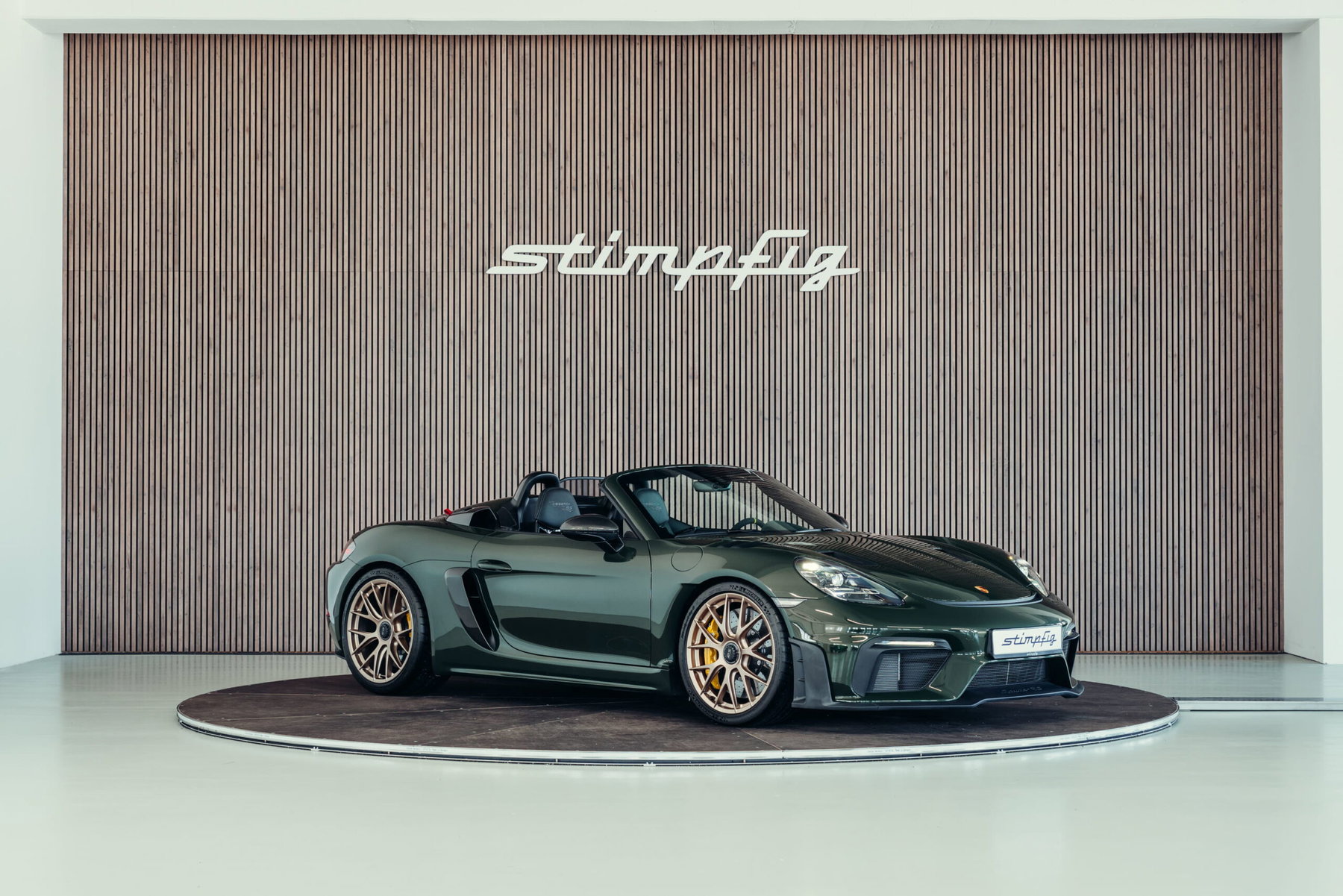 À vendre : une Porsche 718 Boxster Spyder RS très bien entretenue, dans la magnifique couleur spéciale PTS « vert Underberg » avec le pack Weissach. Le véhicule dispose d'un équipement très complet et de grande qualité, est immatriculé et ne fait pas l'objet d'une TVA détectable.