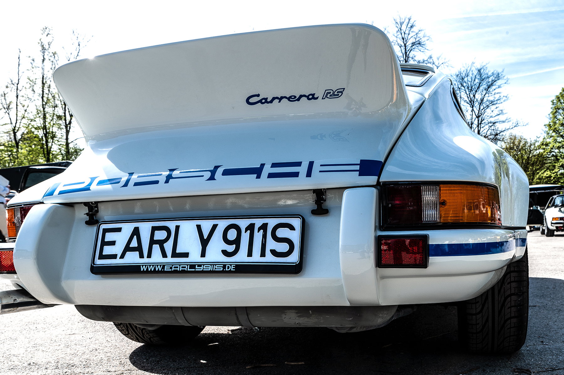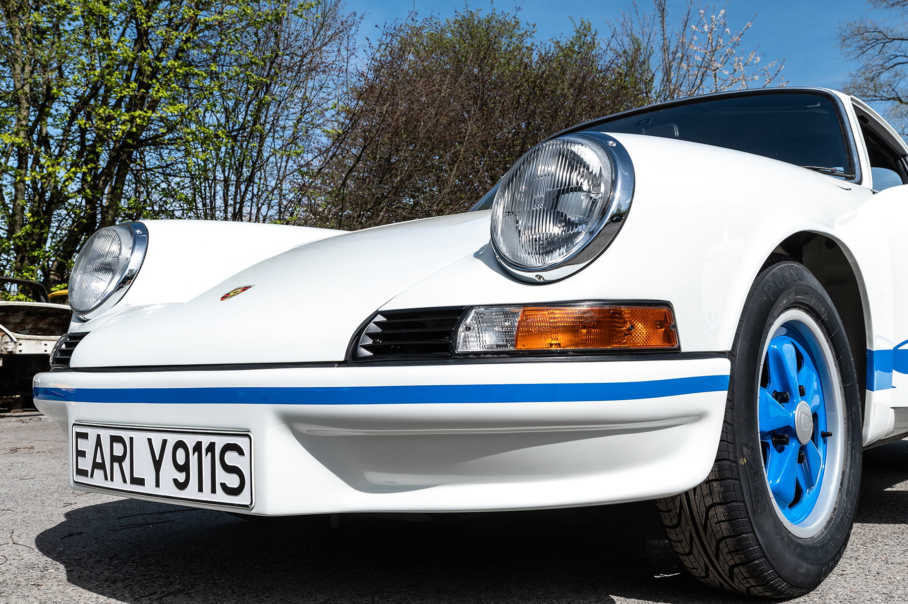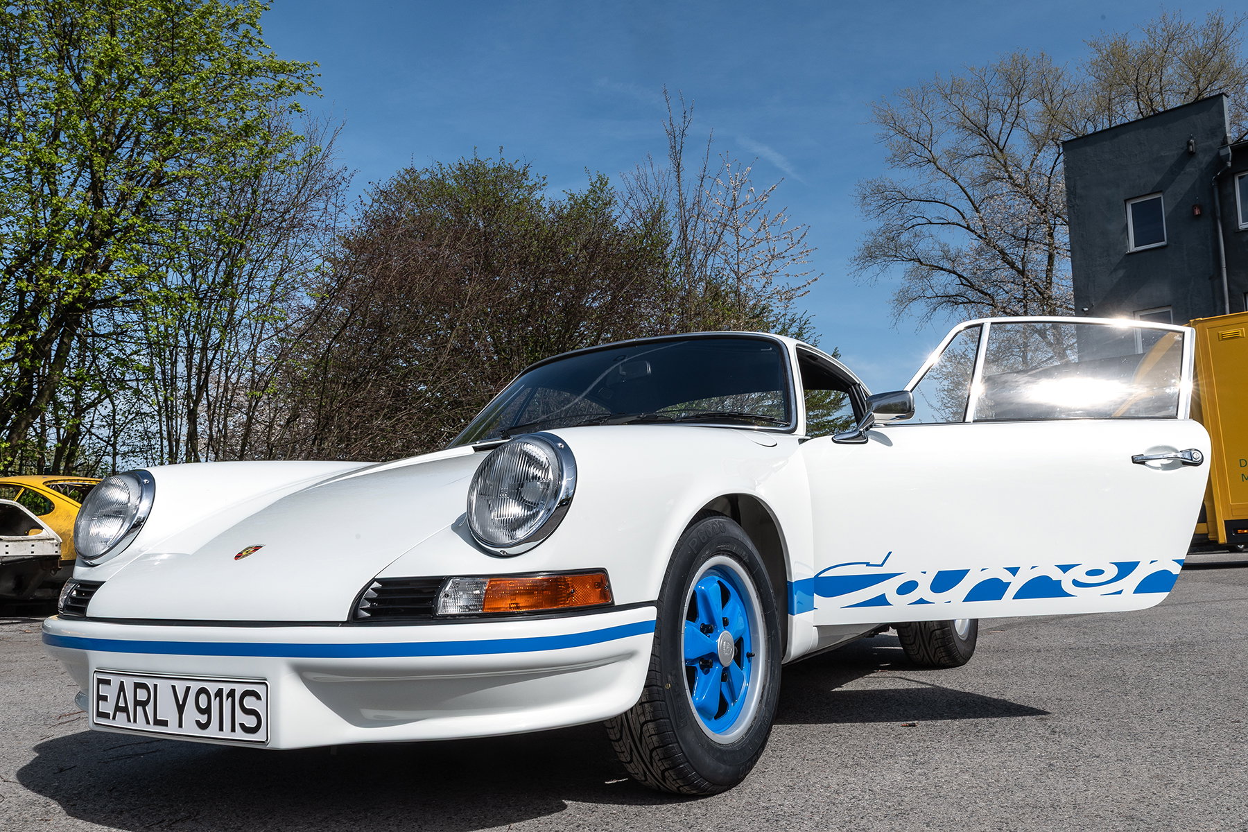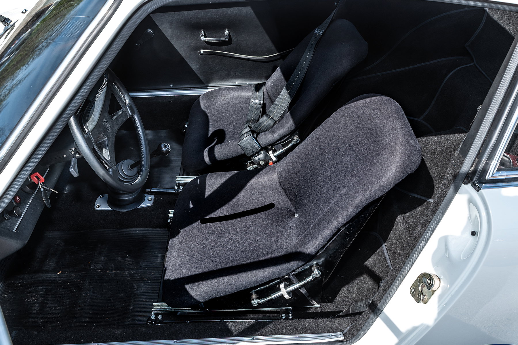 Cette Porsche 911 2,7 Carrera RS Leichtbau, de couleur blanc Grand Prix et équipée de sièges sport noirs, a été entièrement restaurée dans le respect de l'original.