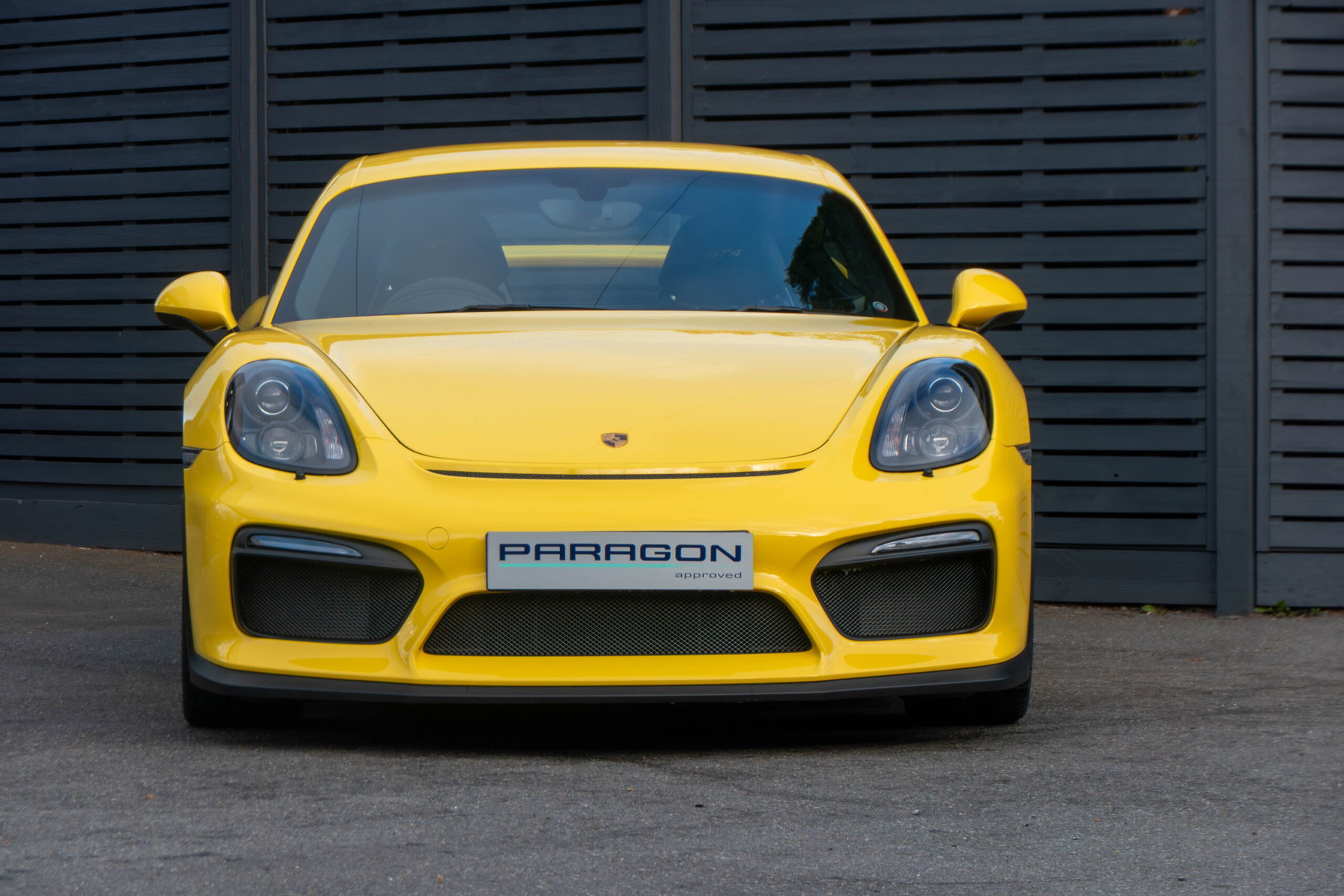Porsche Cayman GT4 (981) boîte manuelle à 6 rapports, couleur Racing Yellow, sièges baquets 918 en demi-cuir noir, climatisation, échappement sport commutable, phares automatiques, navigation par satellite avec écran tactile, gestion active de la suspension Porsche, contrôle électronique de stabilité et de traction, ordinateur de bord, feux de jour à LED, pack intérieur carbone.