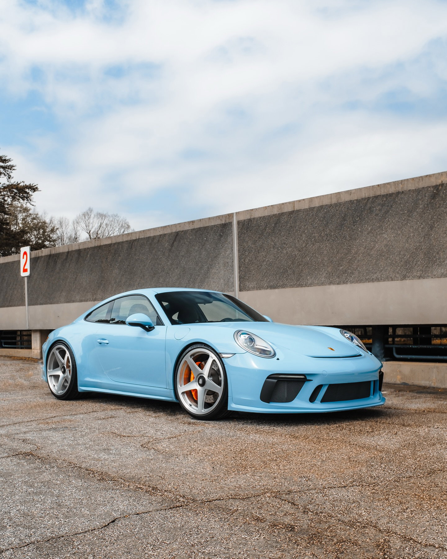Nouvelle arrivée !! Un seul propriétaire ! 911 GT3 Touring 991 ultra rare, boîte manuelle 6 vitesses, couleur Gulf Blue, avec intérieur « Special Wishes » de CCX ! Aucun dépassement de régime à aucun régime et documentation complète depuis la sortie d'usine ! Protection PPF sur toute la carrosserie ! Kilométrage extrêmement faible ! Intérieur « Special Wishes » avec inserts à carreaux Gulf Blue et orange par P1 Designs et accents Gulf Blue partout. Les améliorations après-vente comprennent : collecteurs GMG avec catalyseurs sport et suppression du silencieux central à soupapes MBRP ! Équipée d'un système audio surround Bose, d'une boîte manuelle GT Sport à 6 rapports, du pack Touring, d'un rehausseur d'essieu avant, d'étriers peints en orange Gulf et bien plus encore ! Livrée avec les livrets, les manuels, un classeur contenant les carnets d'entretien et l'autocollant de vitre d'origine !
