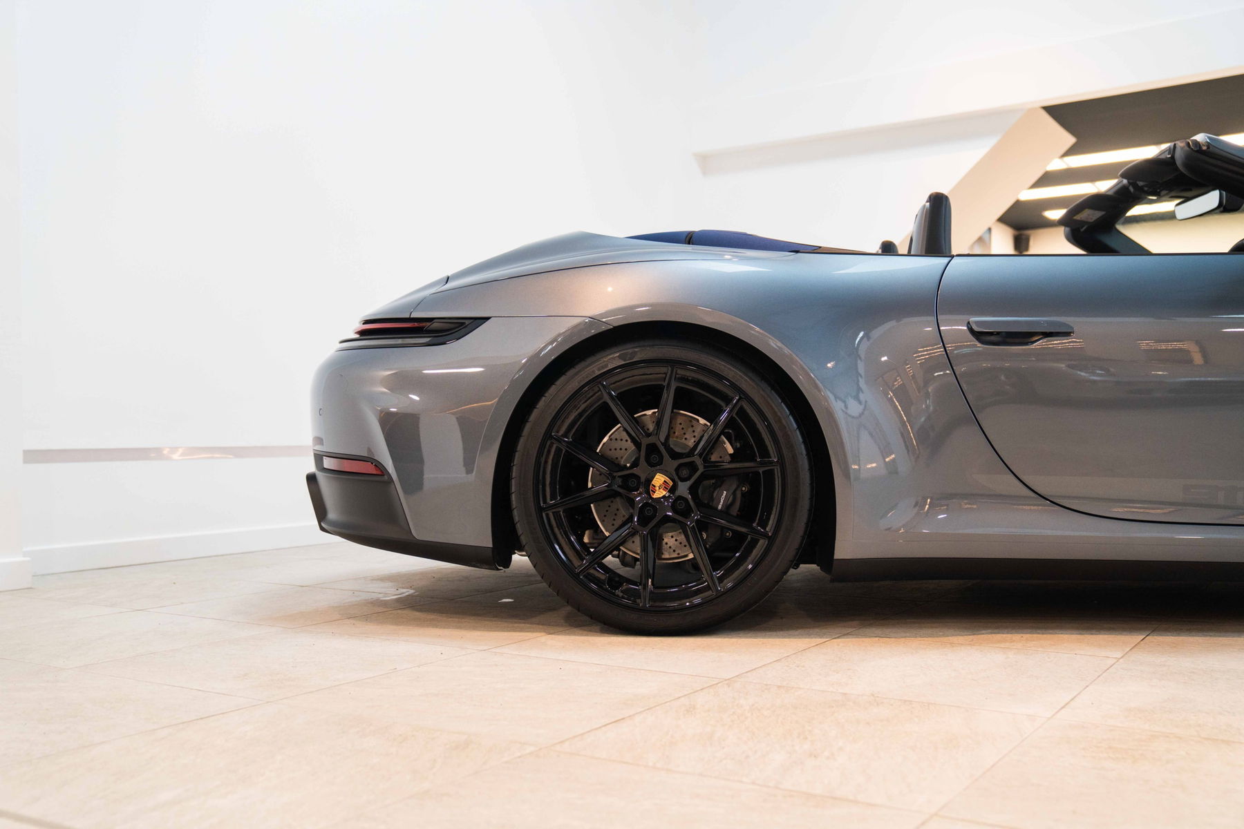Gris vanadium métallisé, capote bleue, sièges sport Carrera T en Sporttex, réglage adaptatif 18 directions avec fonction mémoire conducteur et chauffage, phares HD Matrix Beam, BOSE, aide au stationnement avec vue panoramique, éclairage d'accueil LED « 911 », Jantes peintes en noir brillant, Direction assistée plus, Bouchon de réservoir de carburant au design exclusif, Logo latéral « 911 Carrera T » en gris vanadium, Capot moteur peint en gris titane, Direction de l'essieu arrière, Tubes d'échappement sport en noir, Volant sport GT chauffant, Sièges arrière, Aide au changement de voie, Rétroviseurs rabattables électriquement, Jantes Carrera S 20/21 pouces et pack design lumineux.