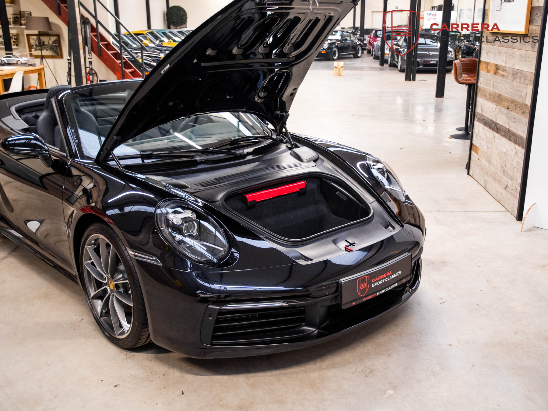 Porsche 911 Carrera Cabriolet (992.1) 2024, livrée en Belgique, dans sa peinture d'origine et sans accident, présentée dans un état comme neuf. Cet exemplaire combine des spécifications intemporelles et sportives avec les options d'usine appropriées, notamment des sorties d'échappement sport noires, des écussons Porsche, le pack Sport Chrono, le système audio Bose® et des jantes Carrera Classic.