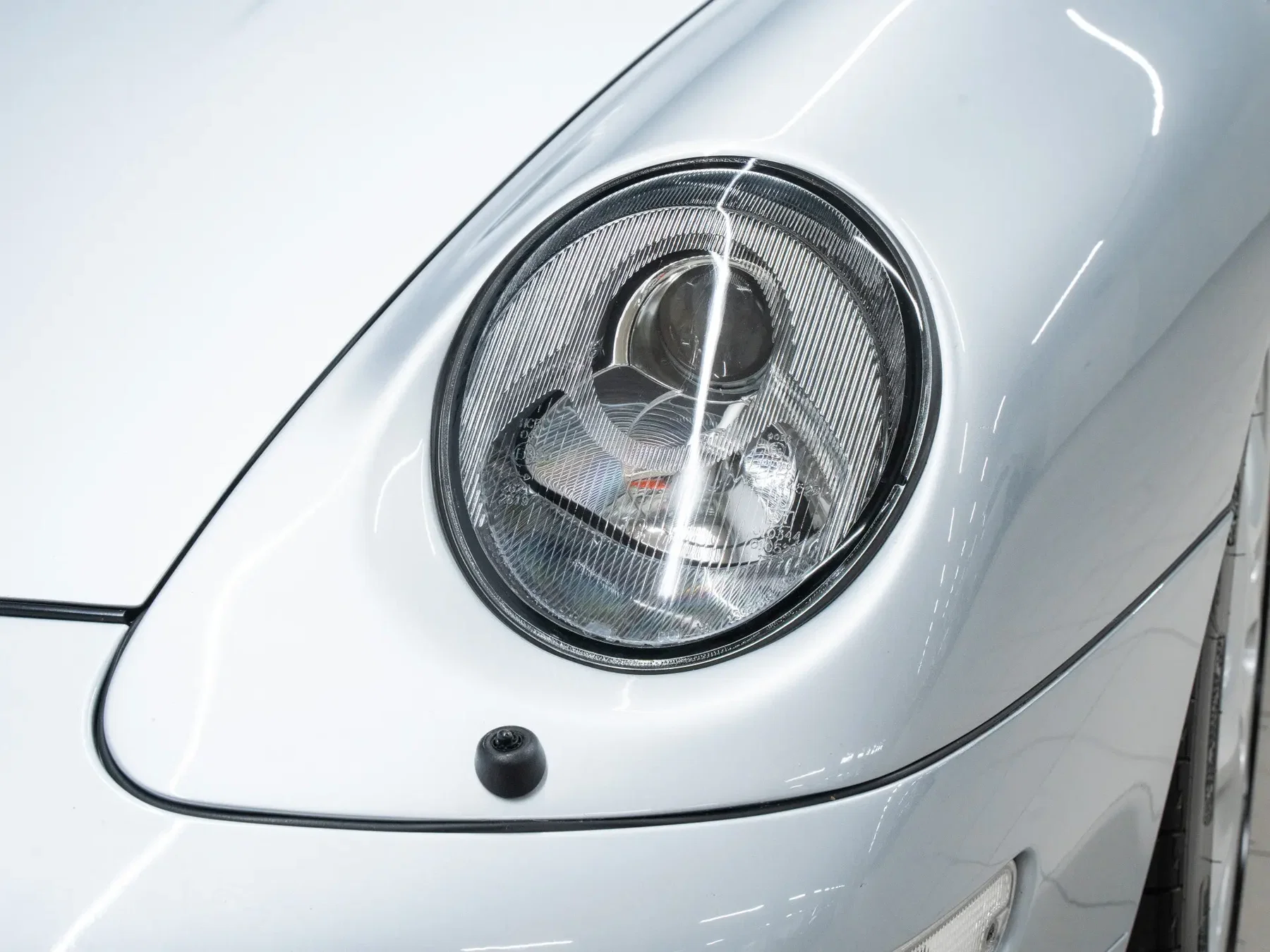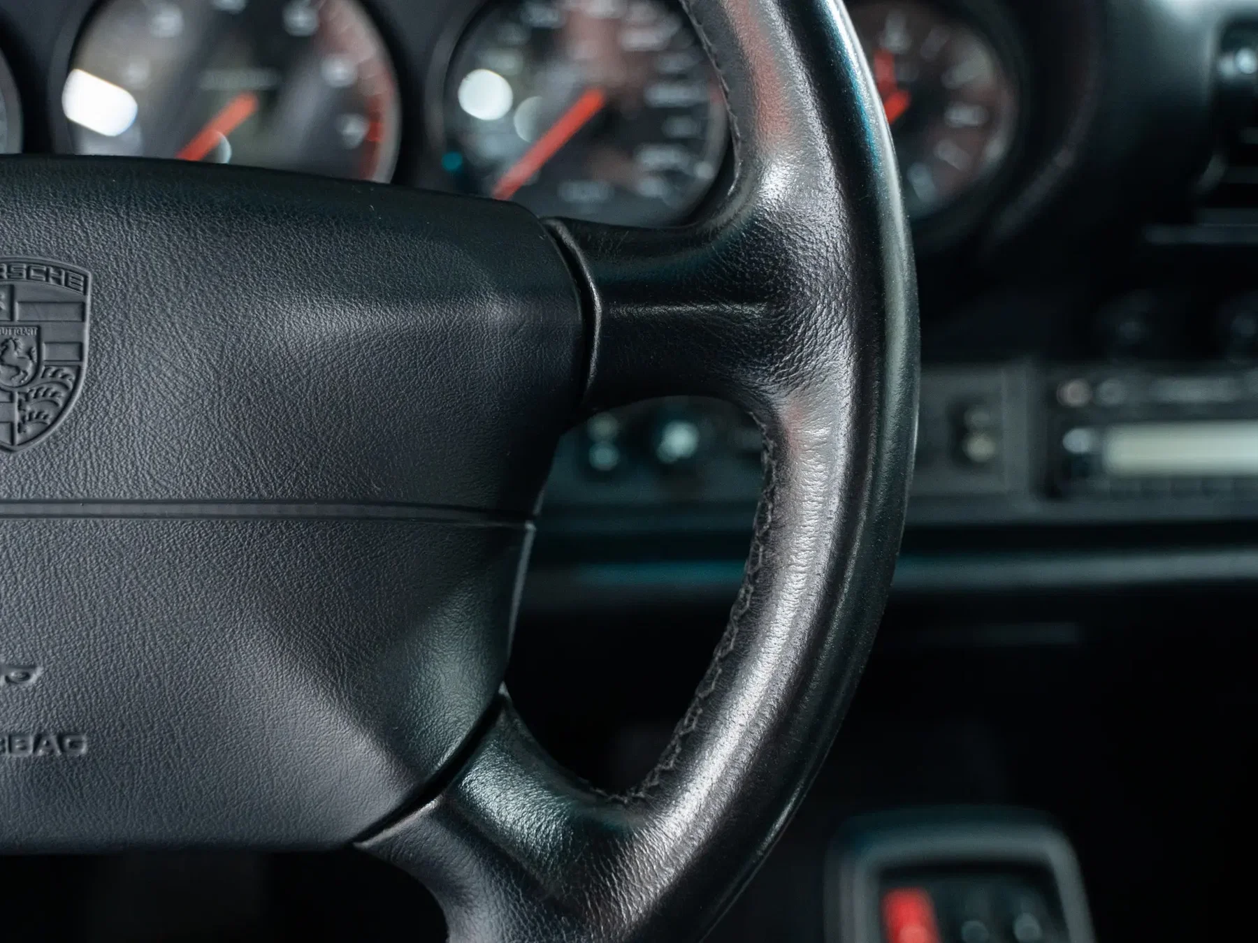 Cet exemplaire est présenté en Polar Silver avec un intérieur en cuir noir. Une combinaison qui correspond parfaitement au caractère de la 993 Turbo : intemporelle, sobre et tout simplement bien équilibrée. Le Polar Silver met magnifiquement en valeur les lignes et l'arrière large sans être tape-à-l'œil, tandis que le cuir noir confère à l'intérieur une élégance sobre et discrète. Pas de chichis, pas de fioritures, exactement comme il se doit.