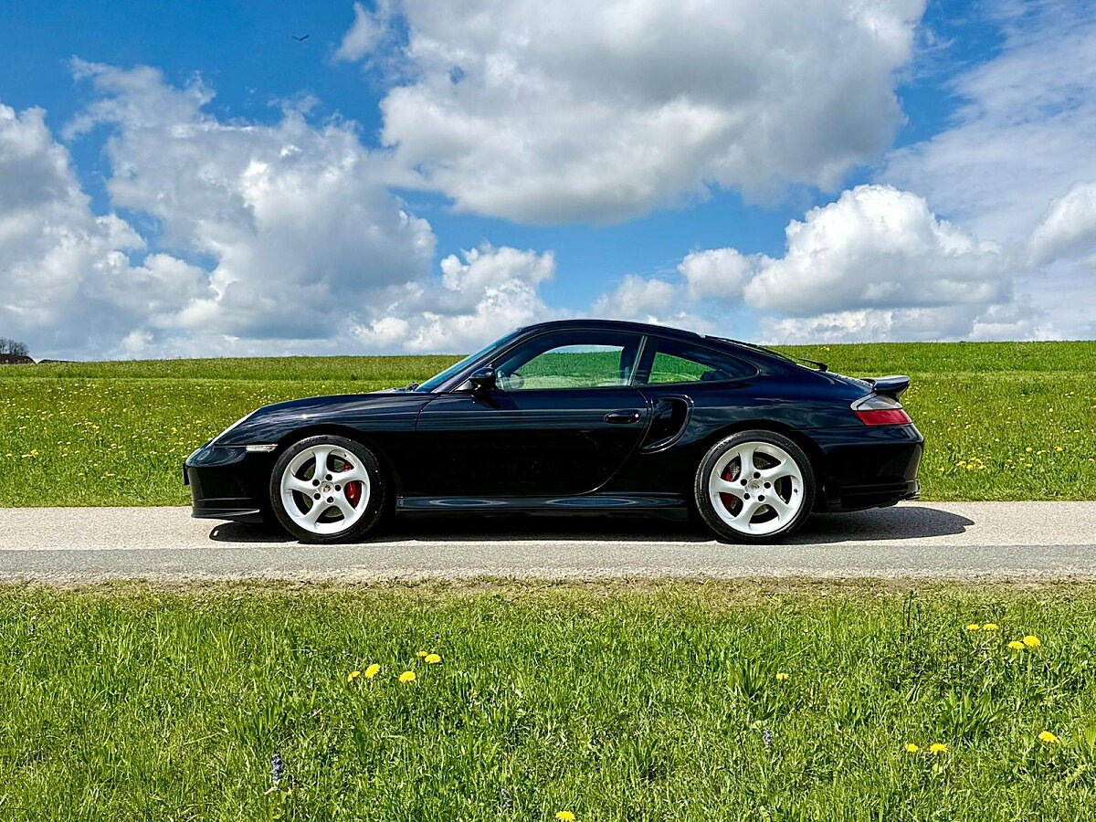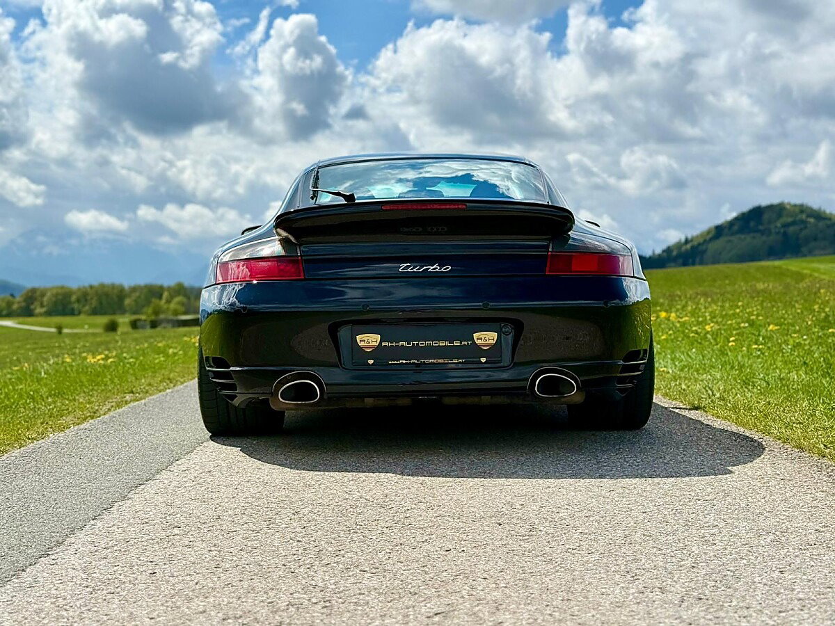 À vendre : une Porsche 996 Turbo Coupé en noir basalte métallisé / cuir noir. La voiture est en très bon état.