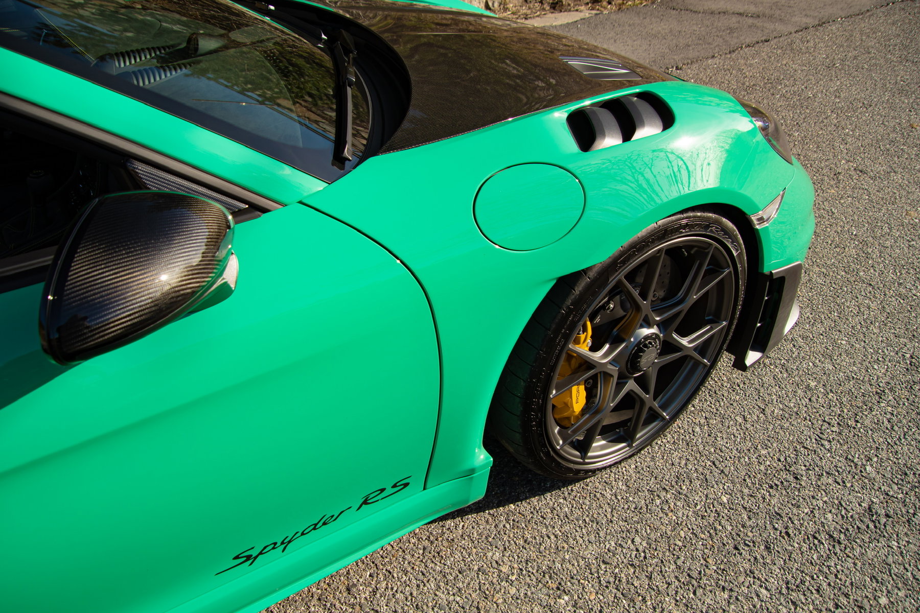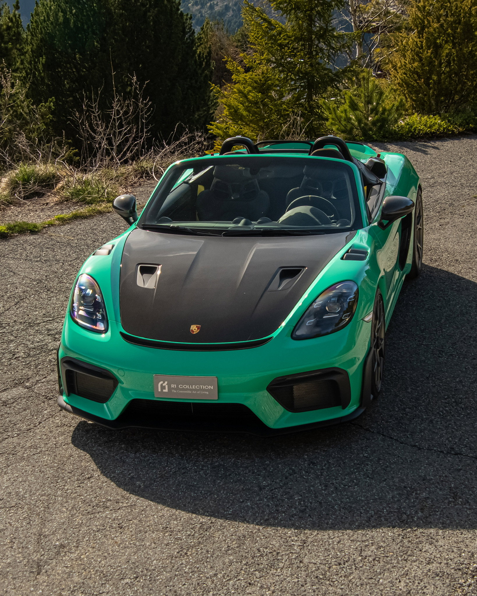 One of One! PTS „Lighter Green“ · Pacchetto Weissach · PCCB · Allestimento completo Porsche Exclusive Manufaktur. La 718 Spyder RS più accessoriata esistente. Impossibile da replicare.