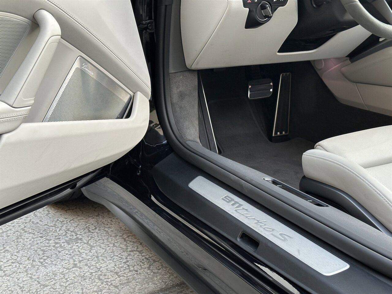 Configurata come una vera auto da guidatore, questa Turbo S è stata ordinata con un intento preciso. La denominazione del modello è stata eliminata sia nella parte anteriore che in quella posteriore, lasciando che sia il design a parlare da solo. Pulita, sobria e inconfondibilmente Porsche. Il tetto nero della cabriolet si abbina alla profonda finitura metallizzata, creando un effetto monocromatico che appare al tempo stesso moderno e senza tempo. Per preservare tale finitura, l’intero esterno è protetto con una pellicola protettiva XPEL a copertura totale, che garantisce che la vernice rimanga in condizioni eccezionali mantenendo la sua lucentezza profonda.