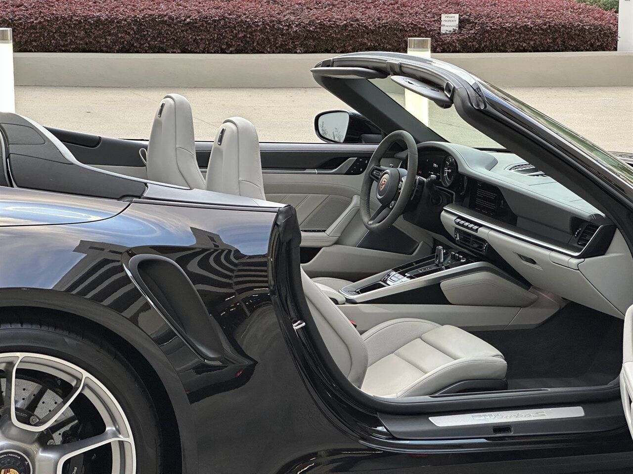 La Porsche 911 Turbo S Cabriolet del 2024 rappresenta l'apice delle prestazioni in versione cabriolet, combinando l'inesauribile potenza del doppio turbocompressore con l'inconfondibile precisione Porsche e la praticità nell'uso quotidiano. Rifinita in Jet Black Metallic con eleganti interni in pelle Slate Gray e Chalk, questa vettura è una configurazione accuratamente studiata e altamente raffinata che bilancia l'aggressività con una sofisticatezza sobria.