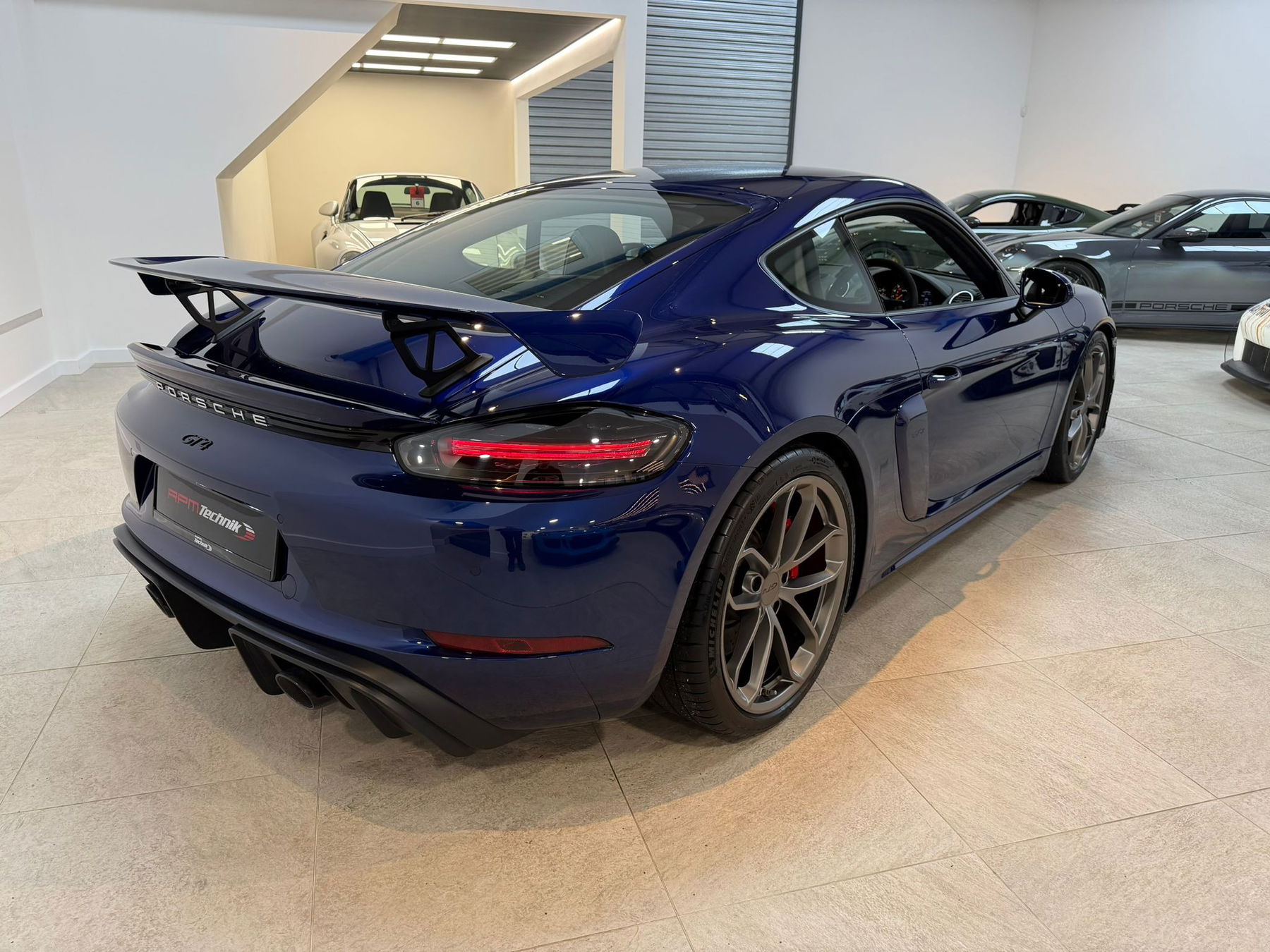 Nu één GT4 ons verlaat, zijn we verheugd om een andere te mogen verwelkomen in onze showroom, dit keer in de prachtige kleur Gentian Blue metallic. Deze GT4 werd op 28 november 2020 geleverd aan Porsche en is uitsluitend onderhouden door Porsche-hoofddealers. De volgende onderhoudsbeurt staat gepland in december 2026 (dit zal een kleine onderhoudsbeurt zijn). Bij de GT4 die te koop staat, hoort onze eigen RPM Technik-garantie, wat betekent dat hij onze strenge 5 uur durende verkoopinspectie heeft doorstaan (iets wat alleen de beste auto's doen). Deze GT4 verkeert in uitstekende staat en is duidelijk gekoesterd door zijn vorige eigenaren. Hij staat nu in onze showroom en is klaar om van te genieten. Neem voor meer informatie contact op met een medewerker van ons verkoopteam.
