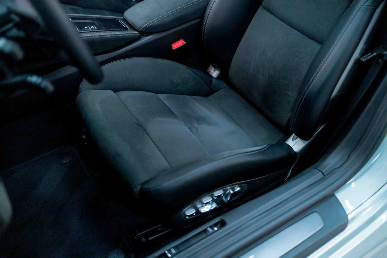 De buitenkant is afgewerkt in pts fish silver en het interieur is uitgevoerd in zwart leer en alcantara met contrasterende stiksels.
