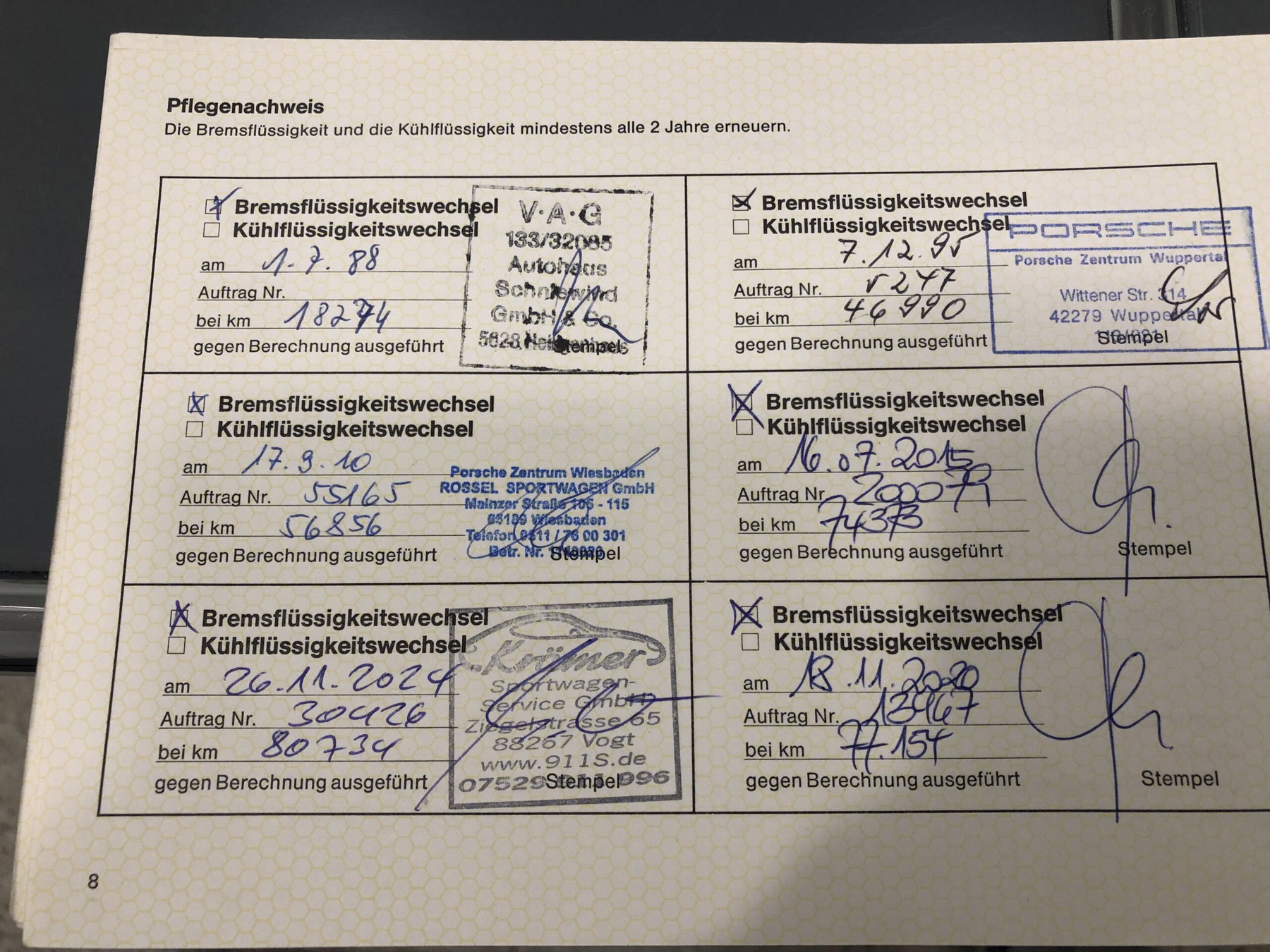 Aan de hand van het originele onderhoudsboekje (11 vermeldingen!) is de kilometerstand correct te traceren; de laatste grote onderhoudsbeurt (€ 4.300 bij een zeer gerenommeerde Porsche-werkplaats) vond eind 2024 plaats bij 80.734 km, waarbij onder andere de remklauwen voor, remblokken en alle remleidingen werden vervangen.