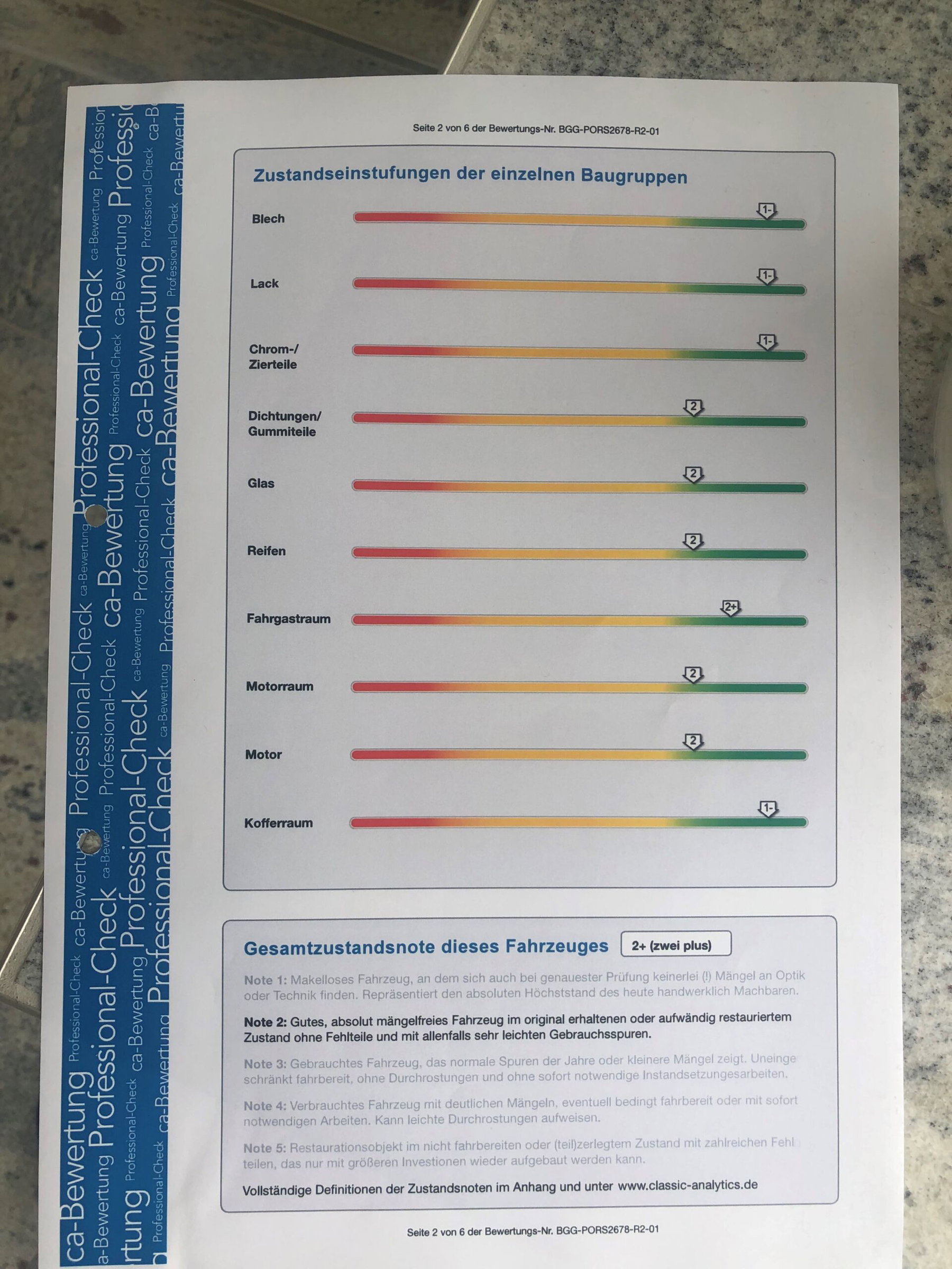 Al met al een prachtige Targa, met correct gedocumenteerde geschiedenis, lage kilometerstand, ongevalvrij en met onderhoudsboekje, met complete boordmap, complete sleutelset, alle originele stickers, eerste kentekenbewijs, H-kenteken en twee oldtimer-taxatierapporten met cijfer 2+.