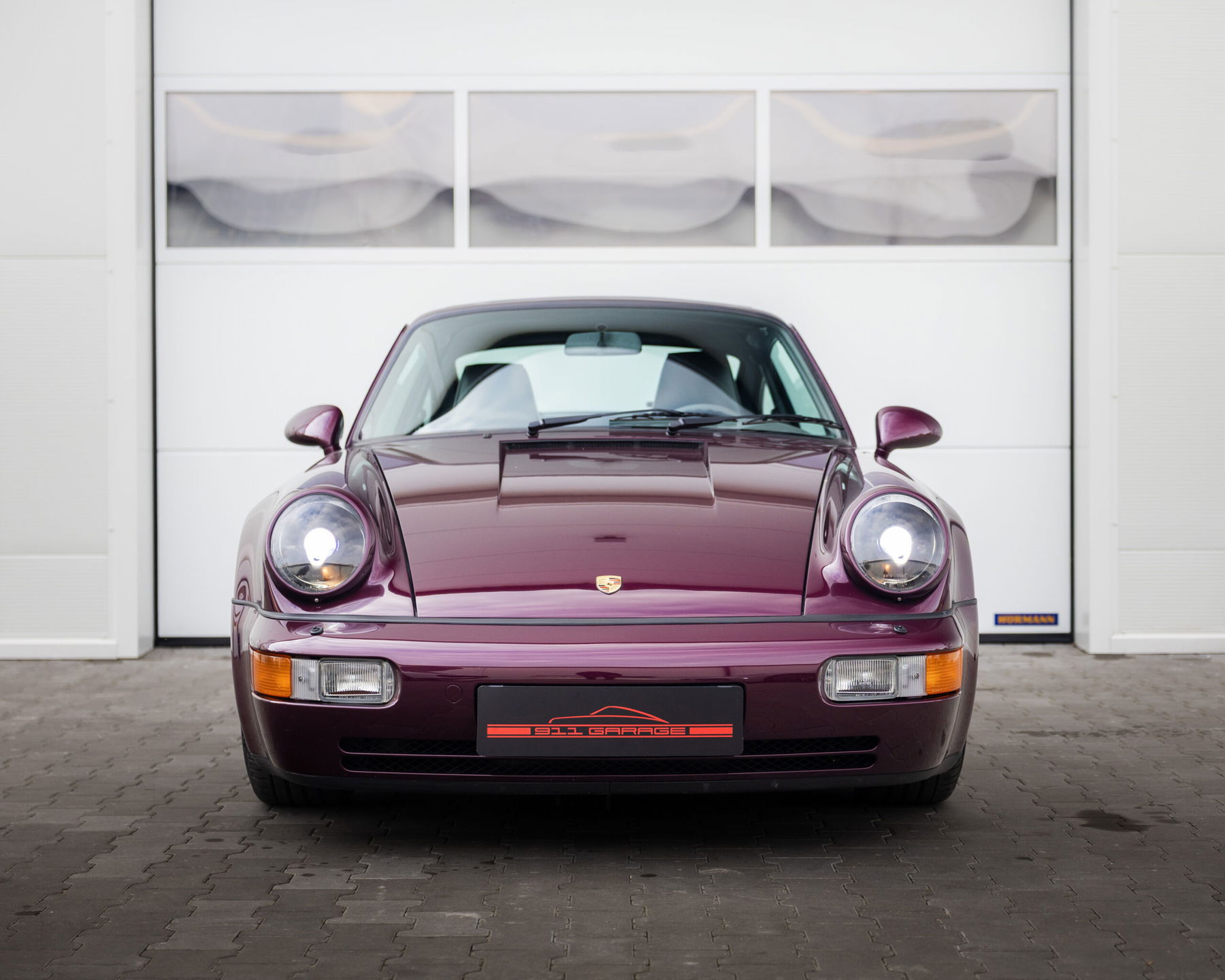 Originele fabrieksspecificaties (basisvoertuig):– 1992 Porsche 911 Carrera 2 Coupé (964)– Amethyst Metallic exterieur (F9)– Classic Grey volledig lederen interieur (LE)– Verwarmde stoelen, links en rechts (139 / 340)– Elektrische stoelhoogteverstelling (379 / 380)– Airconditioning (573) – Stuurbekrachtiging (657) – Sperdifferentieel (219) – 17″ lichtmetalen velgen (403) – Achterruitwisser (425) – Boordcomputer (659) – Geluidsinstallatie (490) – Groen getinte voorruit met zonneklep (567)