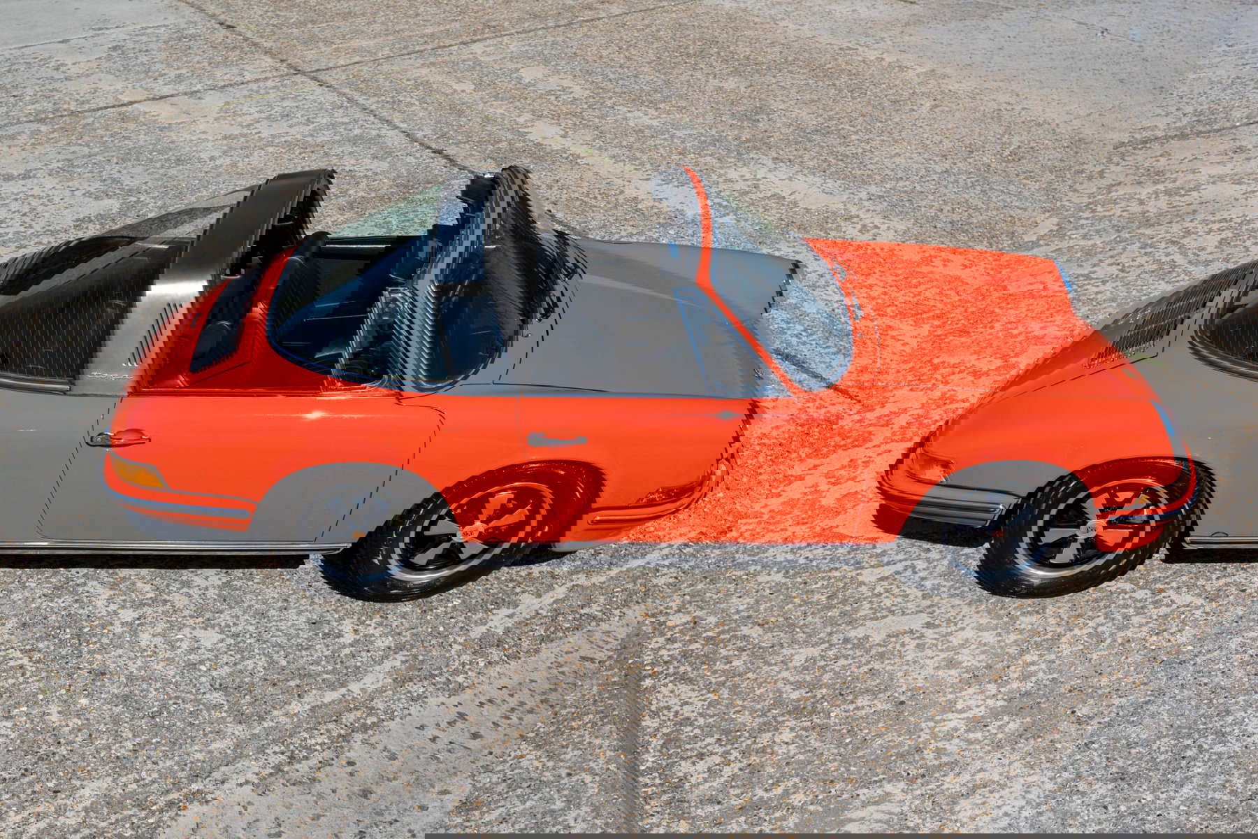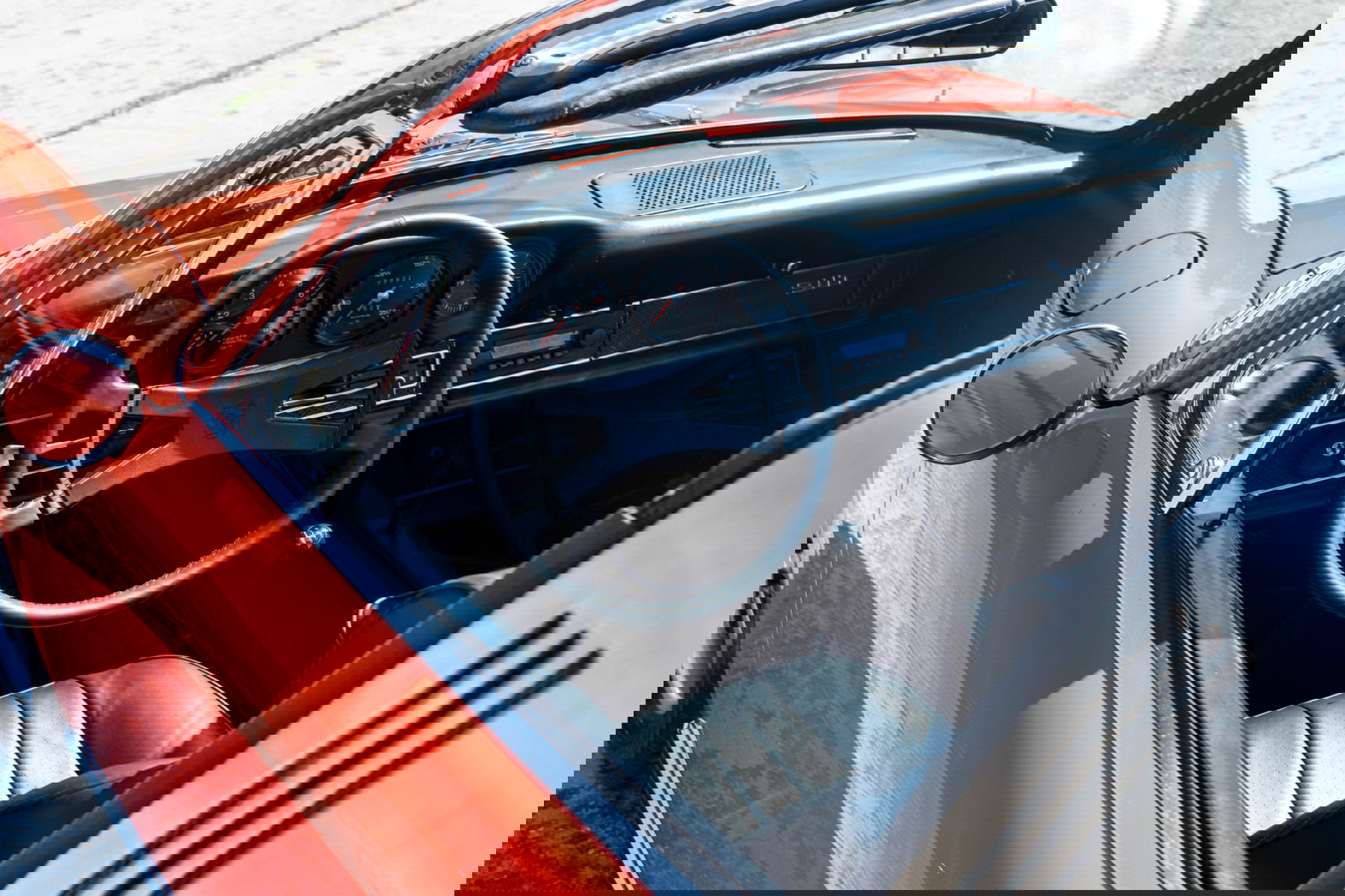 Deze Porsche 911 2.2 T Targa uit 1971 is in een periode van 6 jaar volledig gerestaureerd, en dat is direct te zien. Dit was geen snelle opknapbeurt, maar een grondige en goed uitgevoerde revisie waarbij alles is aangepakt zoals het hoort. De carrosserie is volledig vernieuwd en verkeert vandaag de dag in een uitzonderlijk solide staat. De lak, uitgevoerd in het originele Blut Orange, heeft een diepe en gelijkmatige glans die perfect bij de auto past. Mechanisch is niets aan het toeval overgelaten. De versnellingsbak is gereviseerd, de motor is gereviseerd, de koppeling is vervangen, het uitlaatsysteem is vernieuwd en het gehele remsysteem is gereviseerd. Alles werkt precies zoals het hoort en voelt overal coherent aan. Dit is een auto die vertrouwen wekt vanaf het moment dat je ermee gaat rijden. Binnen het gamma is de T-versie ongetwijfeld de leukste om mee te rijden. Minder nerveus dan een S, minder afhankelijk van hoge toerentallen, maar daardoor soepeler en toegankelijker.