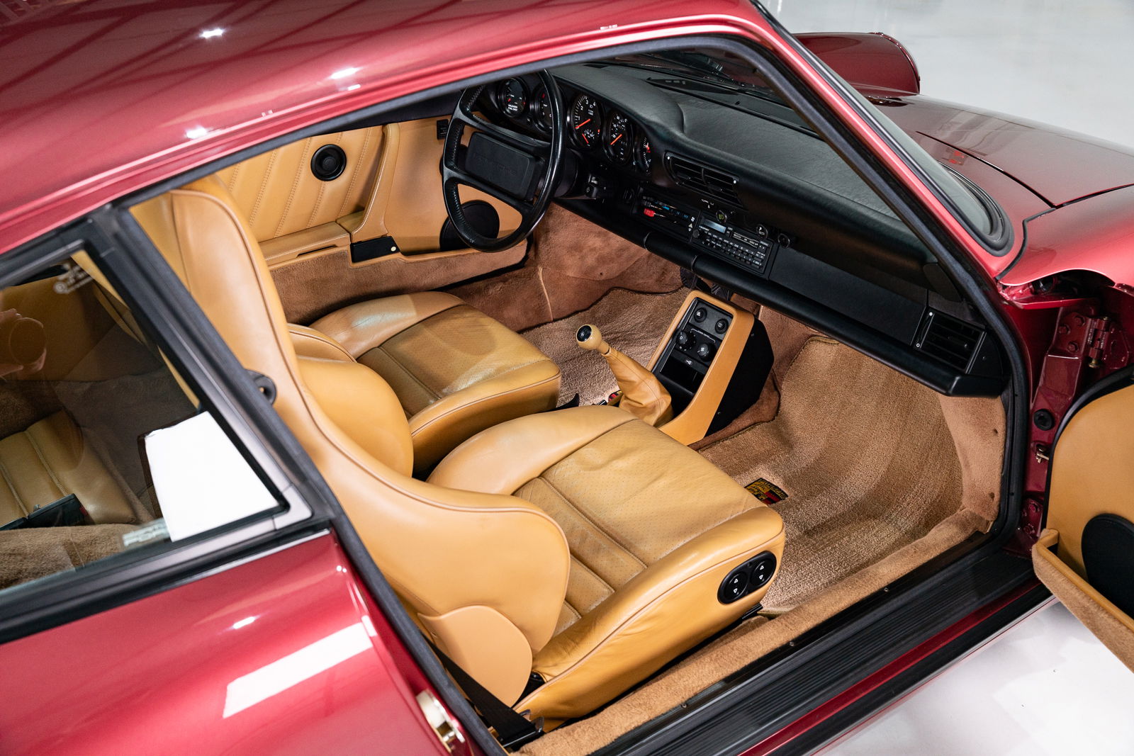 De fantastische Porsche 911 Turbo 3.3 Sunroof Coupé uit 1989 die hier wordt getoond, is uitgevoerd in het uiterst zeldzame en begeerde Velvet Red Metallic met een onberispelijk onderhouden Cashmere (beige) lederen interieur. Deze ongelooflijke auto werd nieuw geleverd in Palo Alto, Californië, aan de eerste eigenaar, die hem volgens de hoogste normen onderhield. Volgens het onberispelijke CarFAX-rapport heeft de auto de staat Californië nooit verlaten totdat wij hem hebben aangekocht. Deze Porsche 930 Turbo van investeringskwaliteit voldoet aan alle eisen met betrekking tot investeringen, waaronder een laag aantal kilometers, een onberispelijke staat, een zeldzame kleurencombinatie en een bekende geschiedenis vanaf nieuw. Bij deze prachtige 911 Turbo hoort de volledige onderhoudshistorie vanaf nieuw, evenals de gebruikershandleiding, het onderhoudsboekje en het onberispelijke CarFAX-rapport. We zijn er trots op deze uiterst zeldzame en gewilde Porsche aan te bieden aan de meest veeleisende verzamelaar, investeerder of liefhebber die een van de allerbeste exemplaren wil bezitten tegen een investeringsprijs!