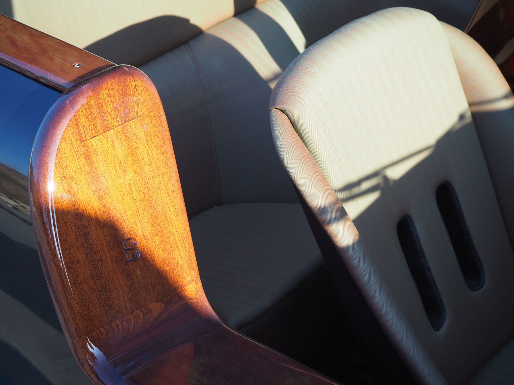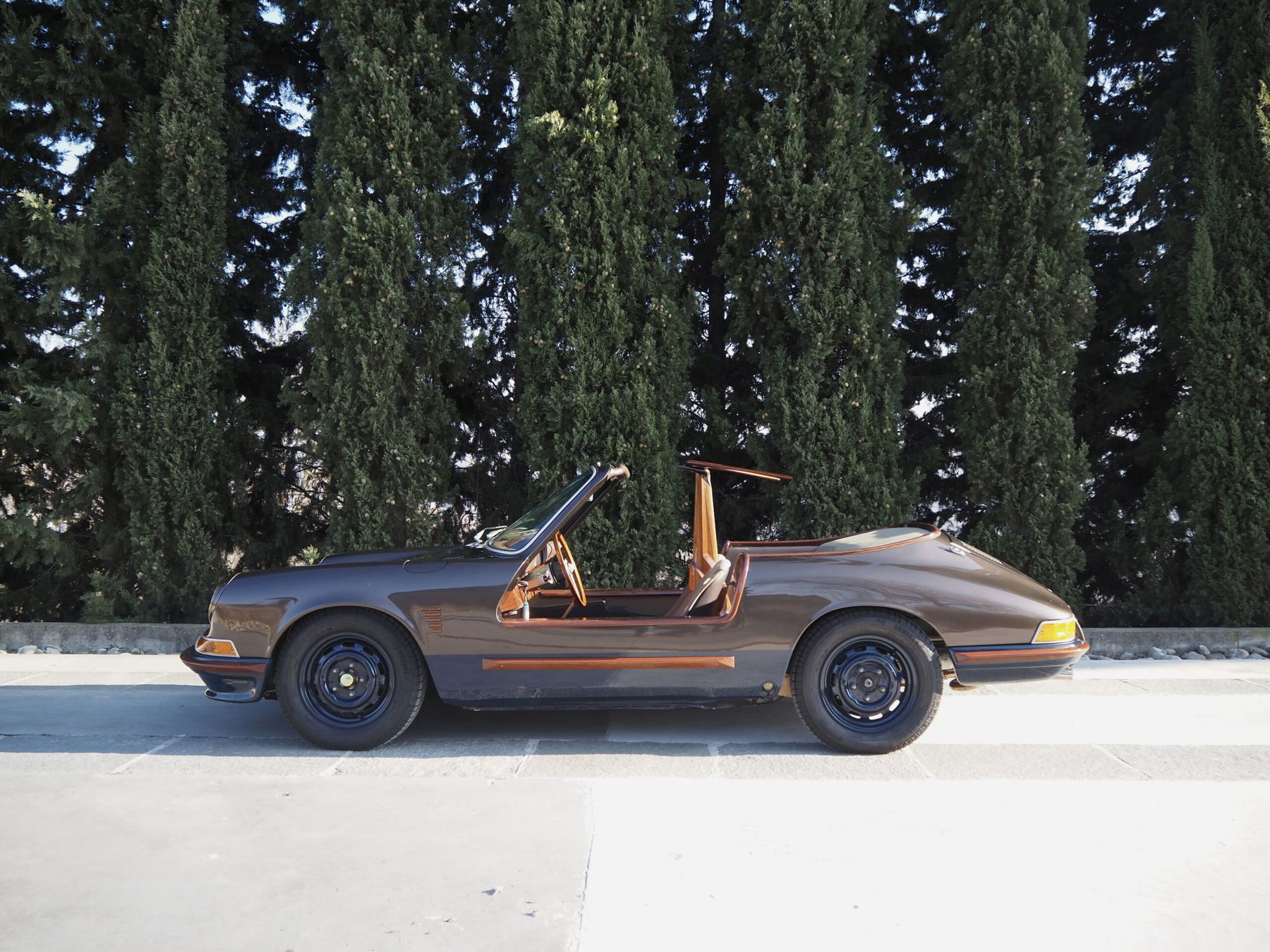 Deze Porsche 912 Barca uit 1966 begon zijn leven als een standaard 912 met korte wielbasis, voordat hij volledig werd herontworpen door Borromeo de Silva. De transformatie is totaal. Het dak en de deuren zijn volledig verwijderd en vervangen door een vloeiende carrosserie die openheid en lichtheid benadrukt. Bijna elk detail is beïnvloed door de zeevaart. Mahoniehouten sierlijsten omhullen de bumpers en volgen de carrosserielijnen waar ooit deuren zaten, afgewerkt met hoogglansvernis die doet denken aan klassieke houten runabouts.