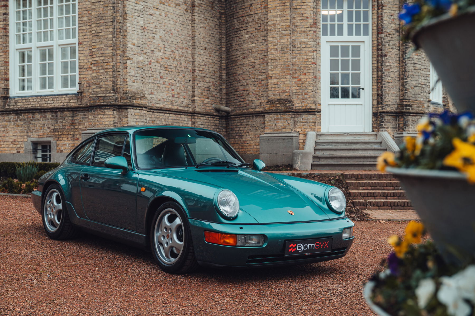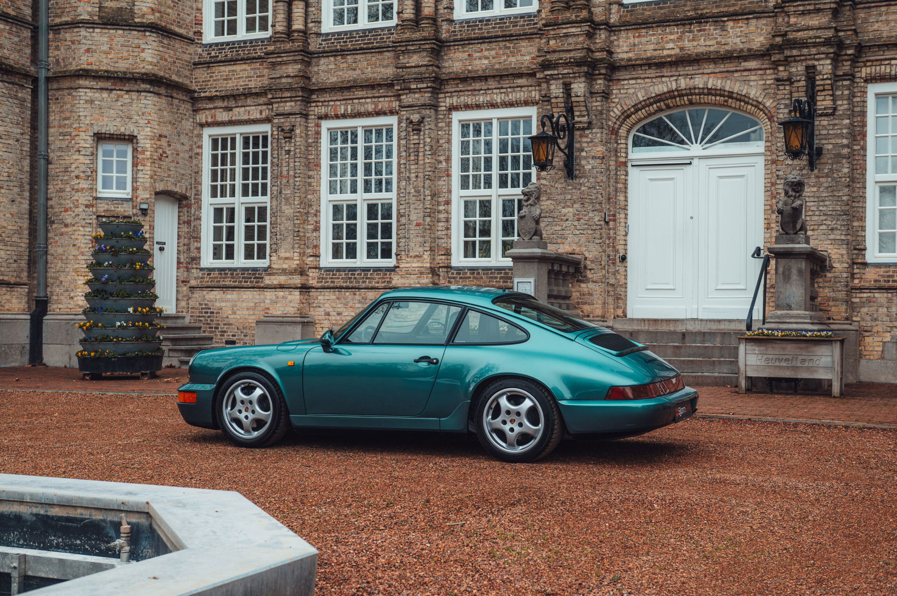 De Porsche 964 Carrera 2 uit 1990 vertegenwoordigt het eerste jaar van de 964-generatie. Dit is de luchtgekoelde 911 met schroefveren, ABS, stuurbekrachtiging en de verfijnde 3,6-liter twin-plug flat-six die 250 pk produceert. De vijfversnellingsbak is direct en mechanisch, en de achterwielaandrijving zorgt voor een pure en boeiende rijervaring.