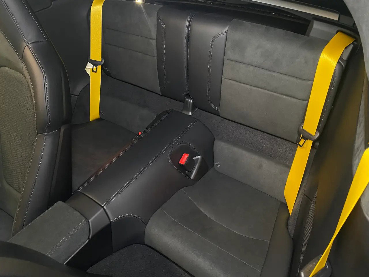 Interieur: veiligheidsgordels in racegroen, wijzerplaat Sport Chrono-stopwatch en digitale toerenteller in racegroen, bekleding stuurkolom in leer, opbergnet in voetruimte bijrijder
