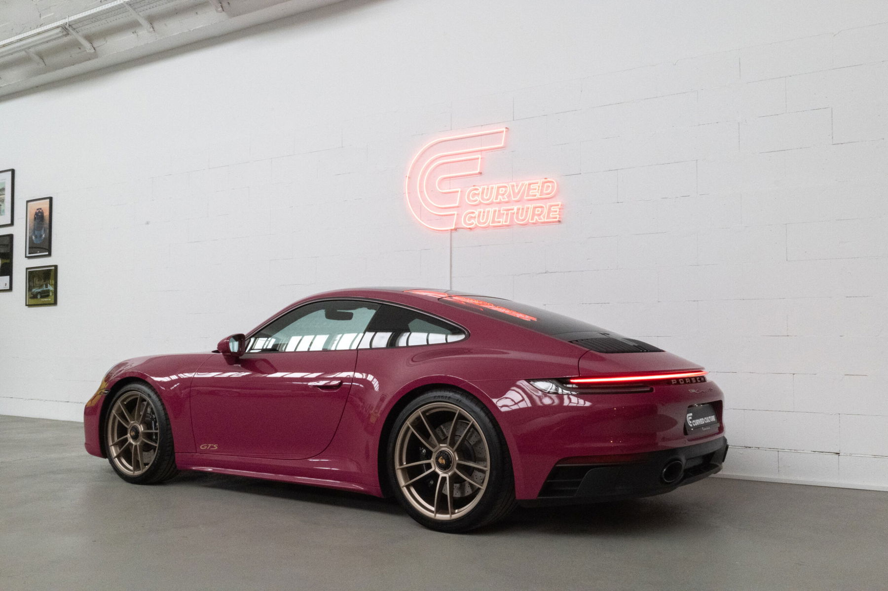 Sternrubin heeft geschiedenis geschreven in het Porsche-universum – ten minste sinds de 964 Carrera RS, die met deze kleur een iconische buitenbeentje werd. Deze 992 GTS sluit daar precies op aan: Sternrubin neo geeft een moderne, krachtigere en technisch zuiverdere interpretatie van de klassieker. De witgoud metallic accenten brengen de look naar het jaar 2025 en geven de auto een bijna op maat gemaakte designesthetiek. Strakke staat, zonder ongelukken en overspuiten, en Porsche Approved garantie tot 11/2026. Alles zoals het hoort!