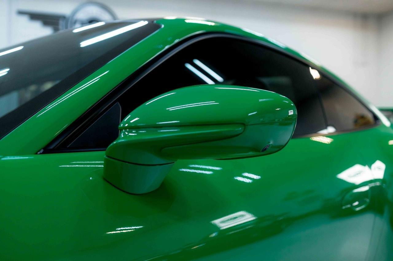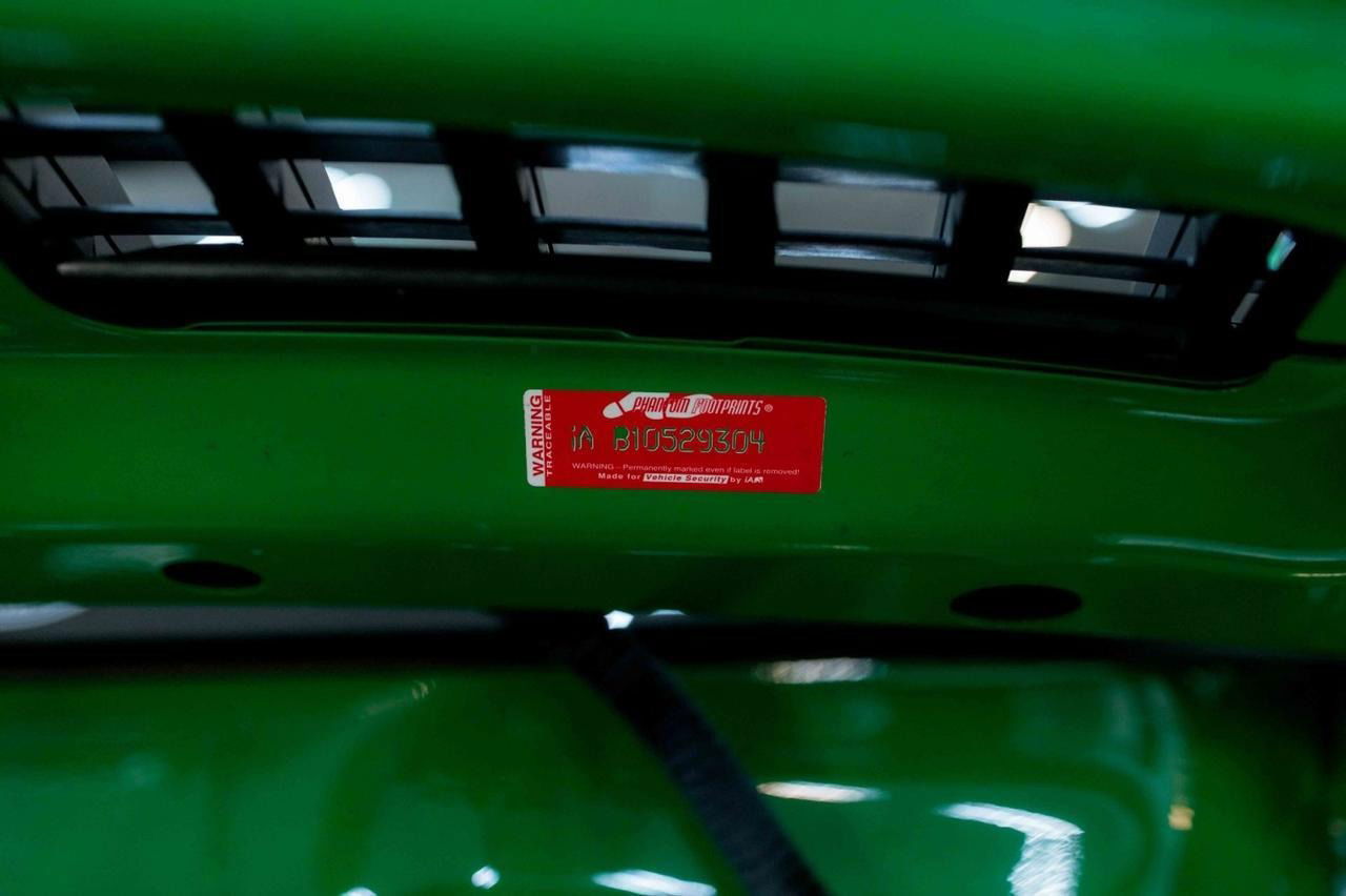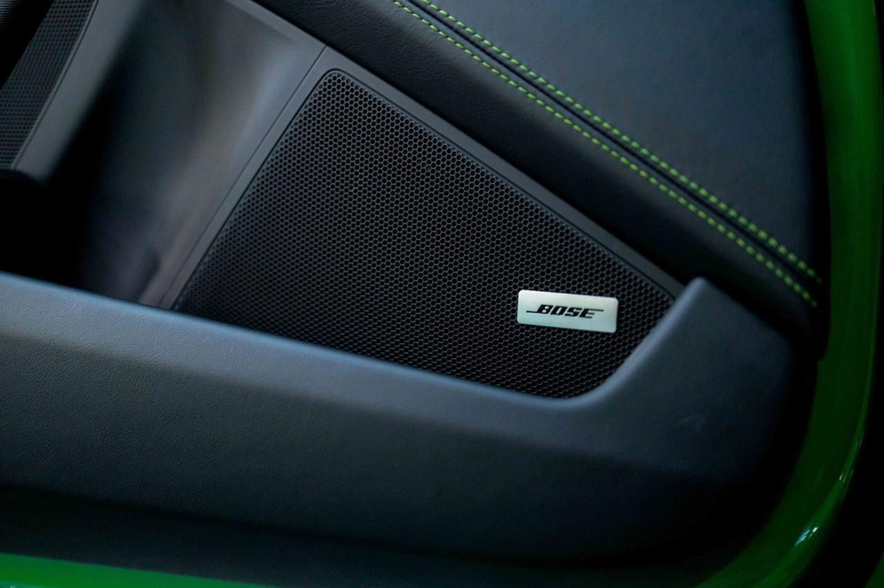 De buitenkant is afgewerkt in python groen over zwart leer/race-tex interieur met afwijkende stiksels in groen.