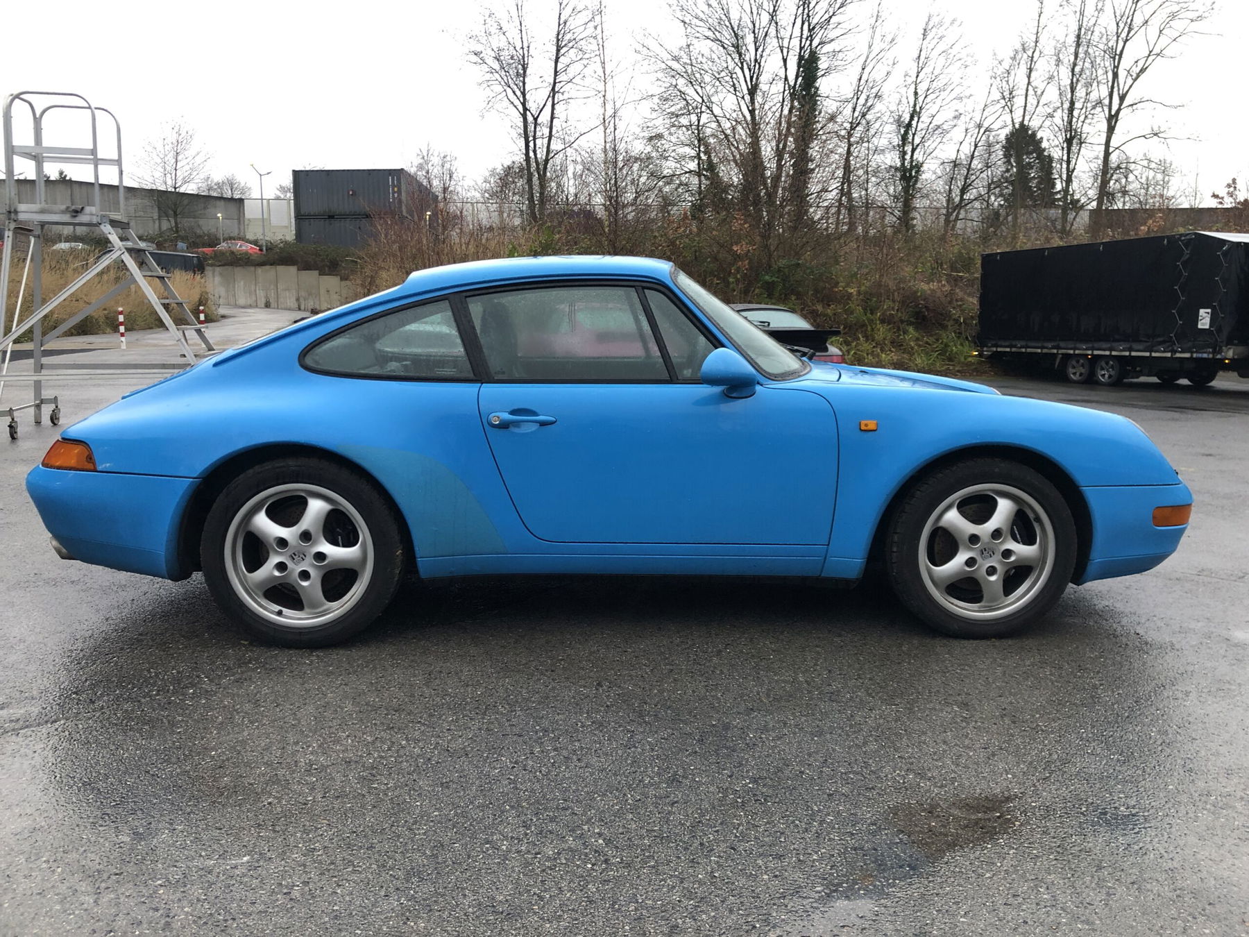 Deze Porsche 993 Carrera 2 Coupé werd in november 1993 geleverd bij het Porsche Centrum Stuttgart Hahn. De geschiedenis is volledig traceerbaar, inclusief het aantal kilometers, en is afkomstig uit derde hand. De auto heeft een bijzondere kleurencombinatie: Rivierblauw S8 en Nachtblauw leer. De 993 stond sinds eind 2011 droog gestald in een schuur.
