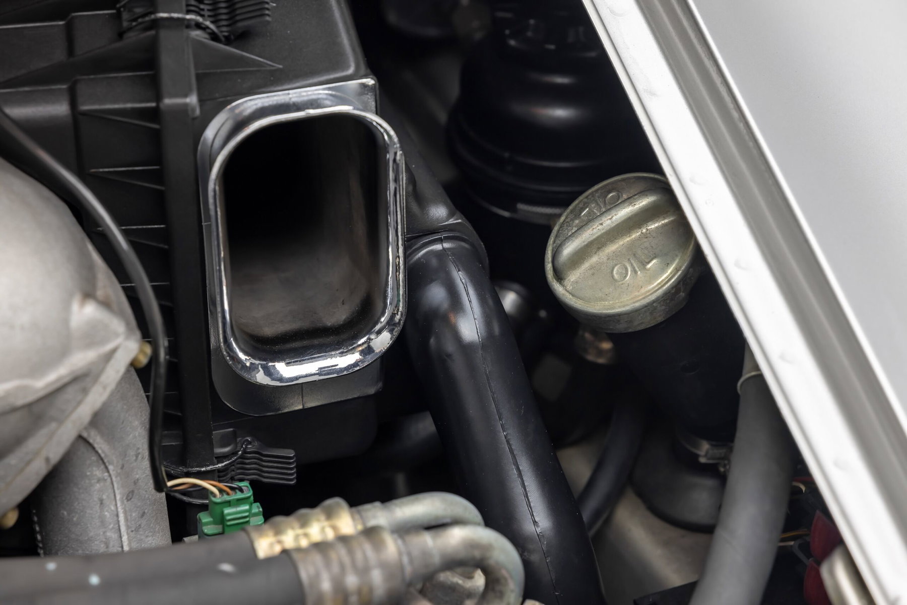 De buitenkant is in zeer goede staat; de auto heeft in de loop van zijn leven enkele panelen opnieuw gespoten gekregen vanwege krassen en slijtage. Kleine steenslag op de voorbumper en binnenspatborden, niets opvallends; de lak ziet er op het oog geweldig uit, zeer representatief.