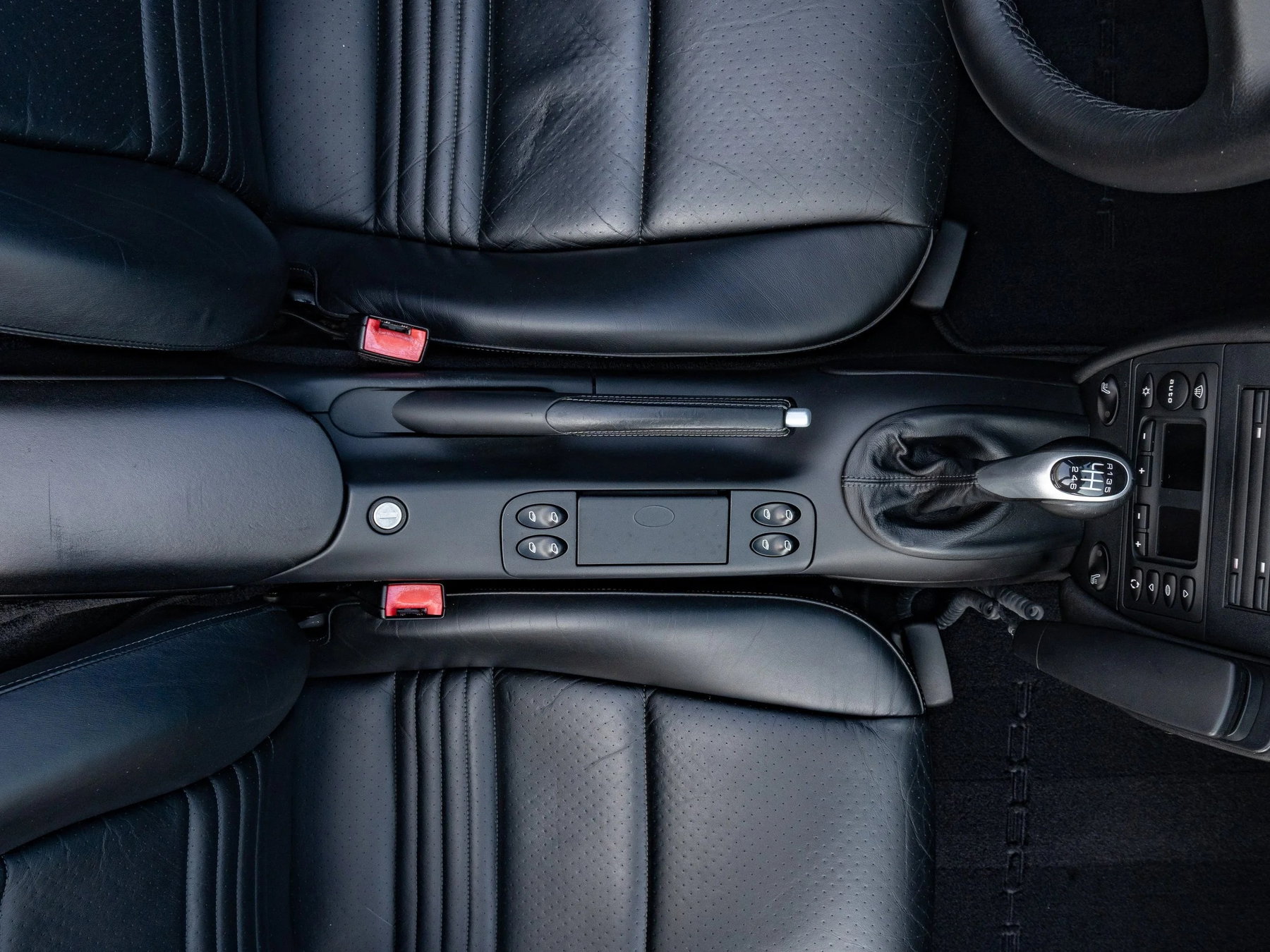 Dit specifieke model is een Carrera 2, wat betekent dat hij achterwielaandrijving heeft, uitgevoerd is in Seal Grey met een zwart interieur, en uiteraard is uitgerust met een handgeschakelde versnellingsbak. Deze 996 is zorgvuldig onderhouden; de motor is al vervangen en de facturen voor de uitgevoerde werkzaamheden zijn beschikbaar.