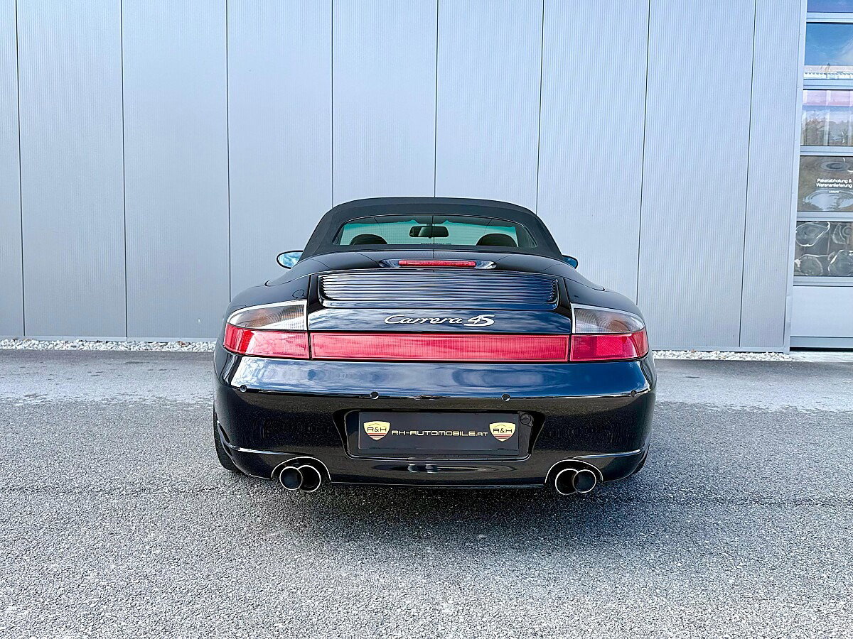 Te koop: een Porsche 996 4S Cabrio met handgeschakelde versnellingsbak. De auto is, met uitzondering van de kofferklep, ongeschaafd. Topuitrusting zoals Turbo-stoelen, Bose, volledig leder…