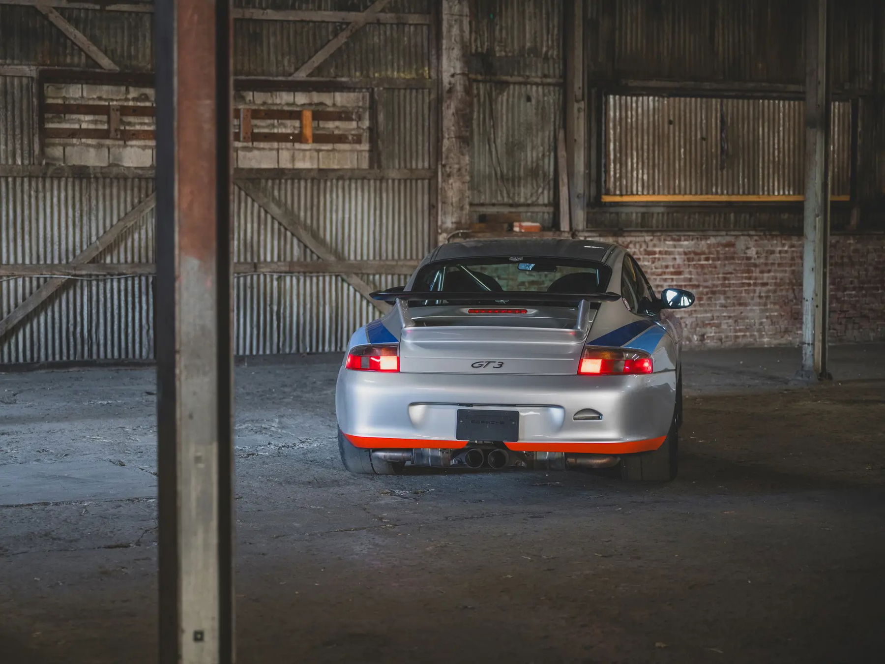 Deze 911 GT3 is zijn hele leven een Californische auto geweest en is naar verluidt nieuw geleverd in San Jose. Hij werd op 11 juni 2003 geproduceerd, afgewerkt in Arctic Silver Metallic met grijs natuurlijk leer. Fabrieksopties waren onder meer wieldoppen met gekleurde emblemen, airconditioning met volledige klimaatregeling, interieurafwerking in koolstofvezel, het xenonkoplampenpakket, koolstofvezel dorpellijsten met modelembleem, natuurlijk leer, middenconsole achter in alu-look, lederen zonnekleppen met verlichte spiegel, driespaaks stuurwiel in koolstofvezel en leer, en versnellingspook en handremhendel in koolstofvezel en aluminium.
