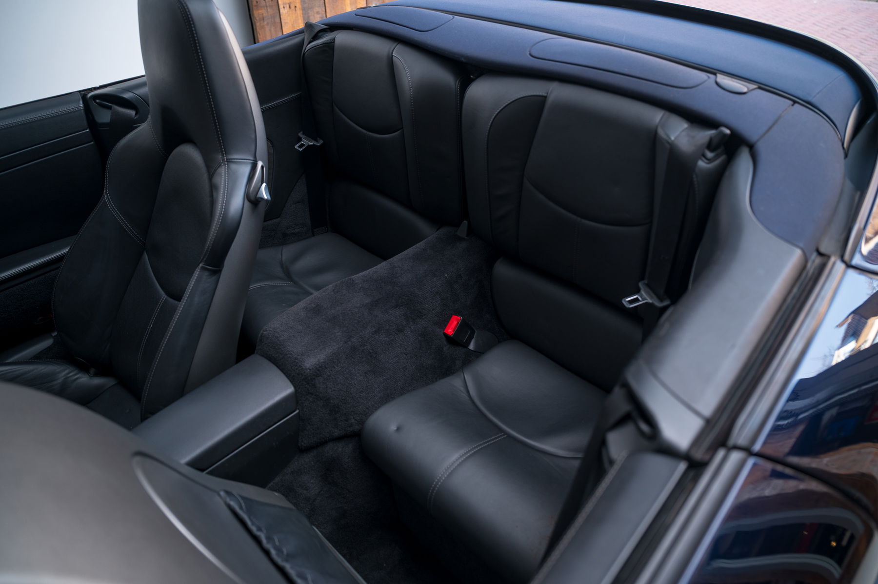 De Nachtblau-metallic lak geeft de auto een diepe, luxe uitstraling die perfect past bij het karakter van deze 911. Met het cabriodak geopend komt de beleving pas echt tot leven: het rauwe boxer-geluid, directe stuurgevoel en het onmiskenbare Porsche-DNA.