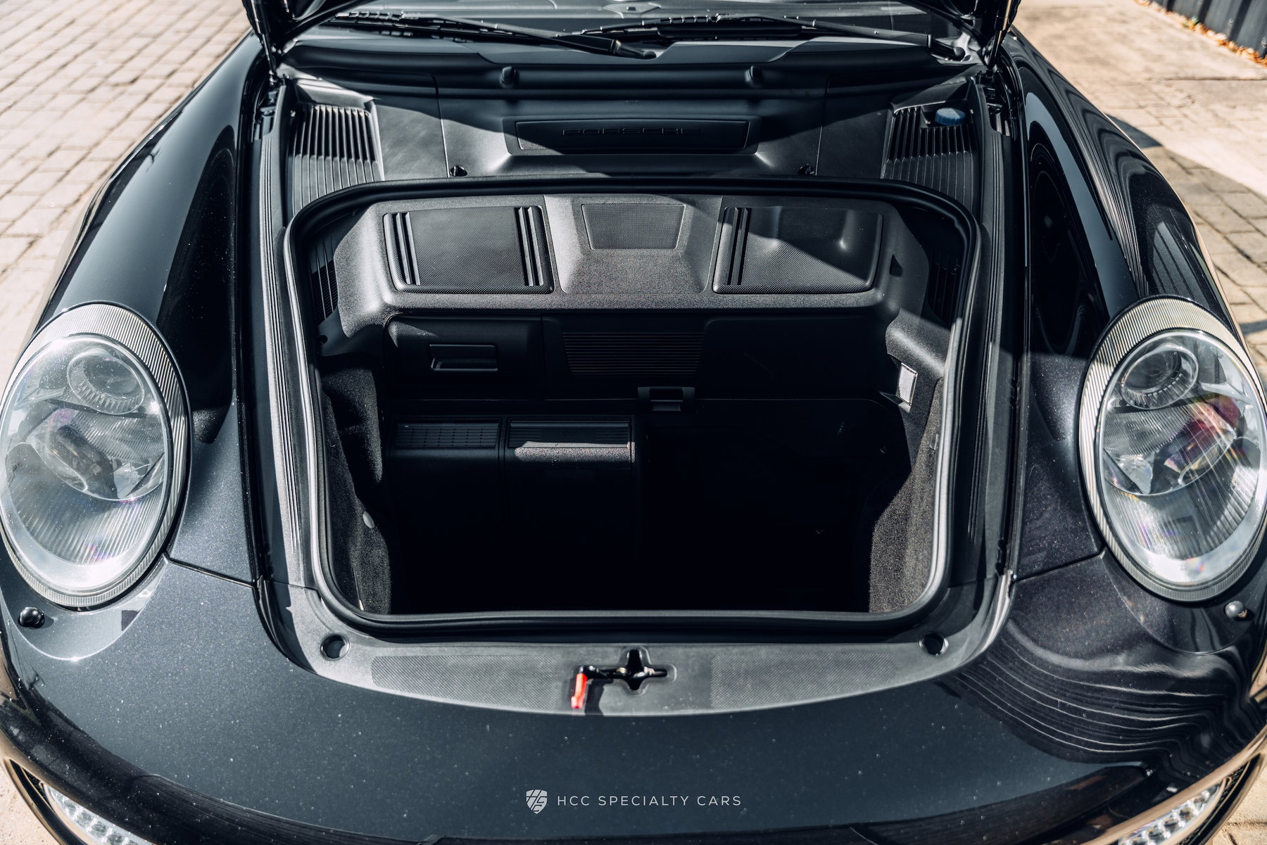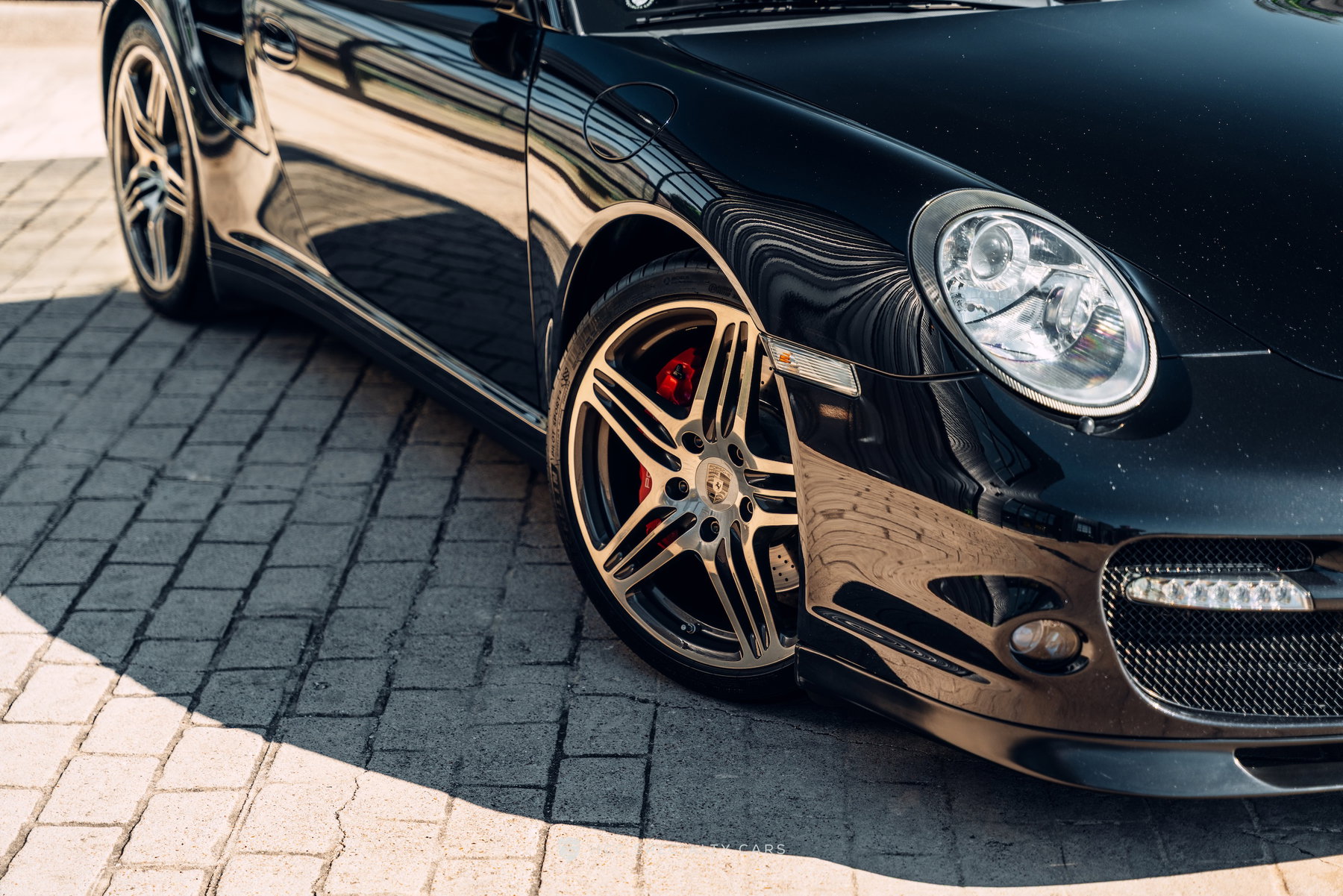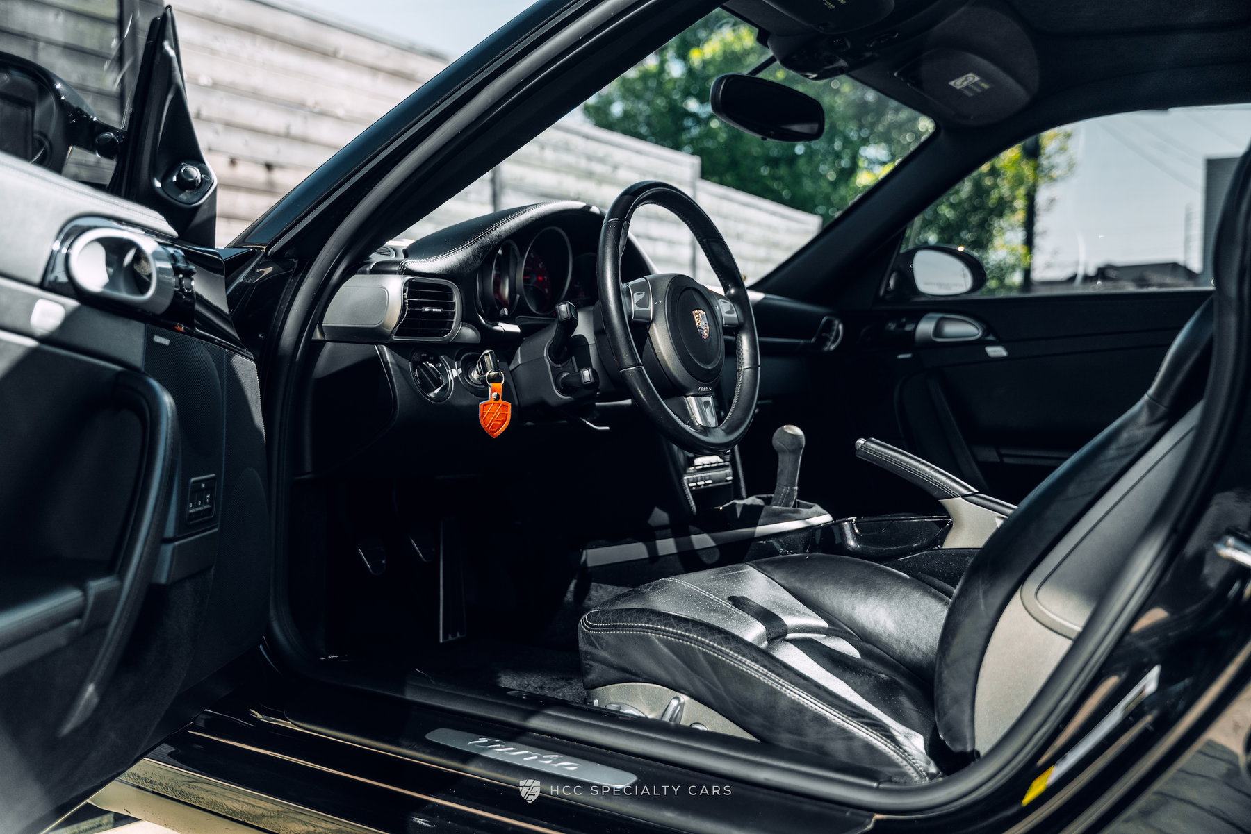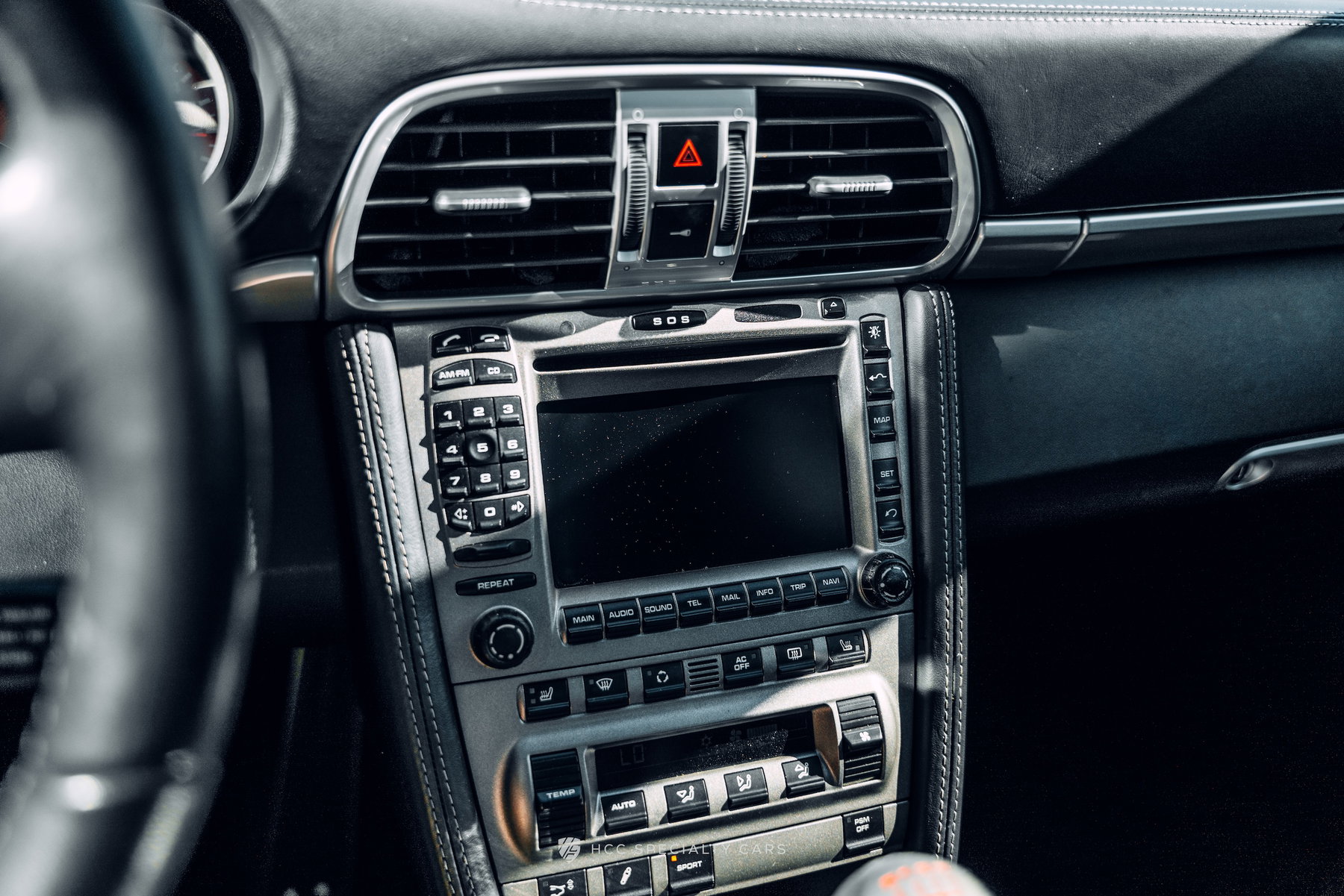 Een Porsche 911 Turbo Coupé uit 2007 in Basalt Black Metallic met zwart volleder, met 64.000 mijl op de teller en aangedreven door de 3,6-liter twin-turbo Mezger-boxermotor, gekoppeld aan een handgeschakelde zesversnellingsbak en vierwielaandrijving. Fabrieksopties zijn onder meer het Sport Chrono-pakket Plus, adaptieve sportstoelen, verwarmde stoelen en 19-inch Turbo-velgen. Upgrades zijn onder meer GT2RS-intercoolers, een Speedtech 3-inch X-pipe-uitlaat, UMW-tuning, een TPC DSC-controller en een Sachs-prestatiekoppeling, waarbij de koelvloeistofleidingen zijn aangepakt en vastgezet. Een exemplaar dat lang in bezit is geweest met een gedocumenteerde onderhoudshistorie, aangeboden met een schoon CARFAX-rapport en een schone Texas-eigendomsakte.